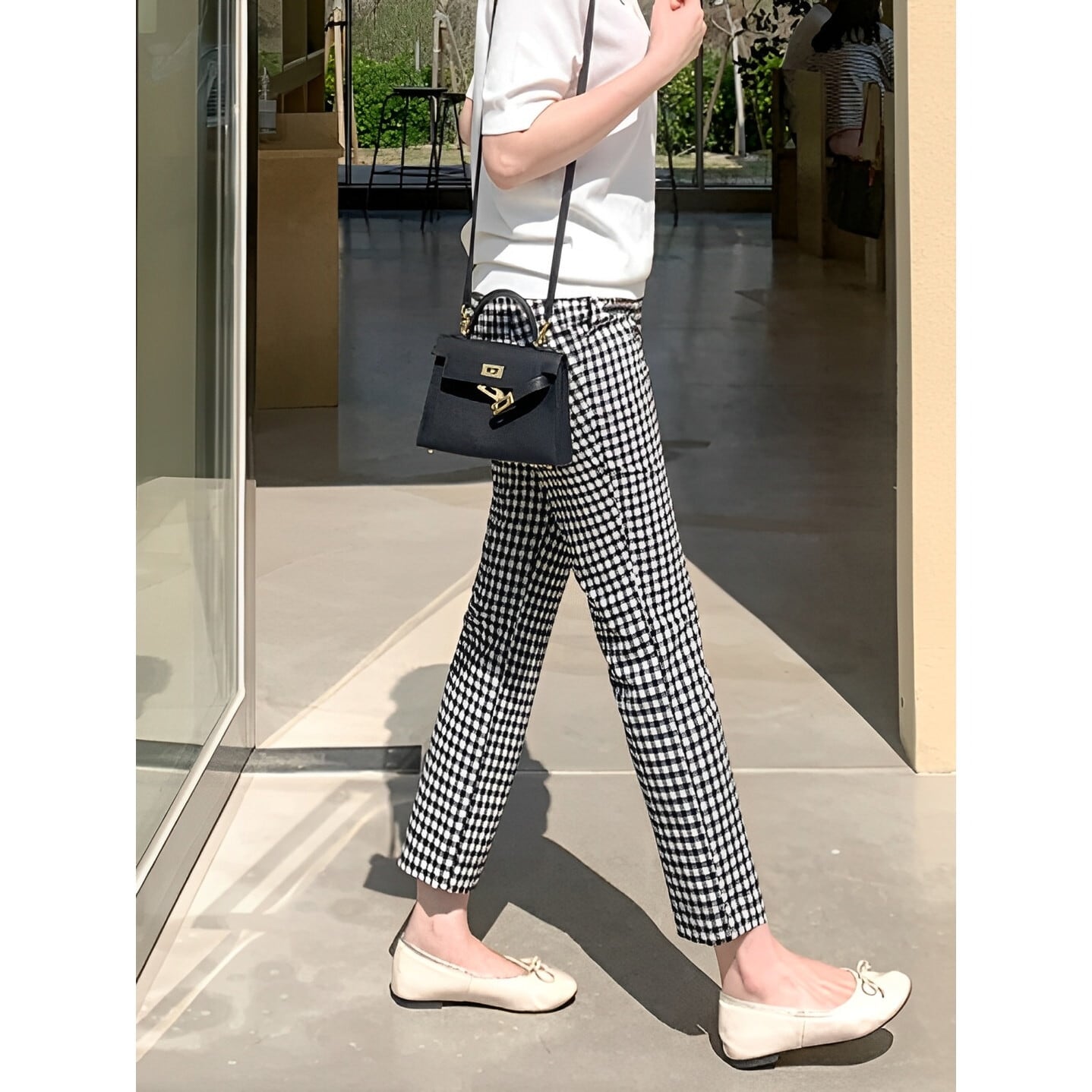 【S-2XL】ギンガムチェック テーパードパンツ RA2612