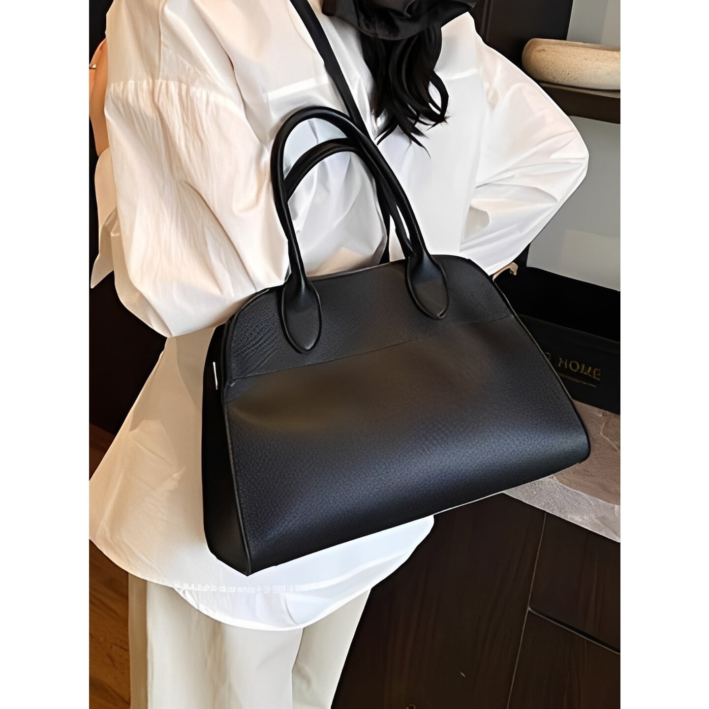 やわらかな質感と程よいツヤ感のPUレザーが上品な印象を与える、シンプルで使いやすいボストンバッグ。