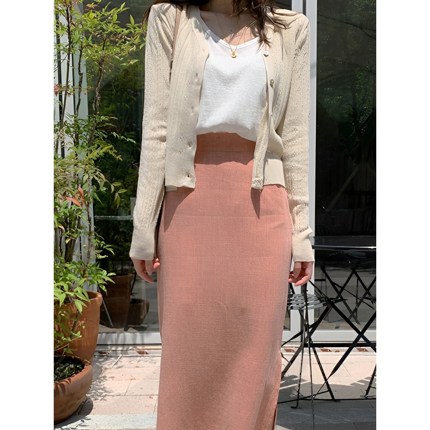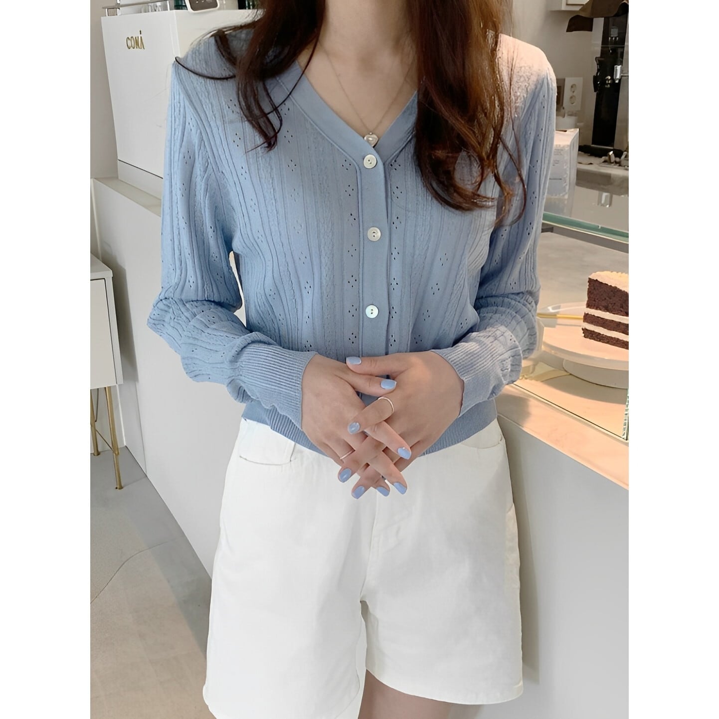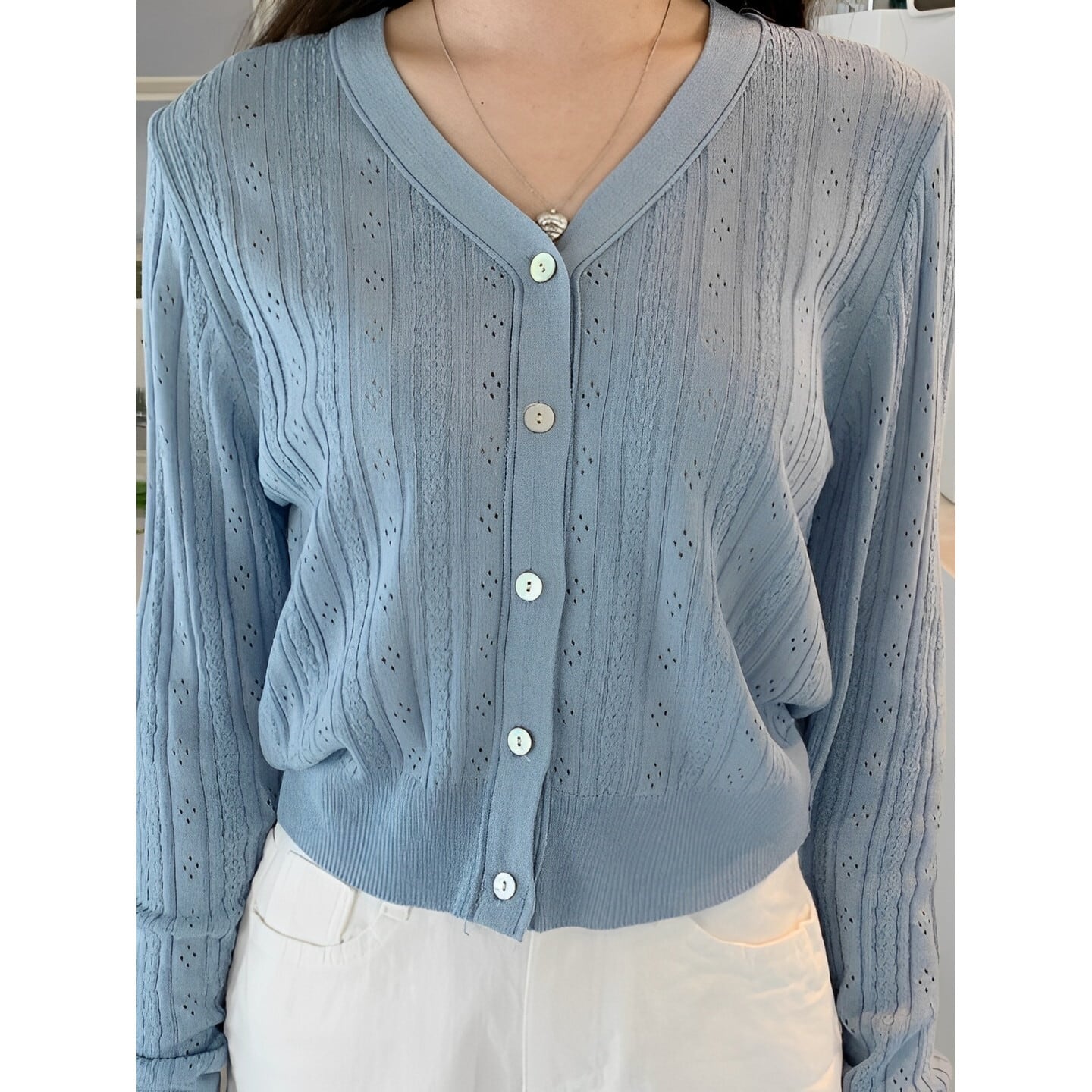繊細な透かし編みが涼しげで、夏の装いにぴったりなカーディガン◎
