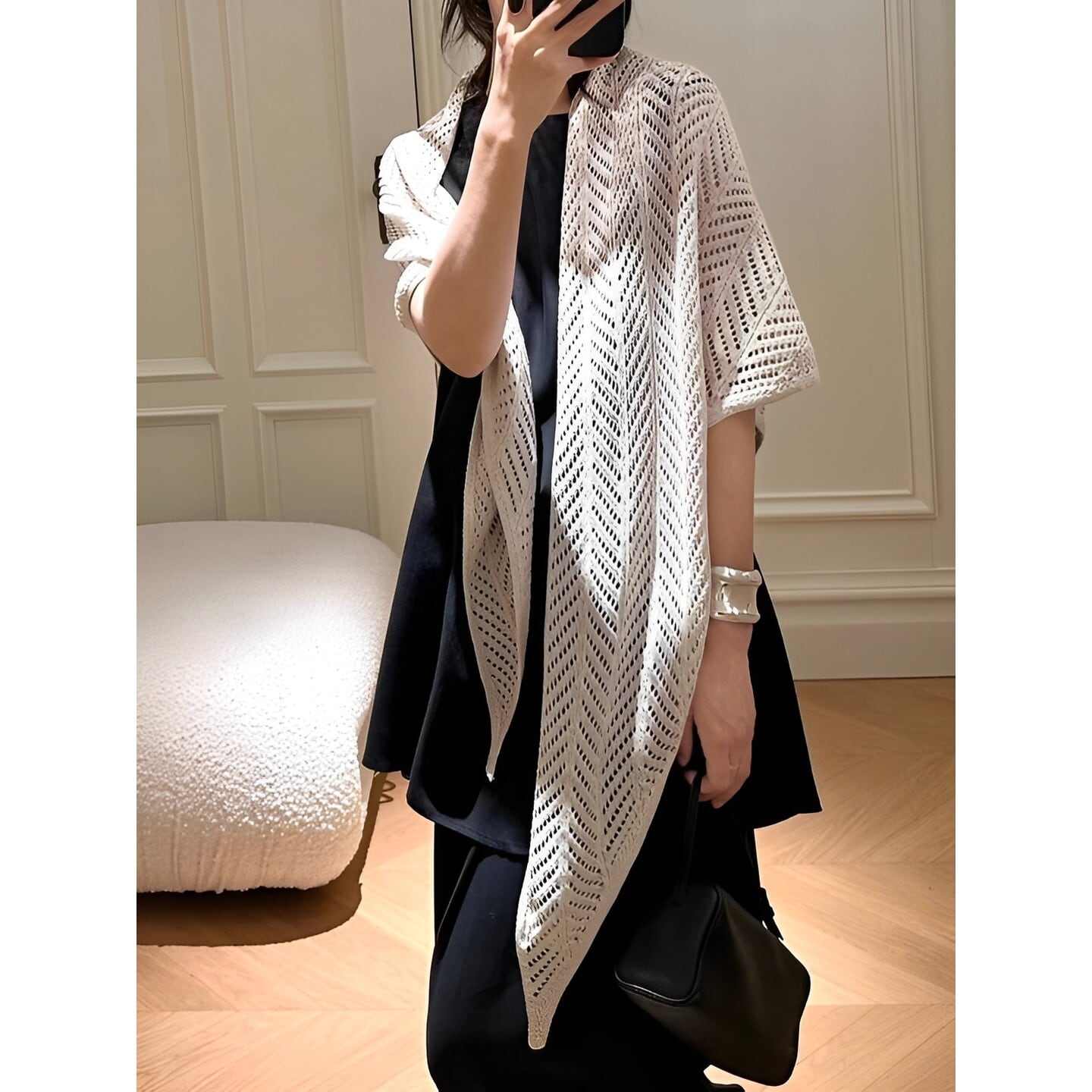 肩にふんわりかけるだけでやさしい印象に仕上がり、抜け感も演出。