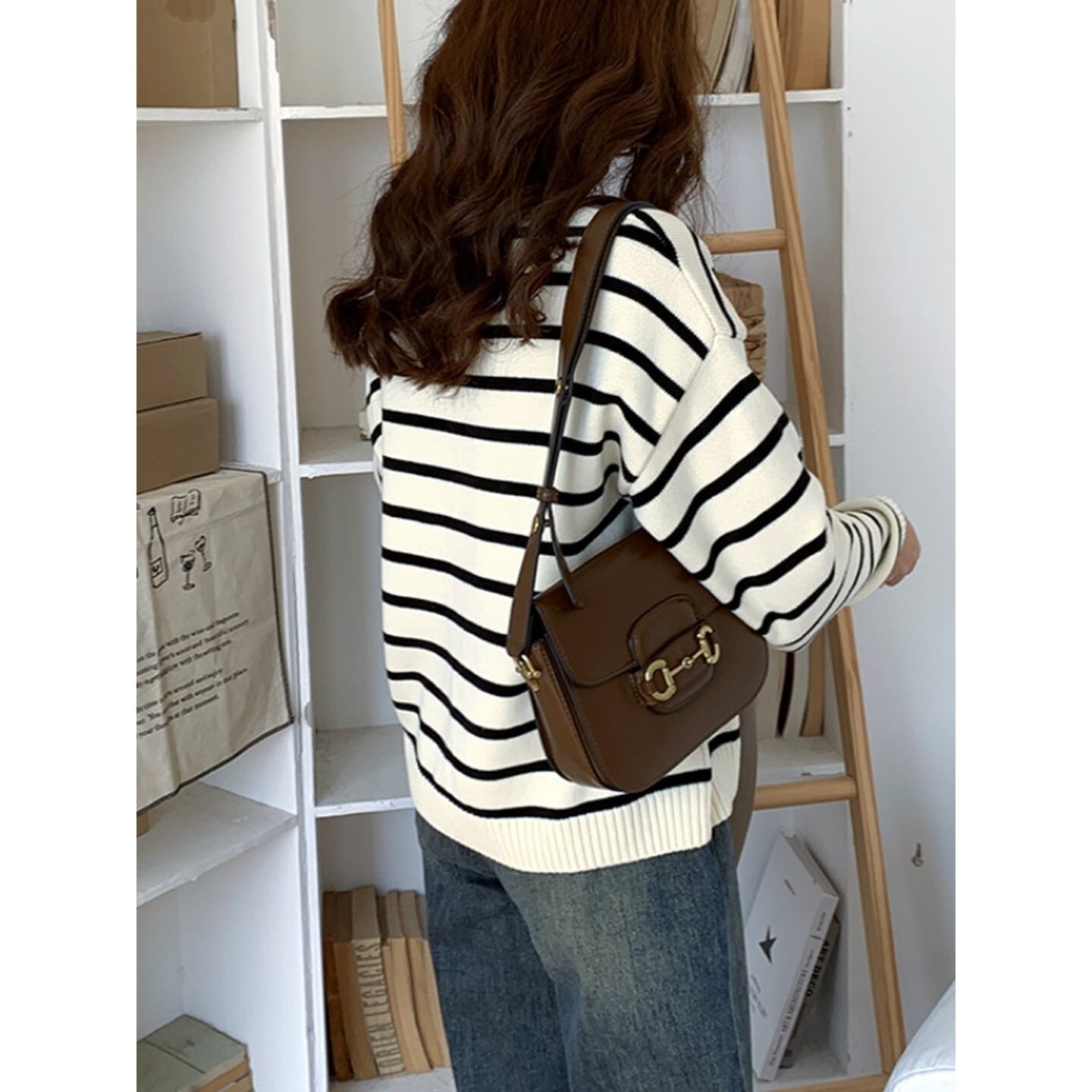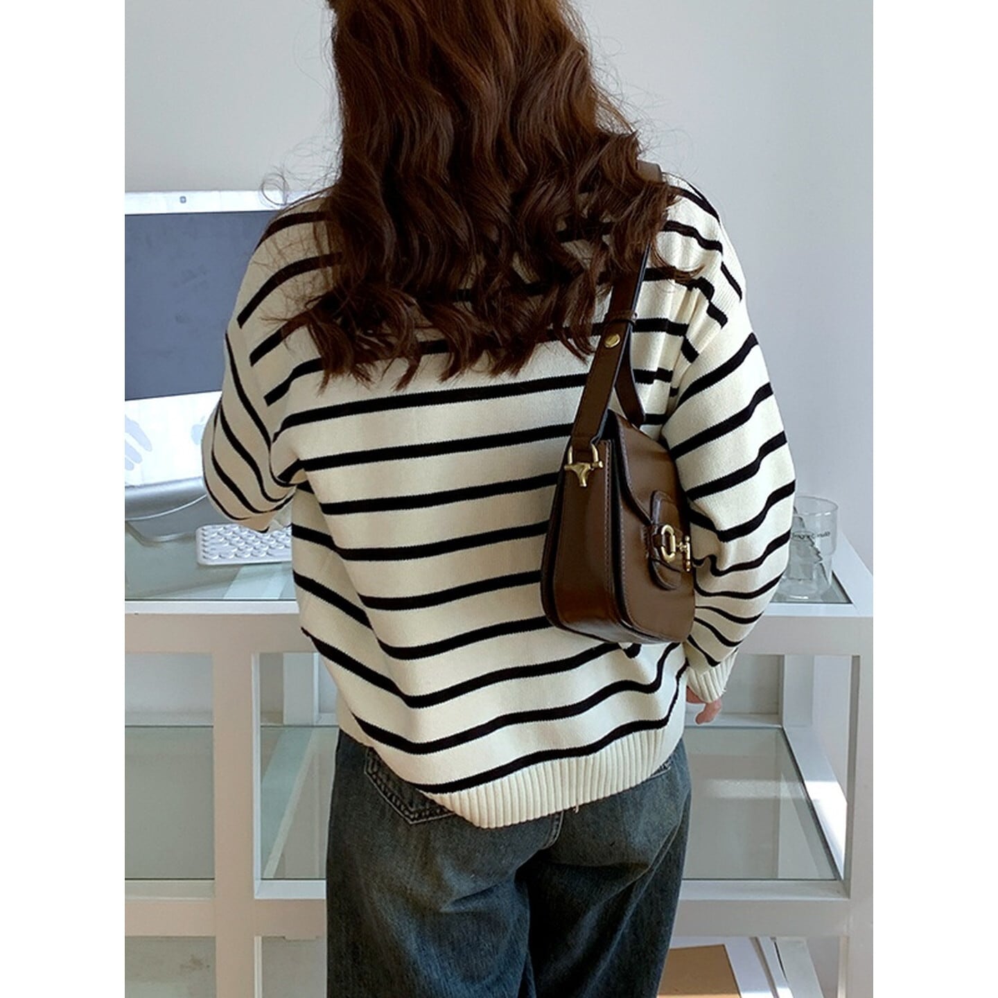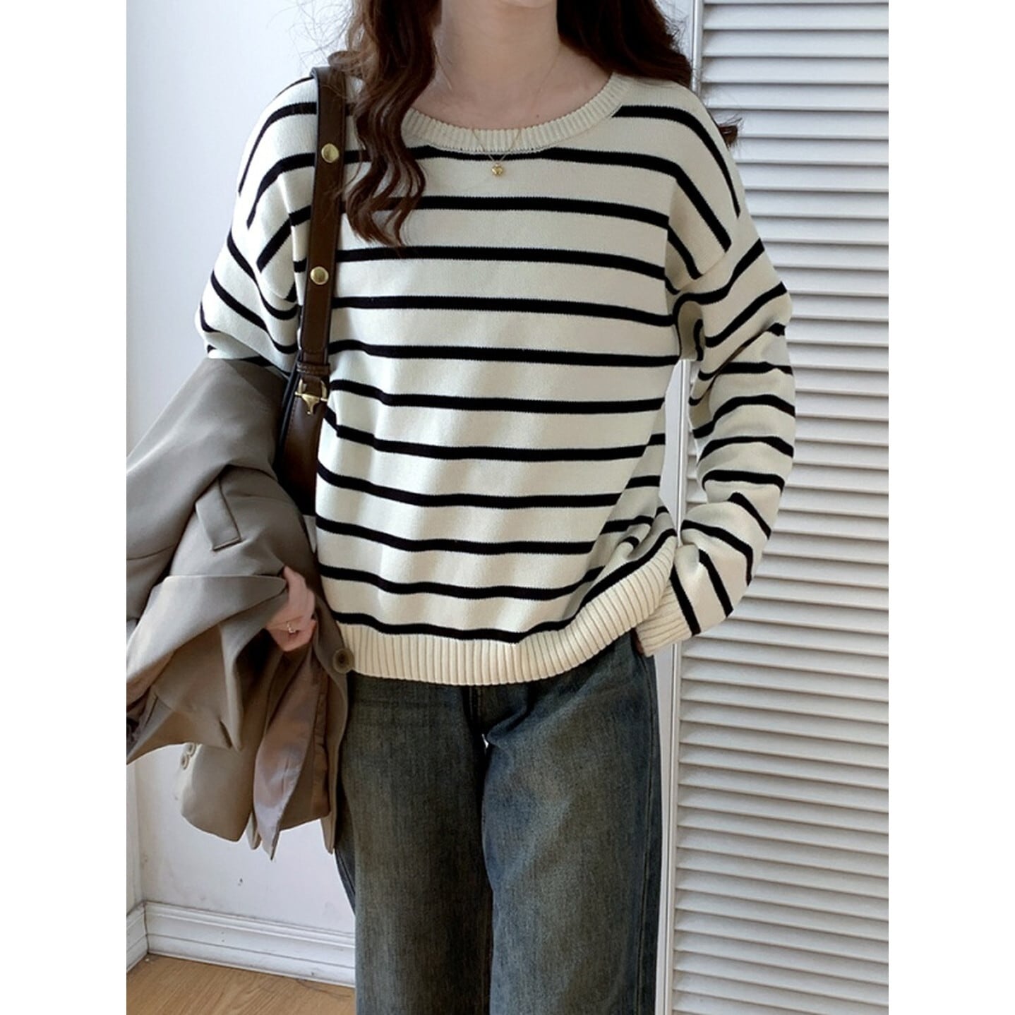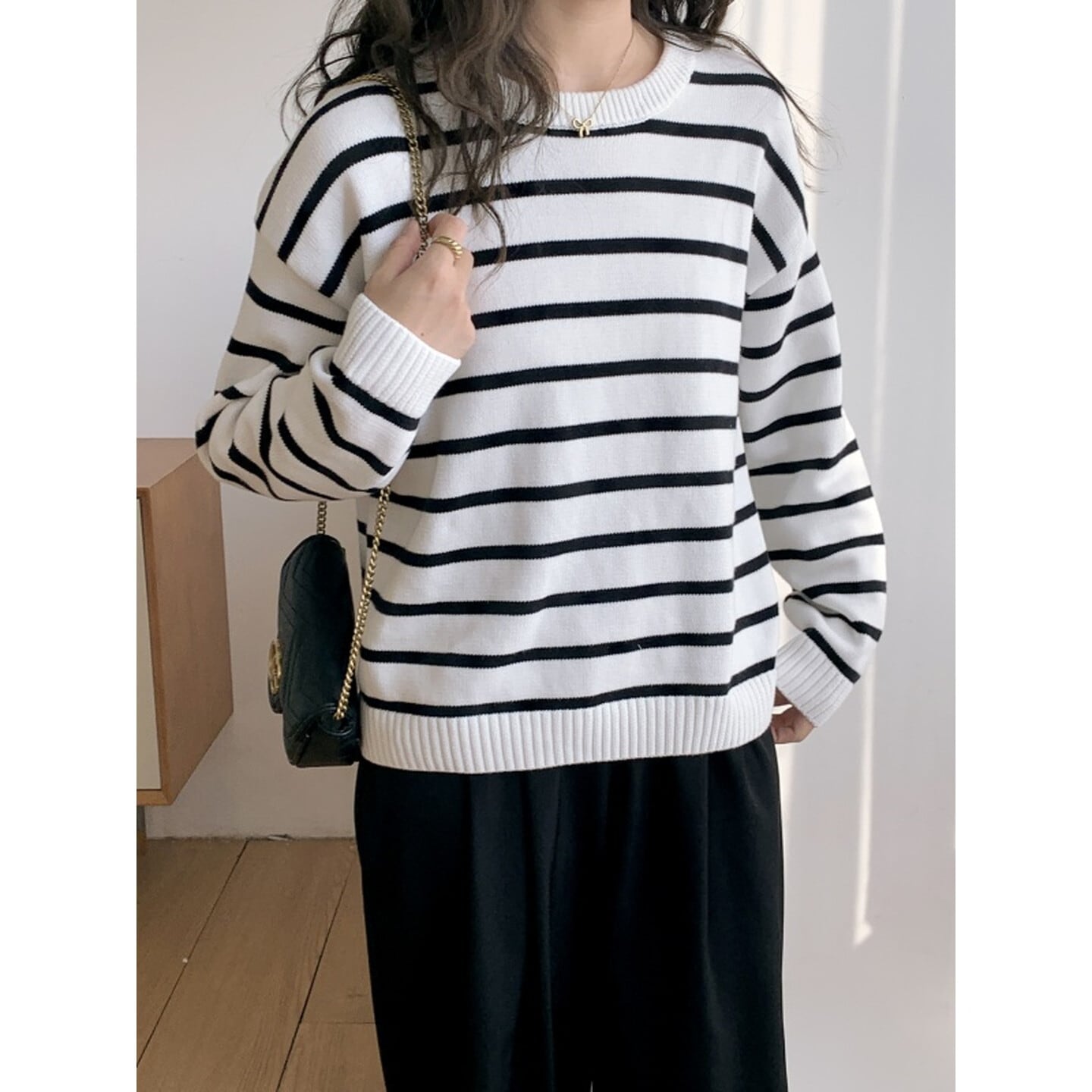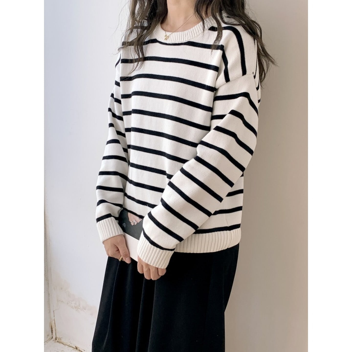 やわらかな風合いと上品な配色が魅力のボーダーラウンドニット◎