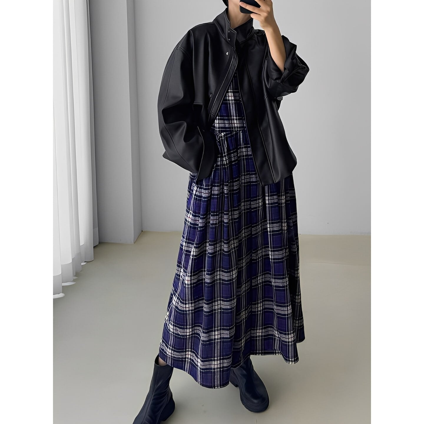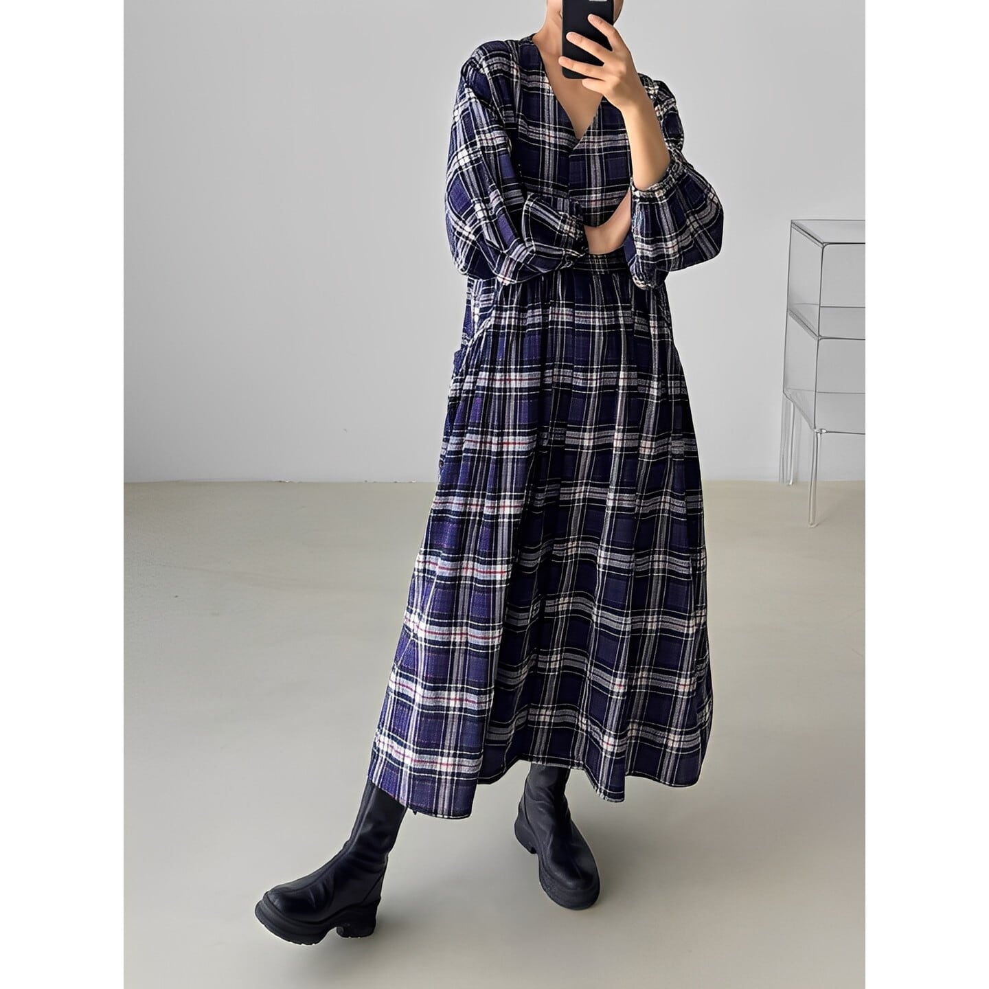 やわらかな色合いのチェック柄が上品な印象の2WAYワンピース◎