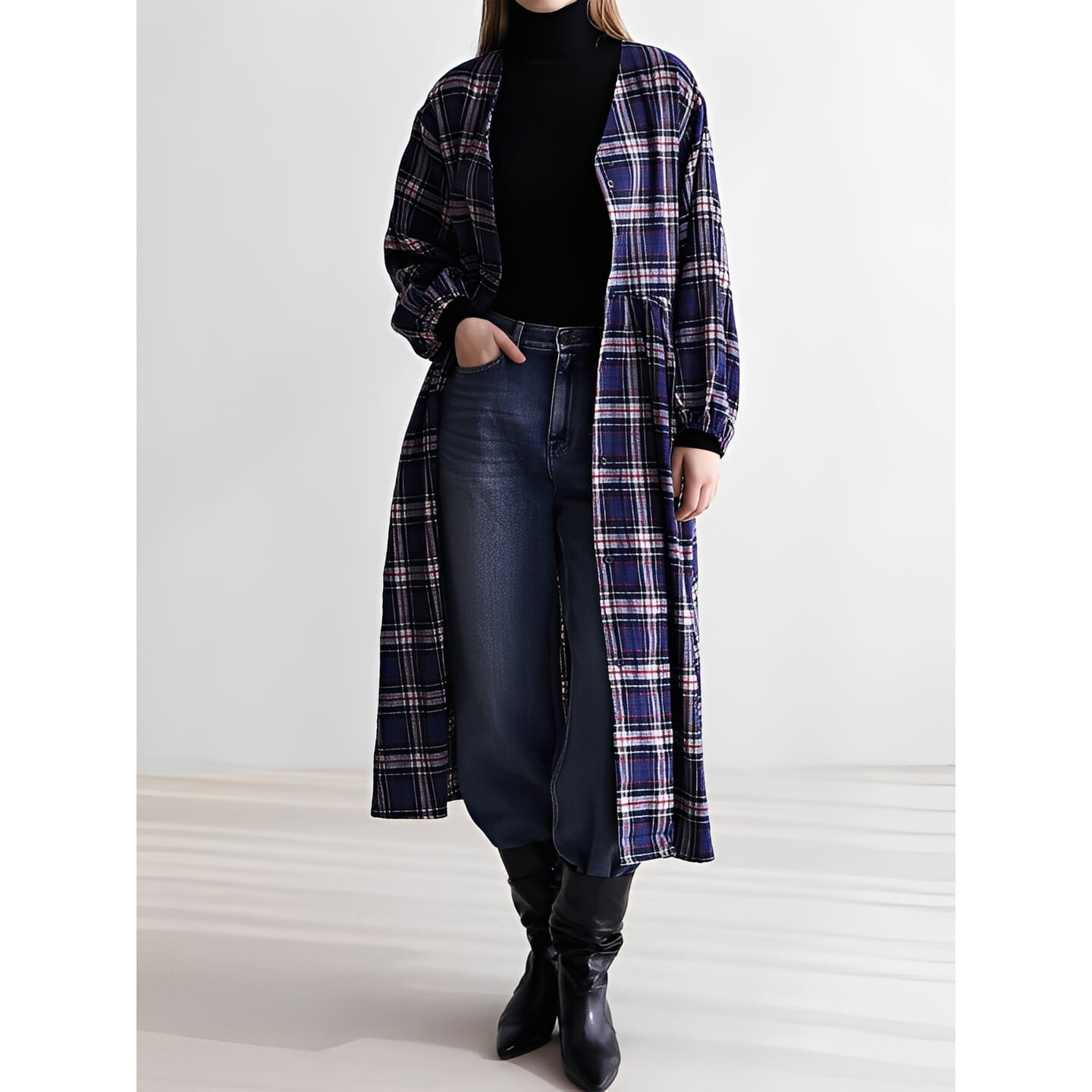 前開き仕様で羽織りとしても使え、着回しの幅が広がる一枚です。