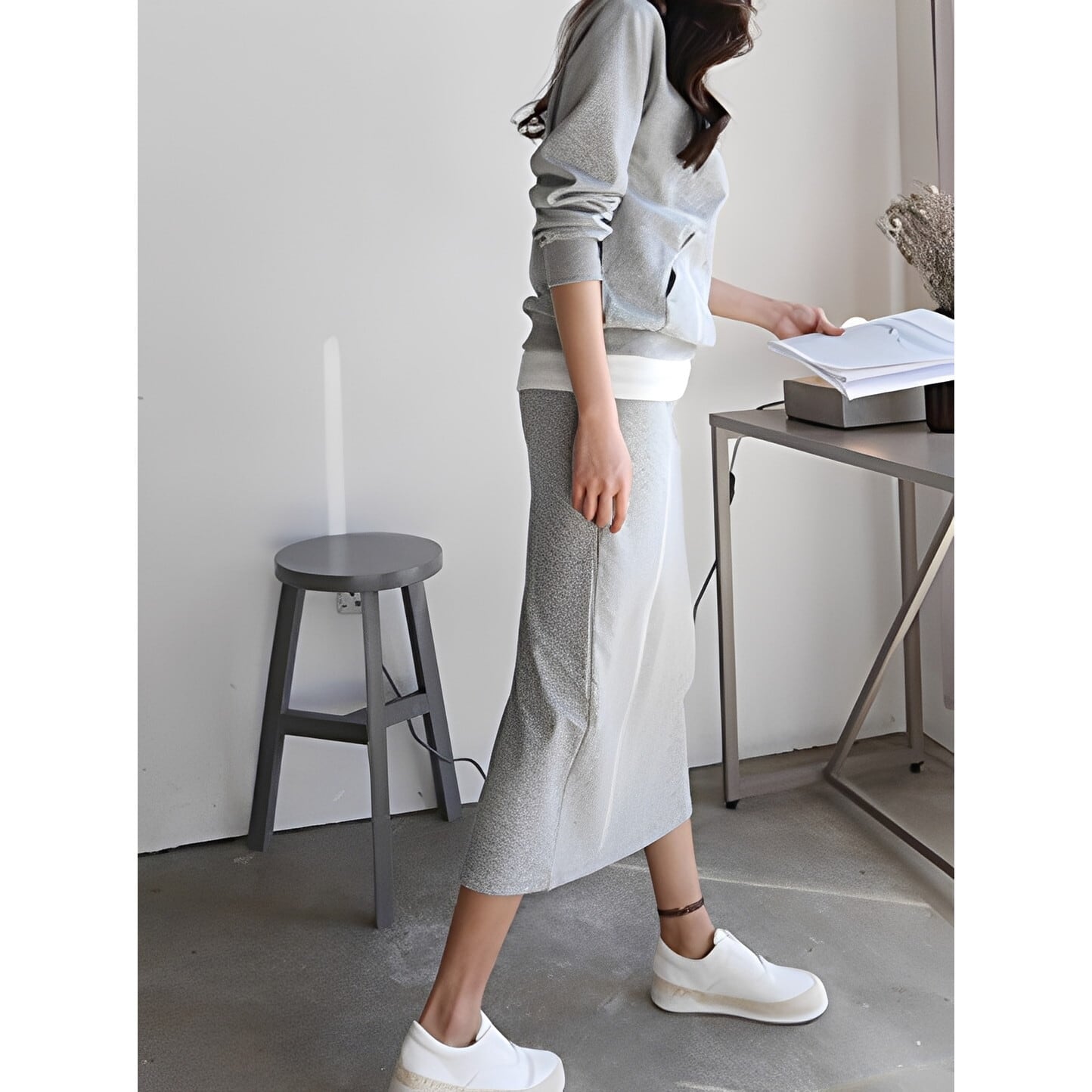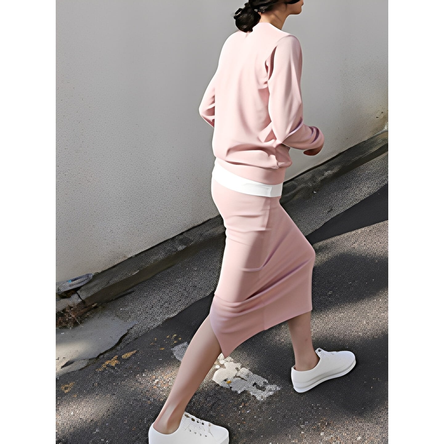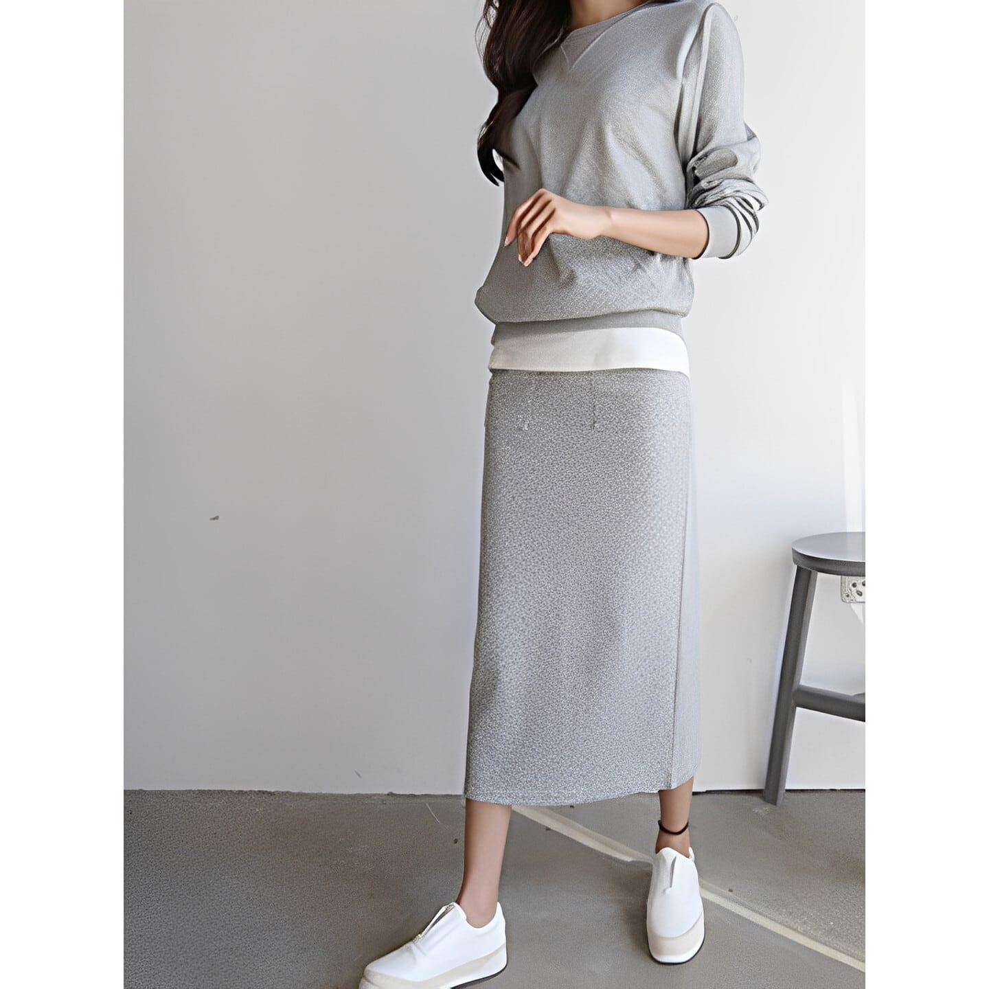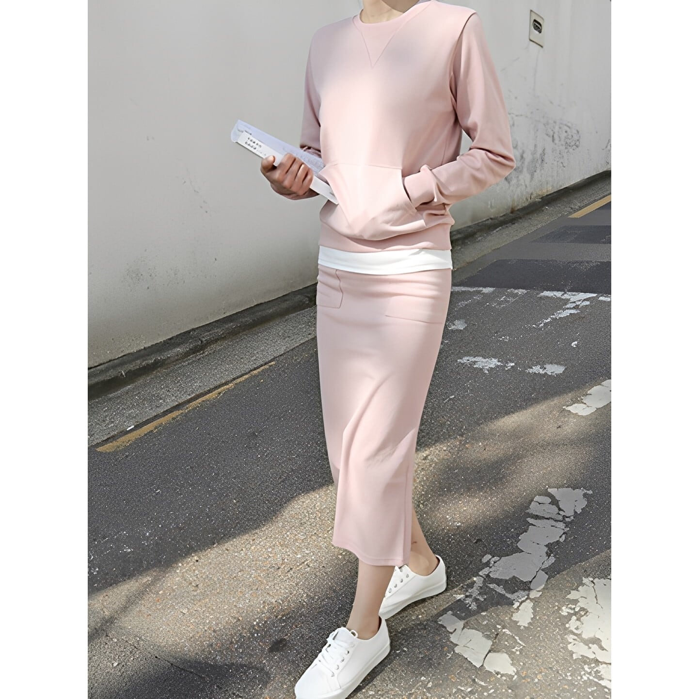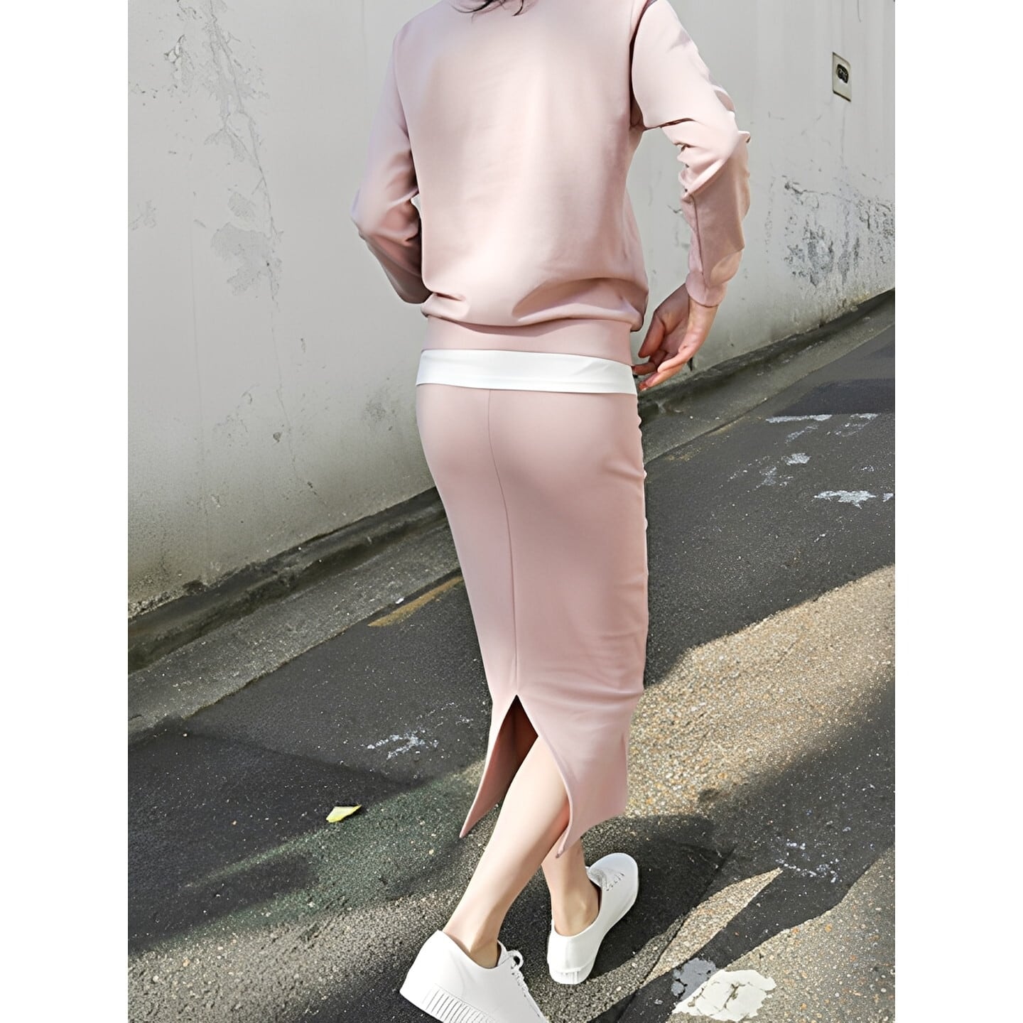 レイヤード風のデザインがこなれ感を演出するスウェットセットアップ◎