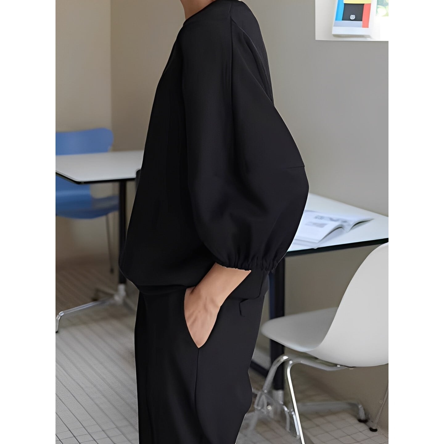 ふんわりとしたボリュームスリーブが華やかさを添える大人トップス◎