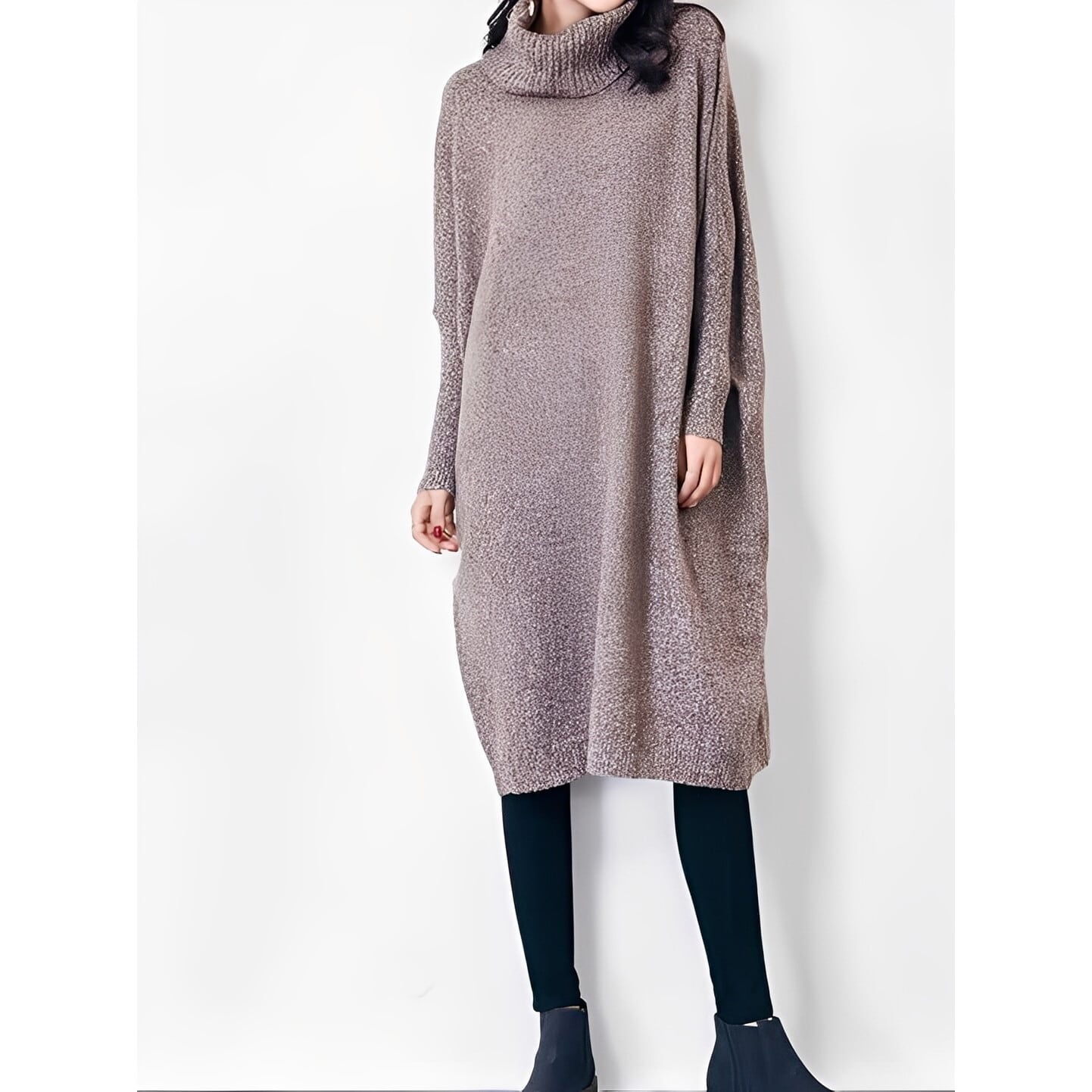 肩まわりを包み込むようなドルマンスリーブが印象的なニットワンピース◎