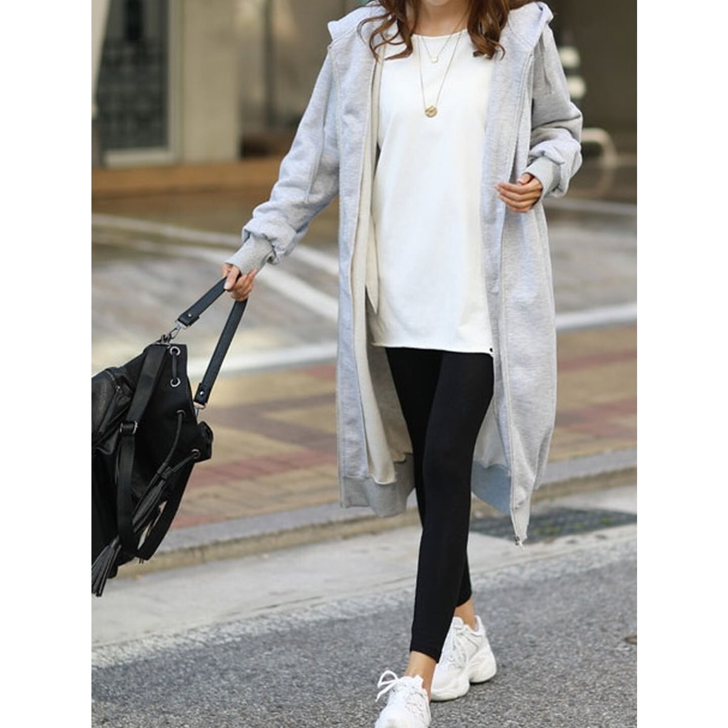 ロング丈とジップデザインが大人っぽさを引き立てる裏起毛パーカー◎
