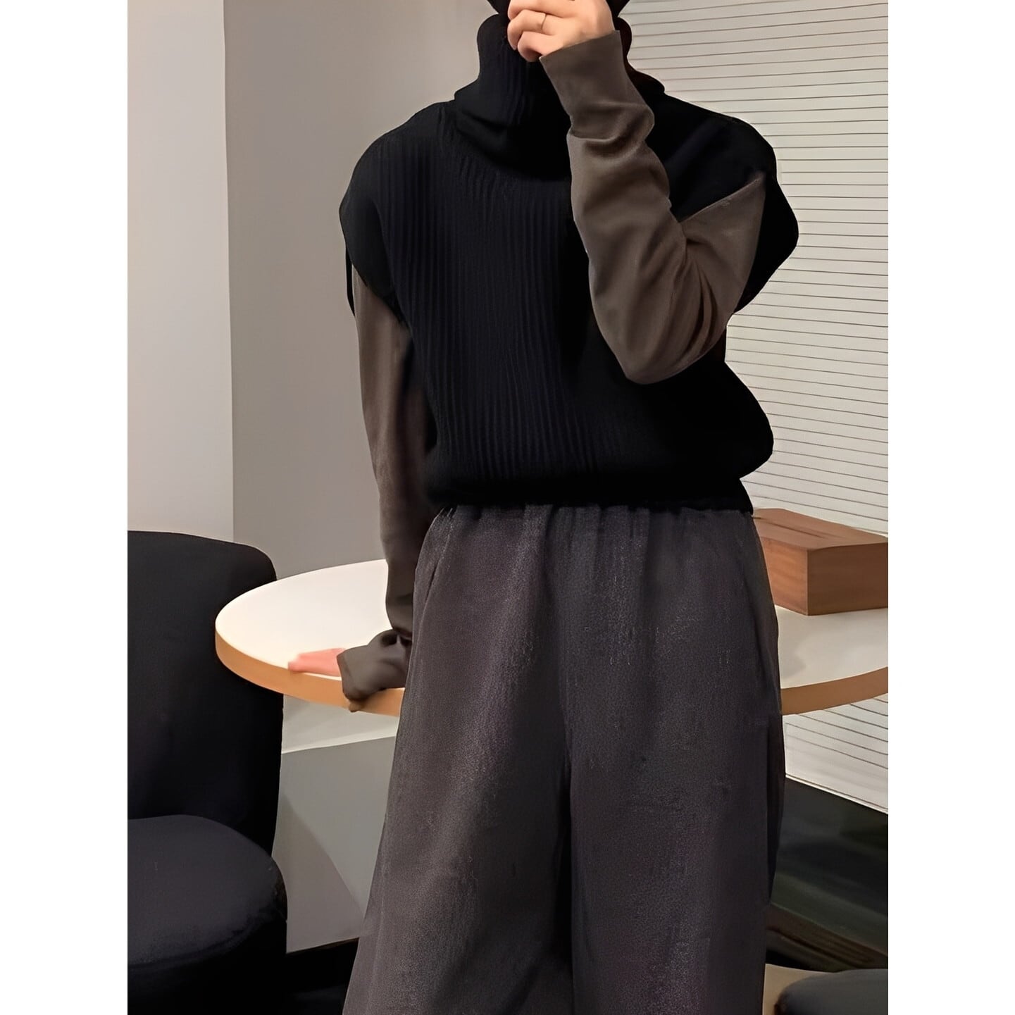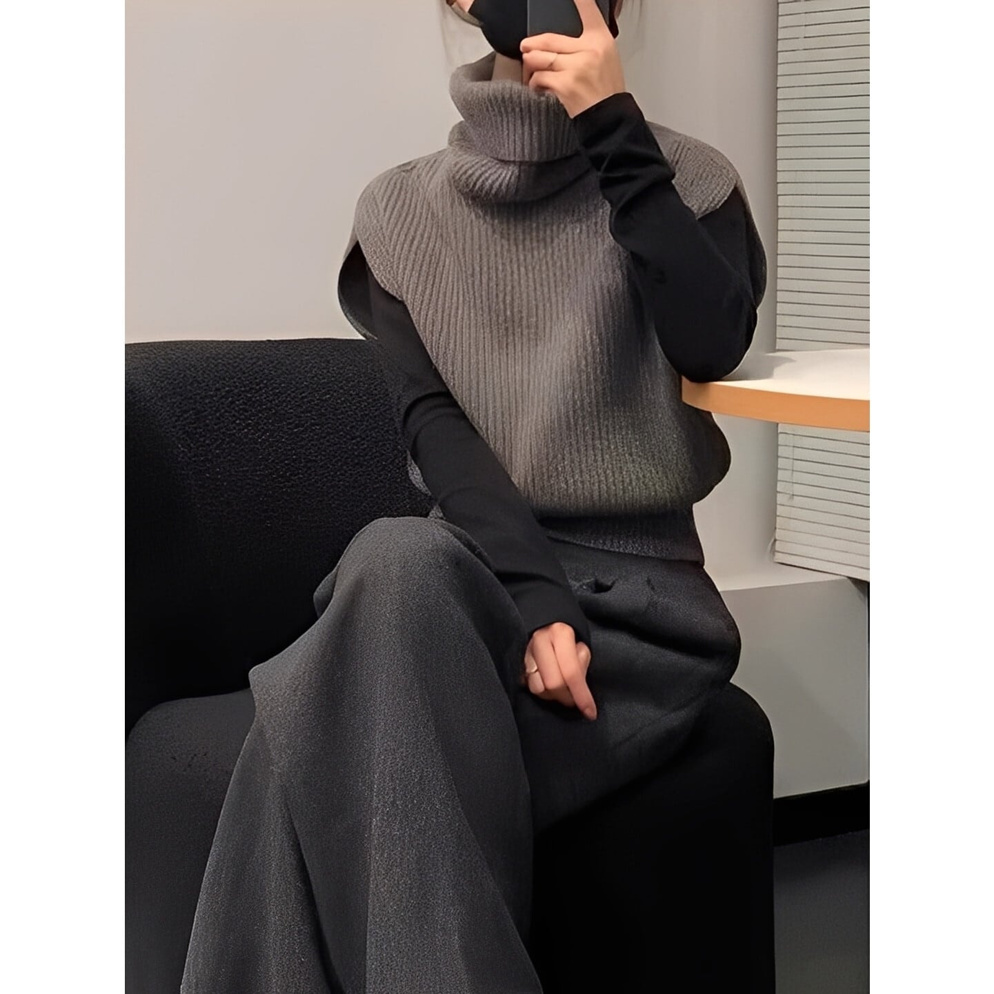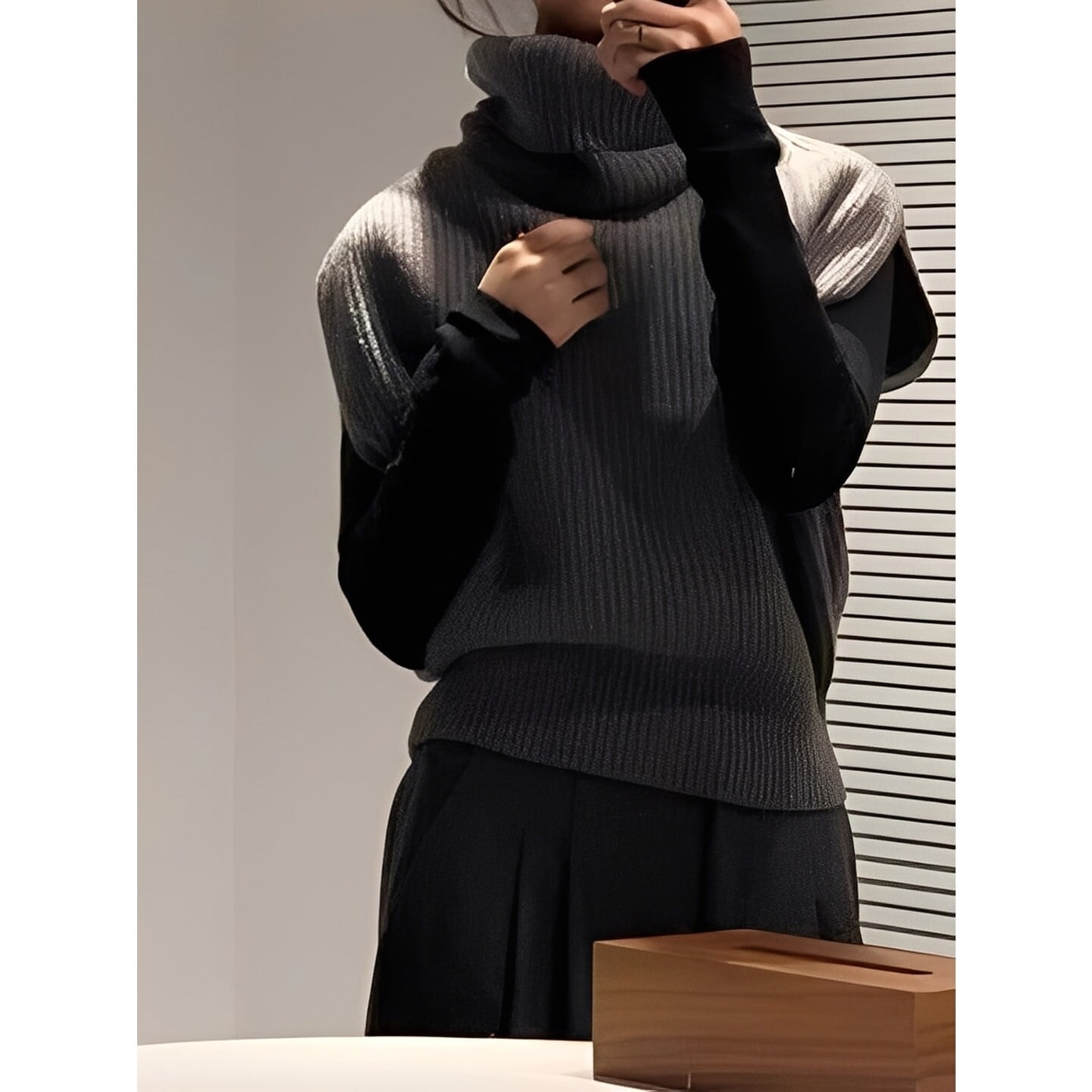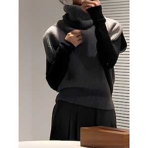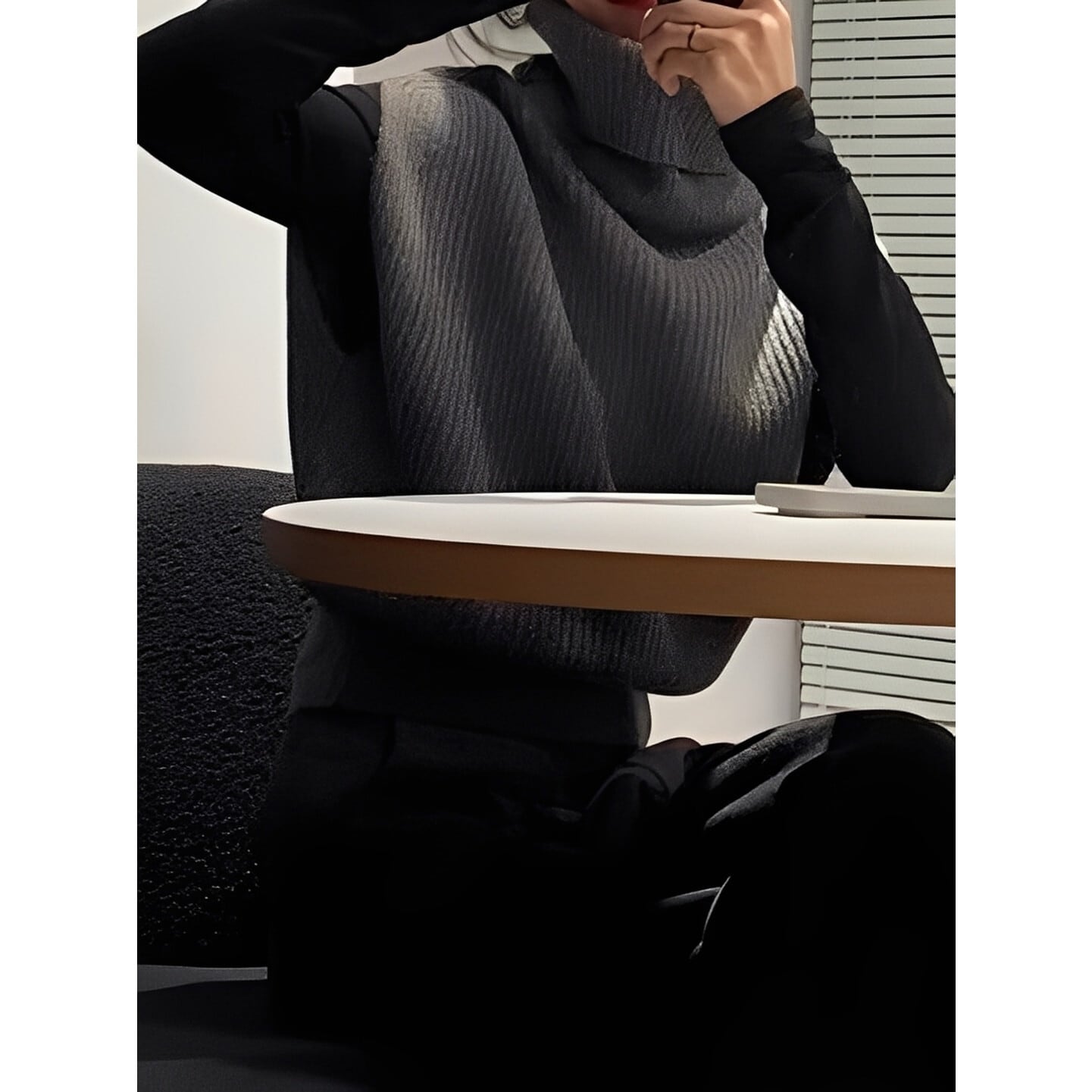 首元をすっきり見せてくれるハイネックデザインのスリーブレスニット◎