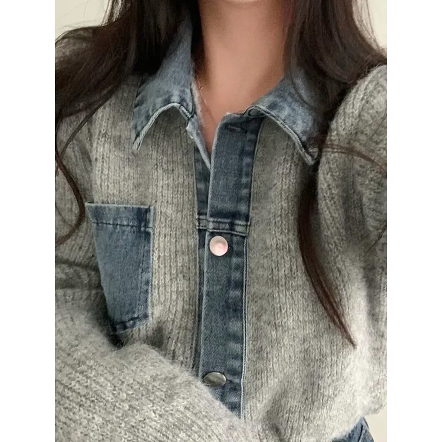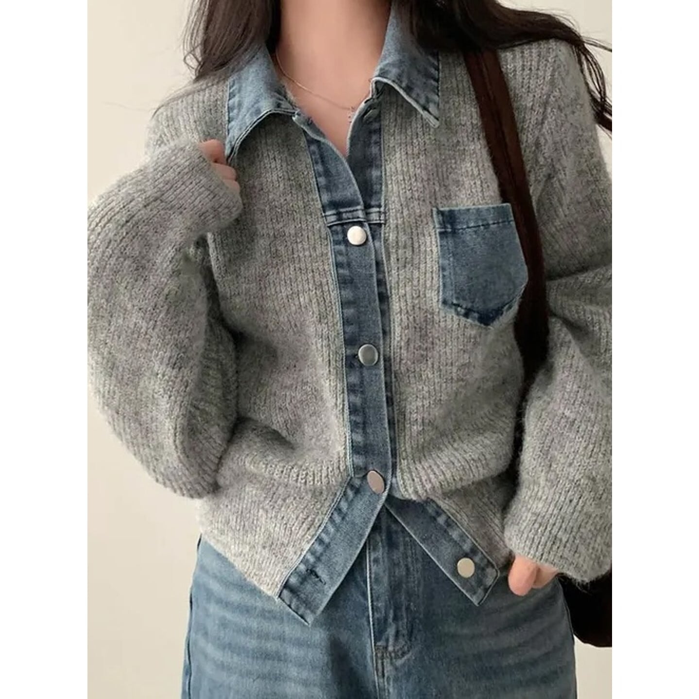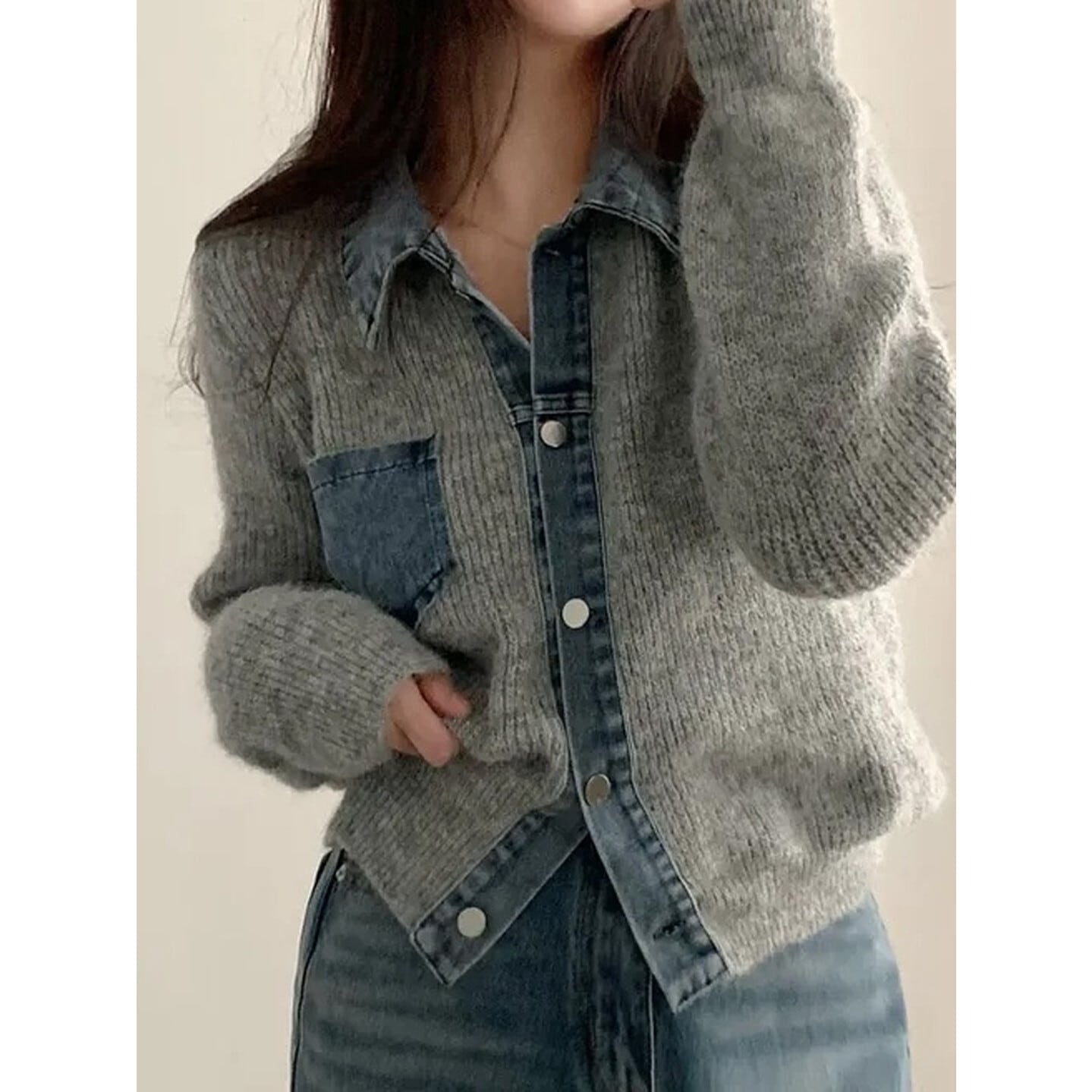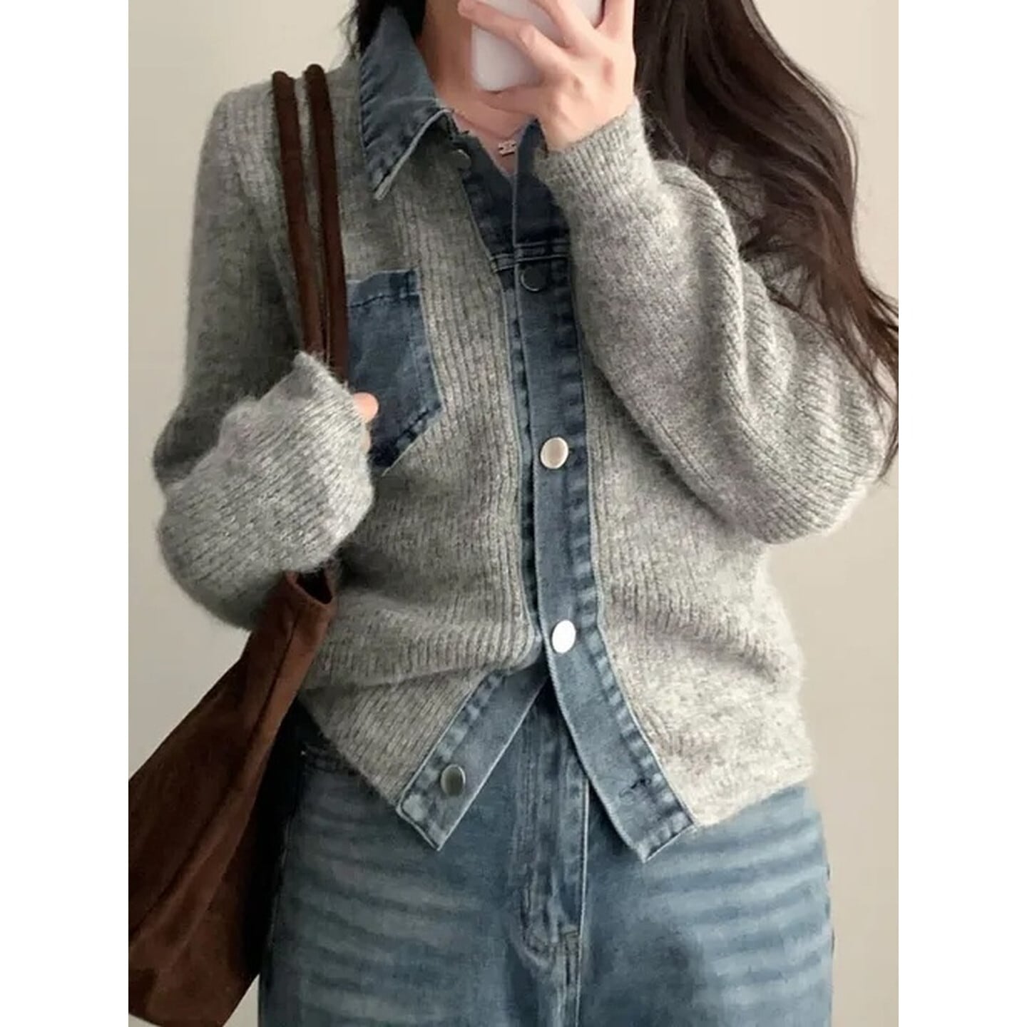 デニムとニットの異素材ミックスが目を惹くカーディガン◎