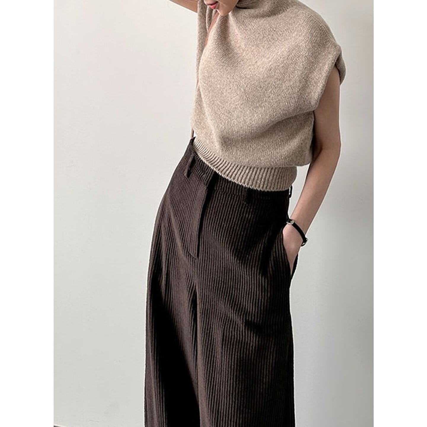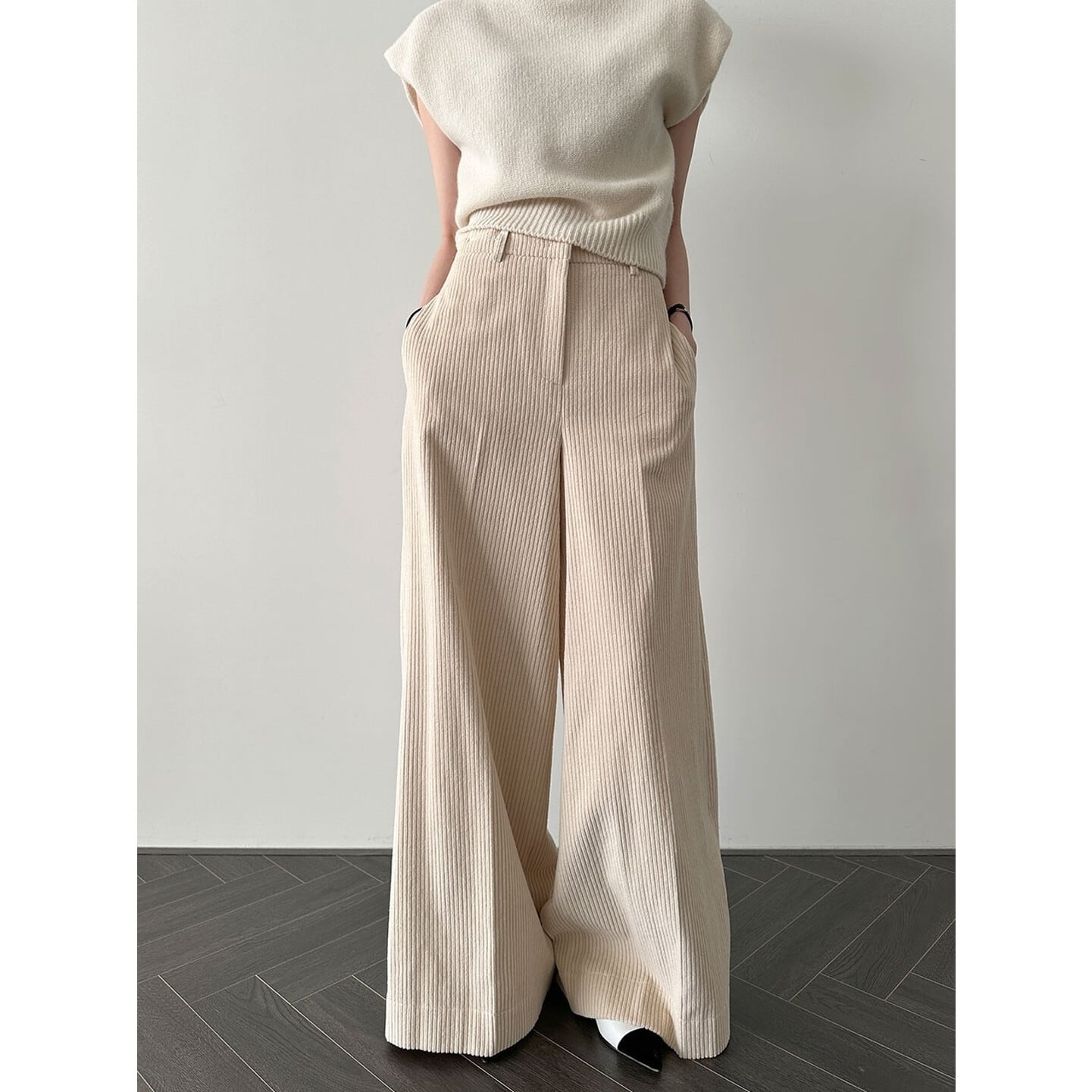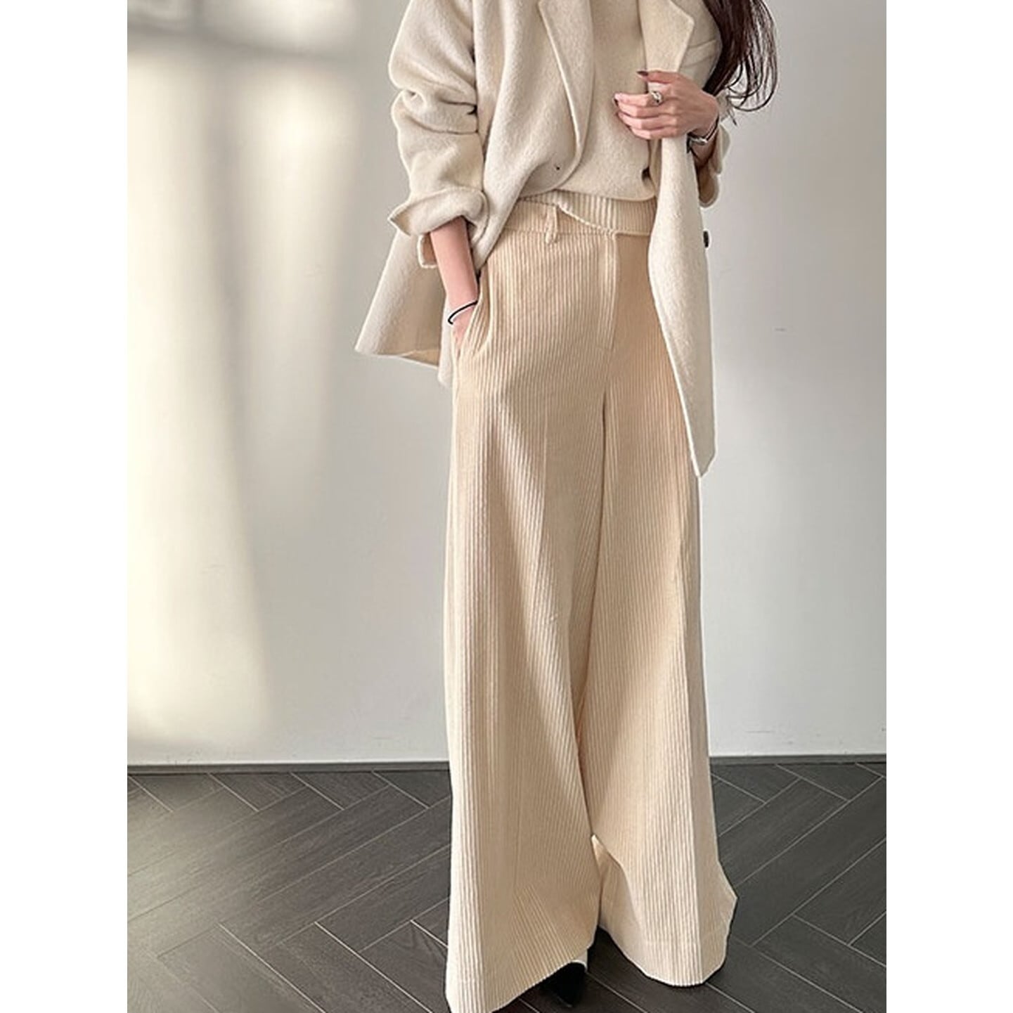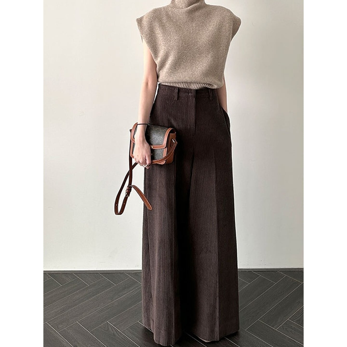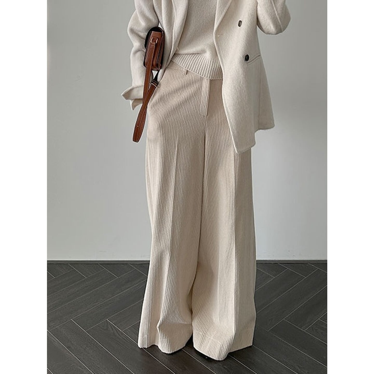 ハイウエストデザインで脚長効果が叶うコーデュロイパンツ◎