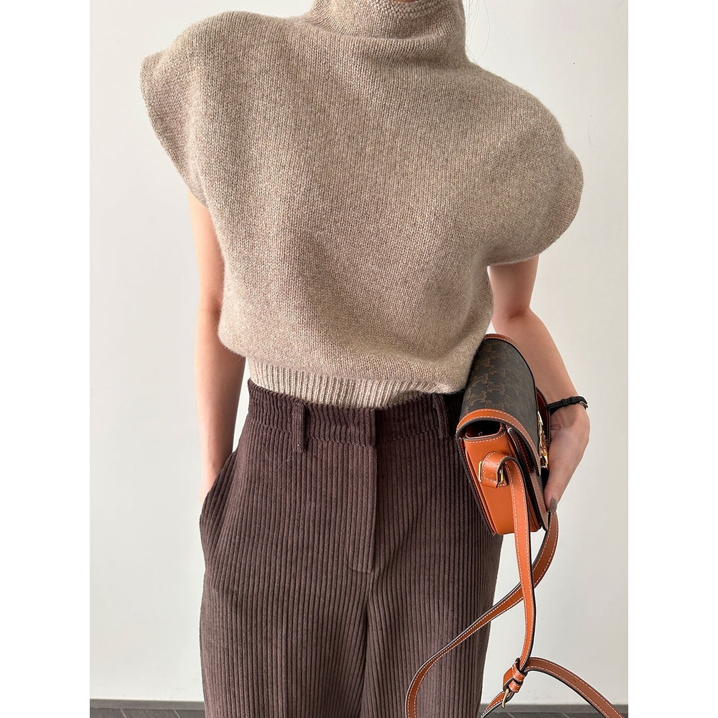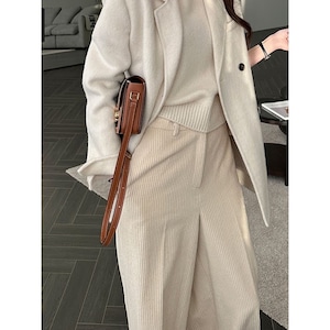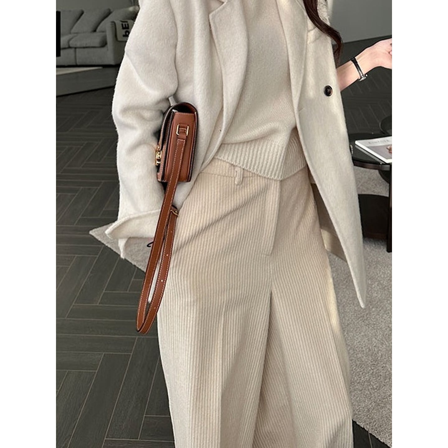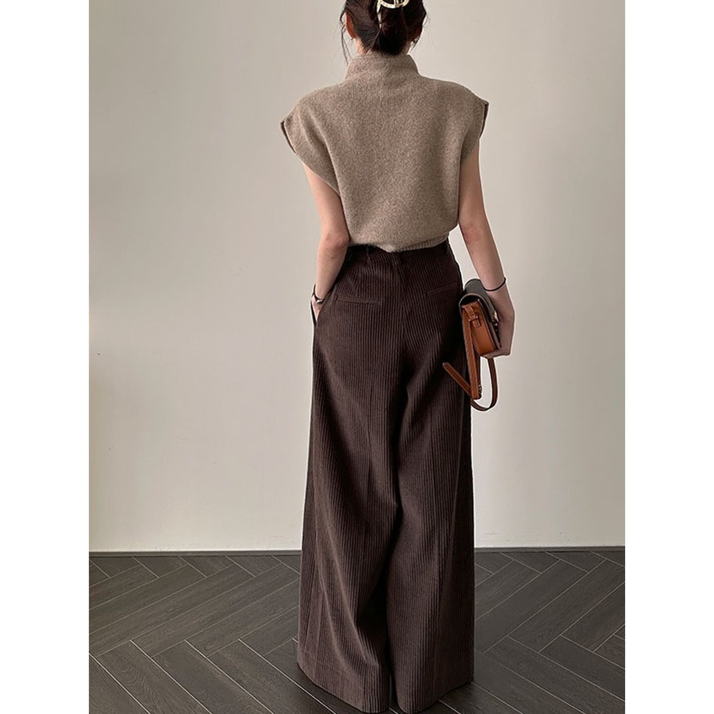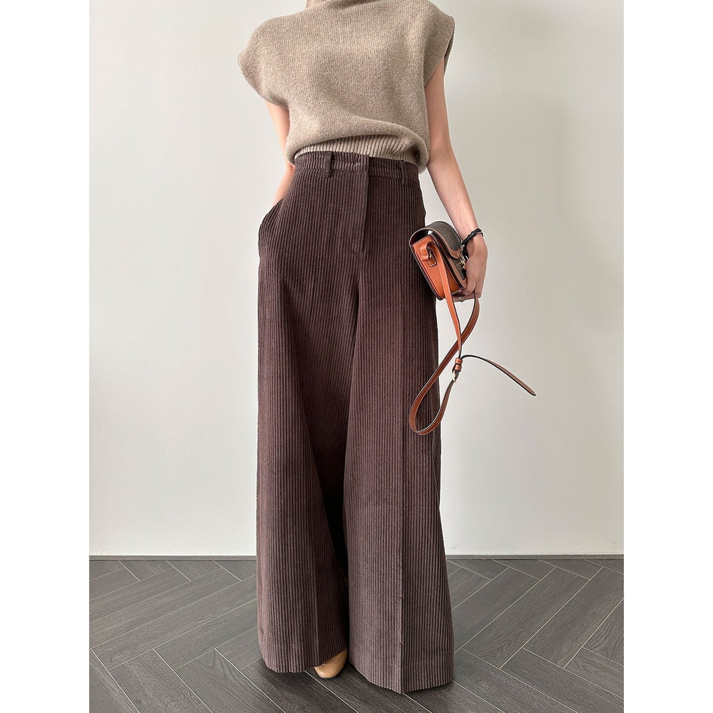 ハイウエストデザインで脚長効果が叶うコーデュロイパンツ◎