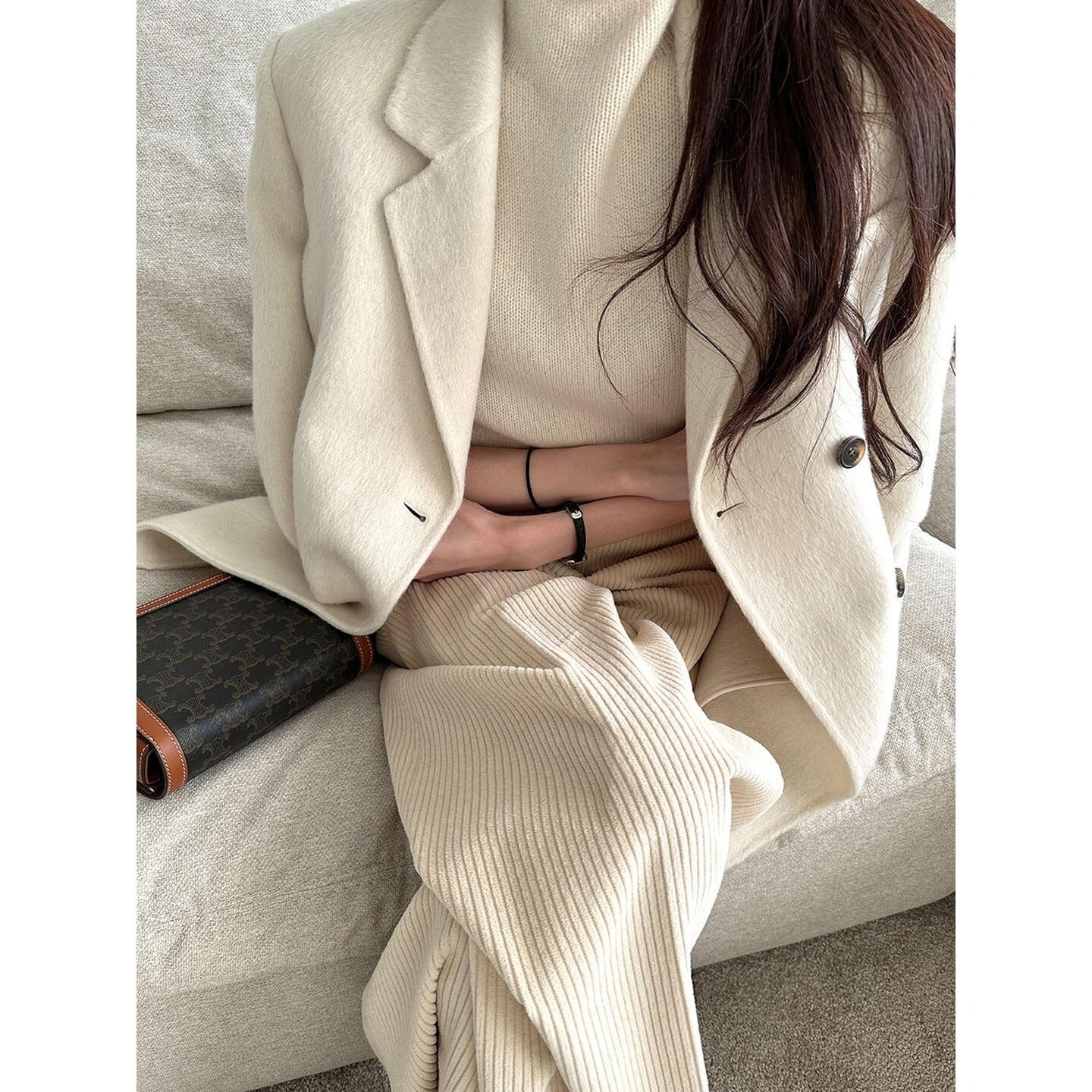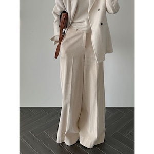 ニットやシャツをタックインして、品よく季節感のある装いに♪