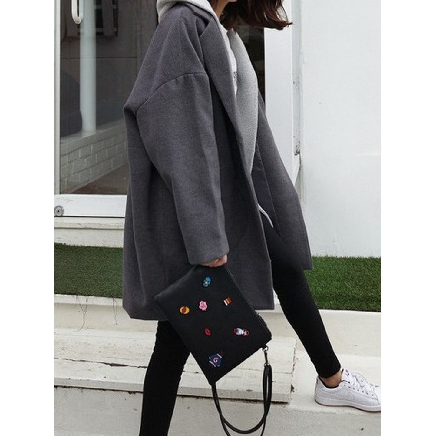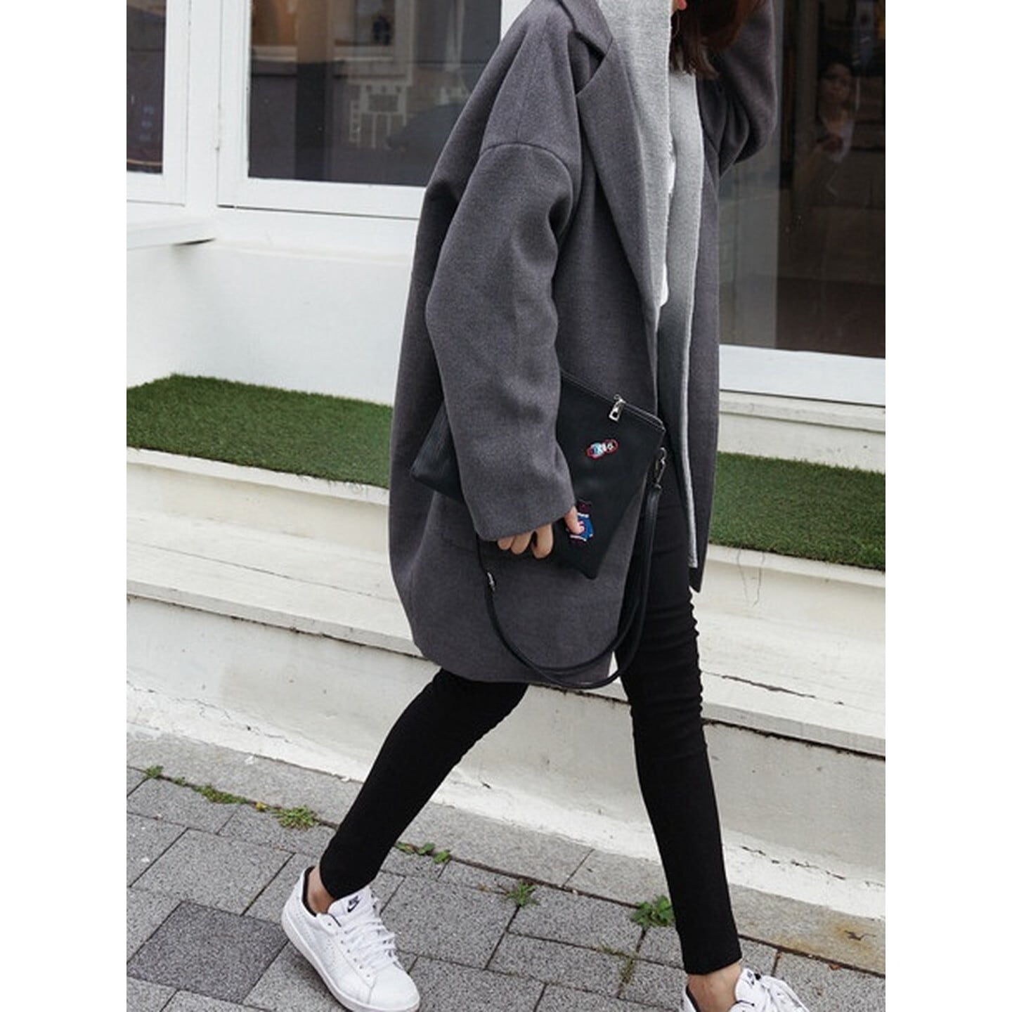 ゆったりとしたシルエットがこなれ感を演出するテーラードコート。
