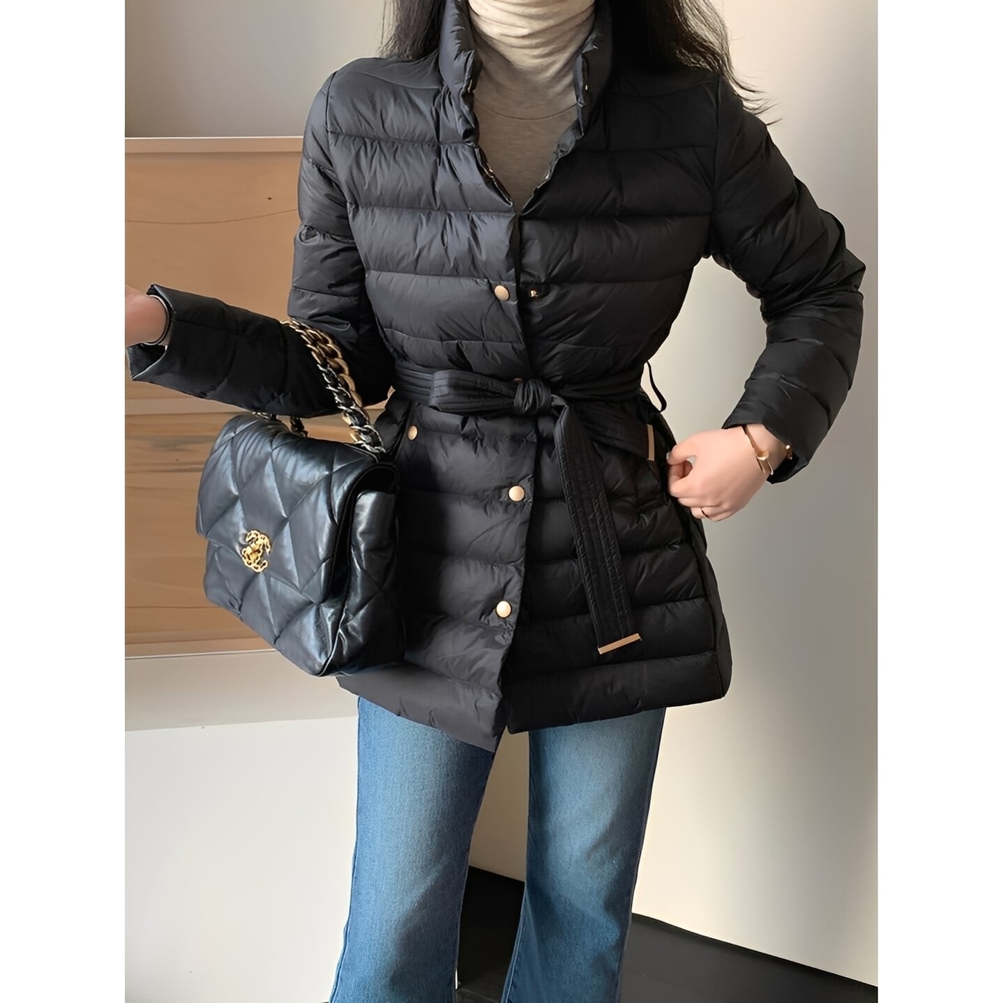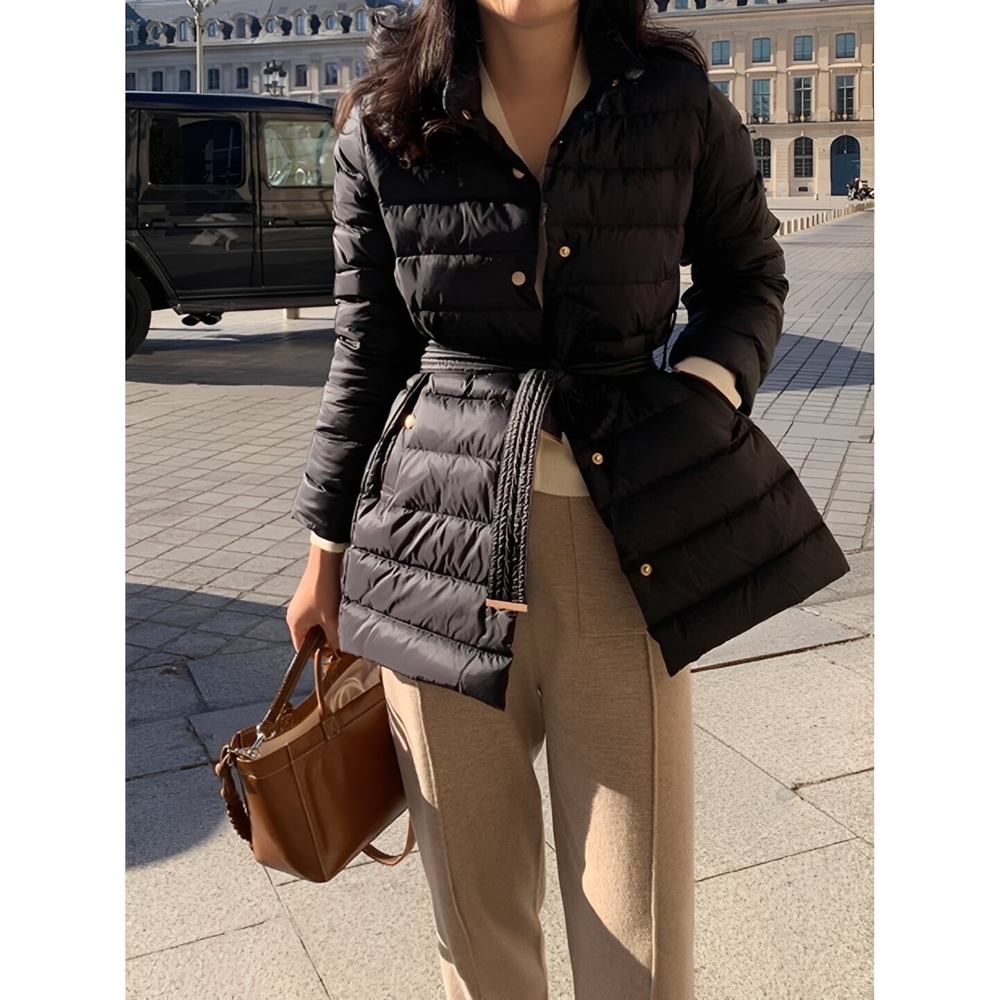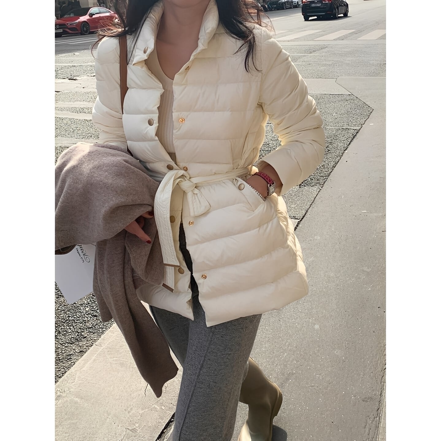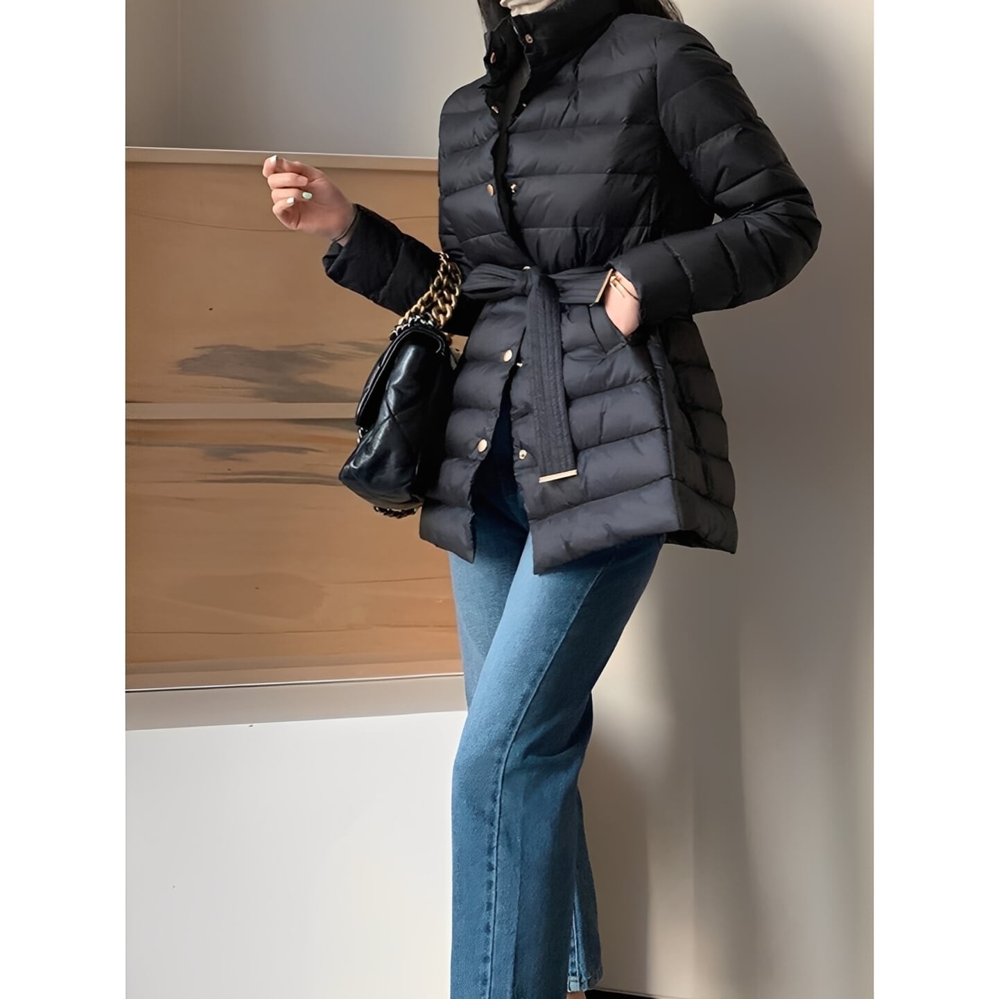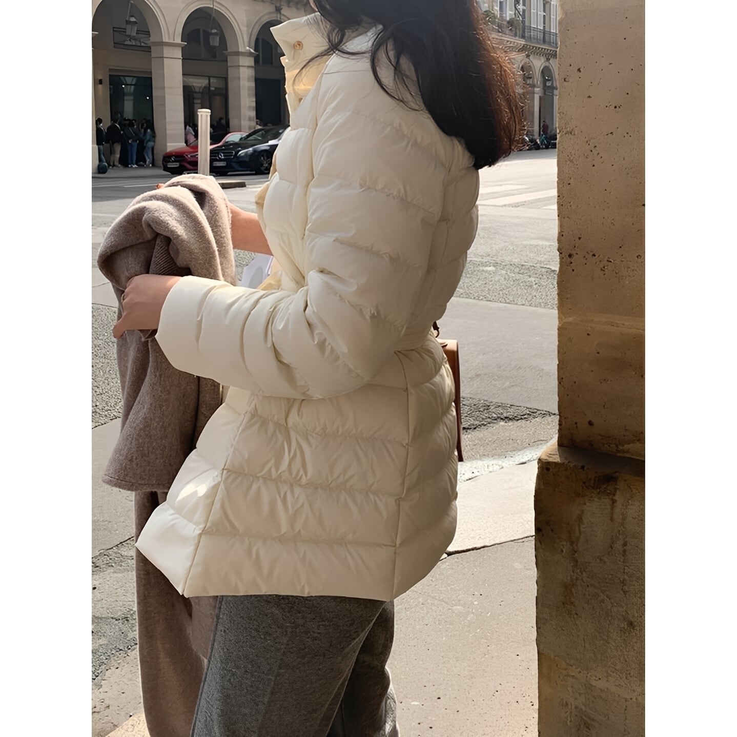 ウエストマークが美シルエットを引き立てる上品ショートダウン◎