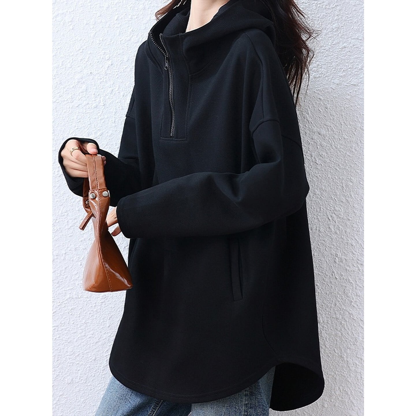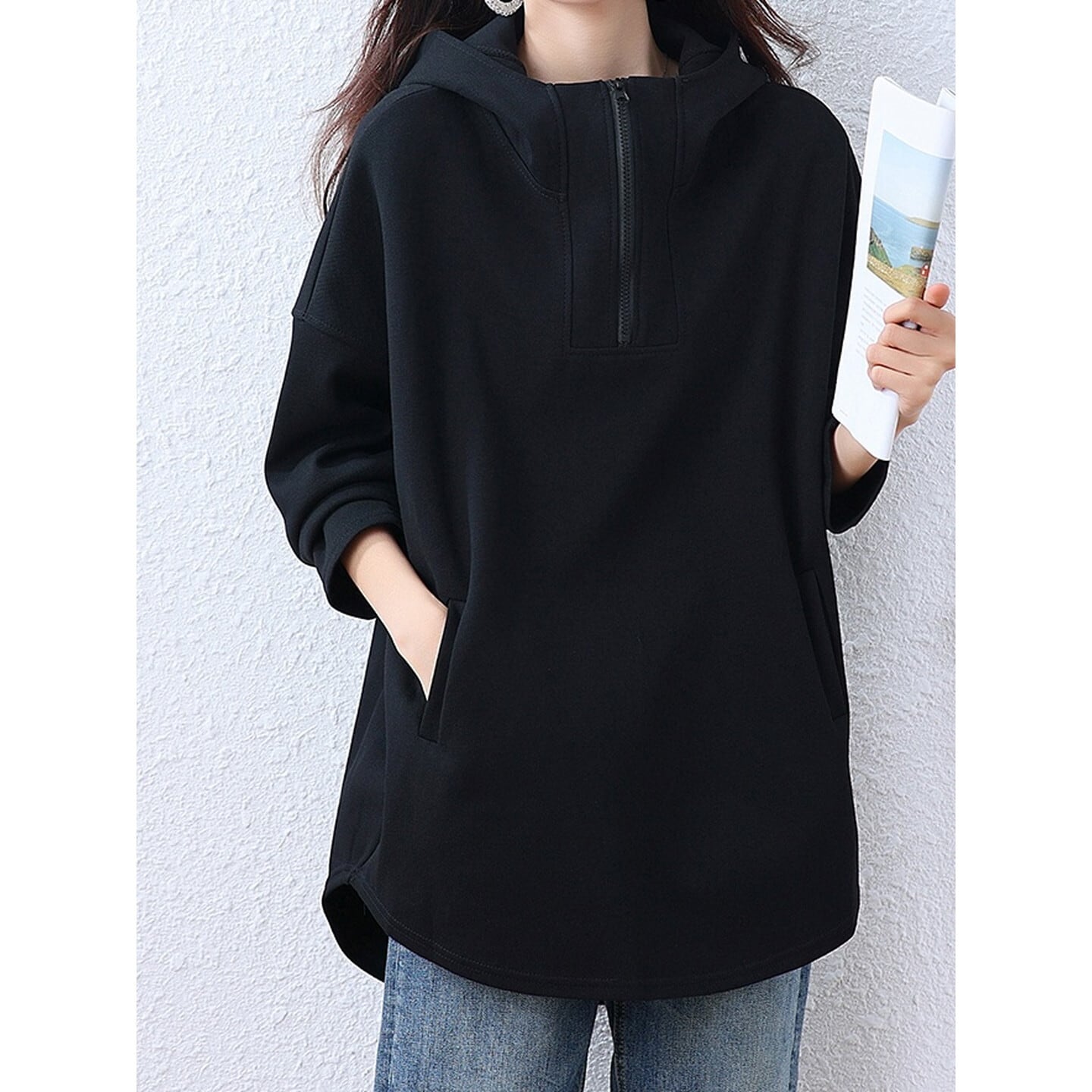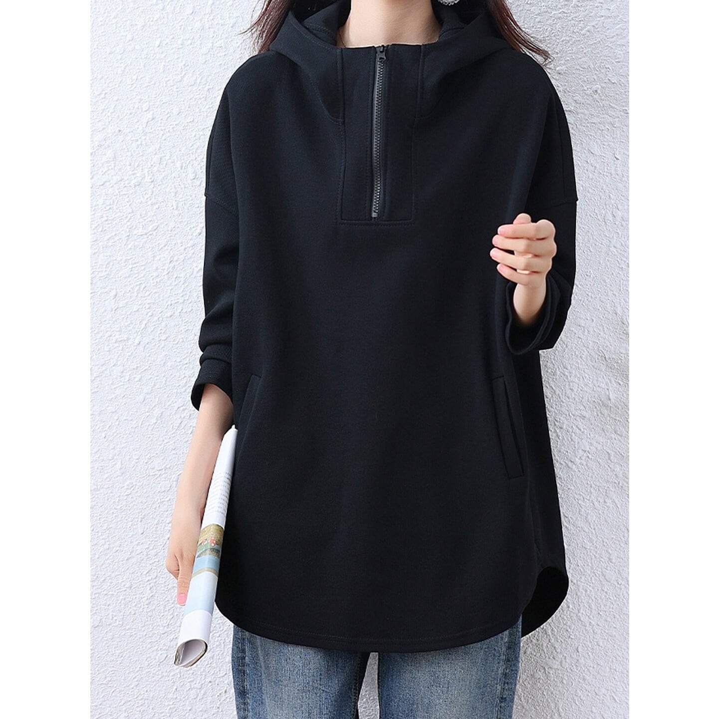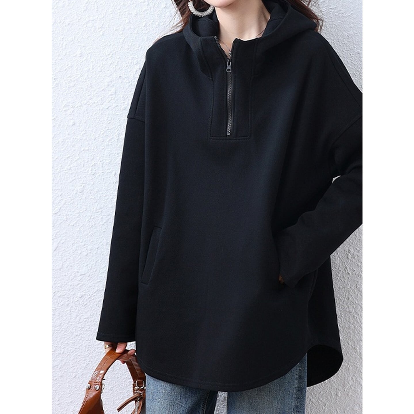 程よいゆとりが魅力のハーフジップアップパーカー◎