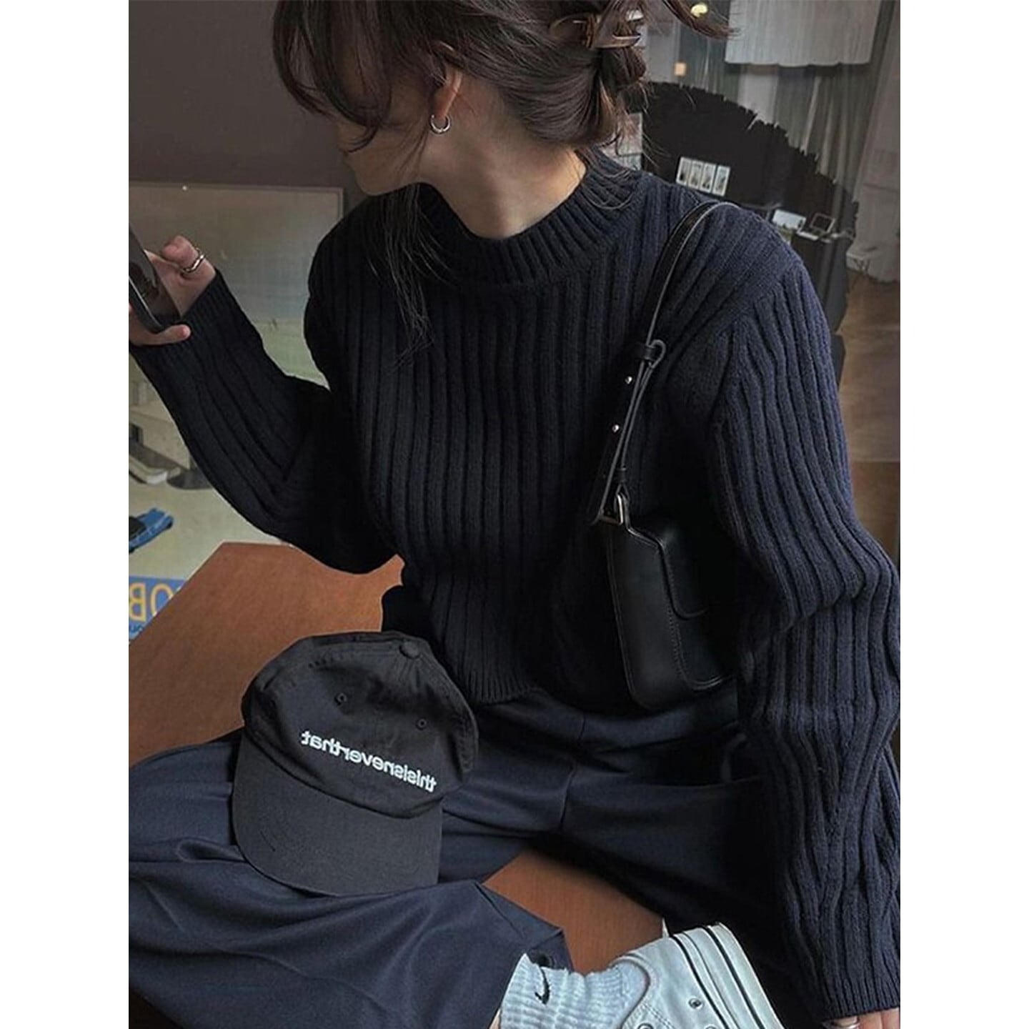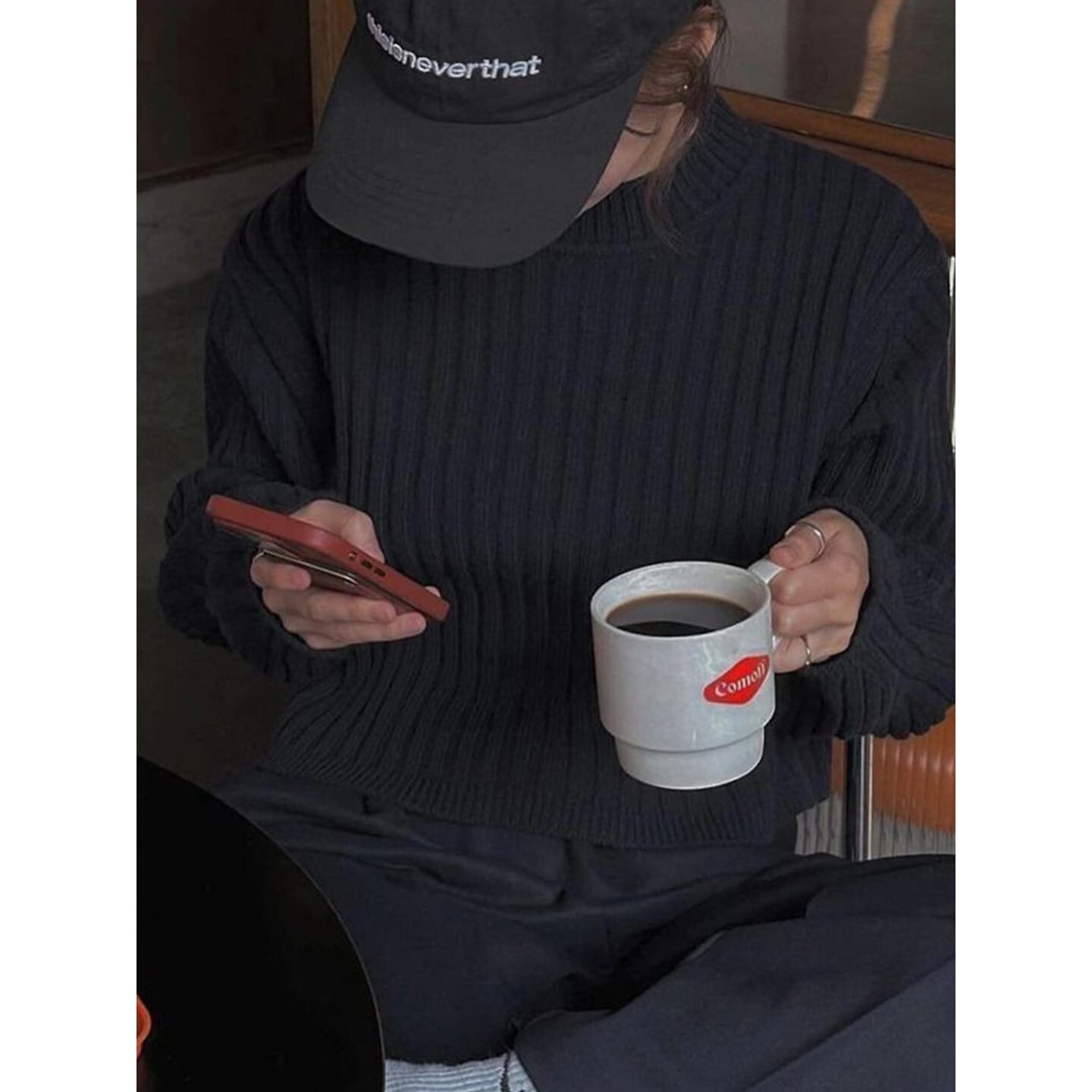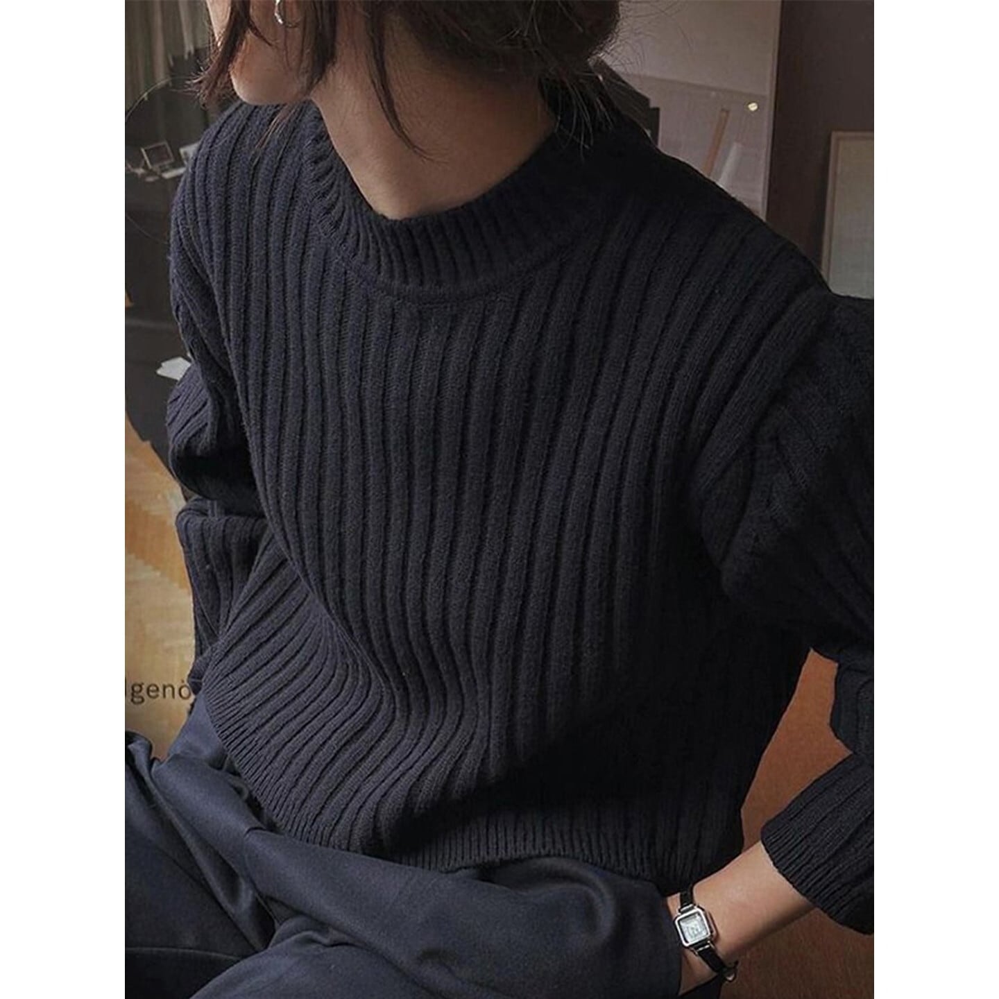 立体感のあるリブ編みで、シンプルながら存在感のある一枚。
