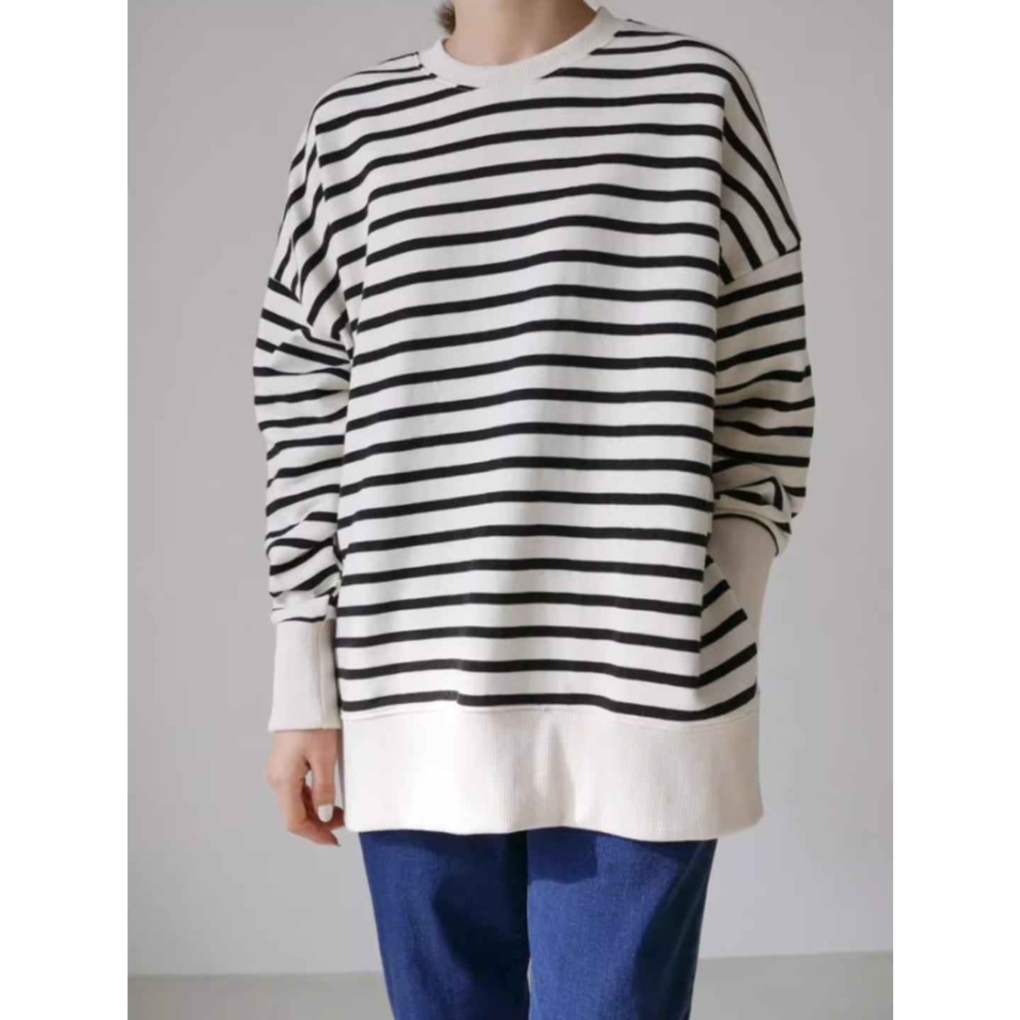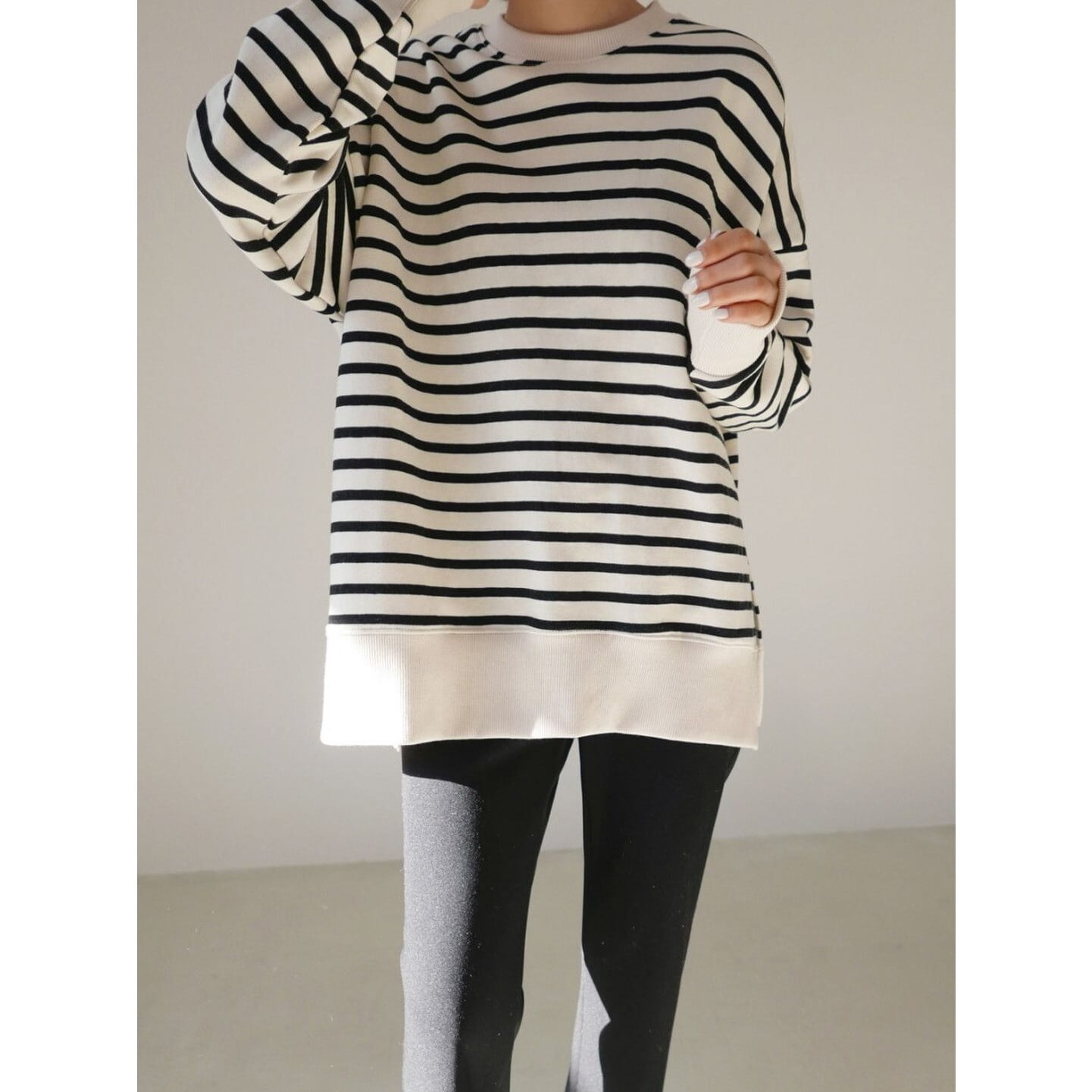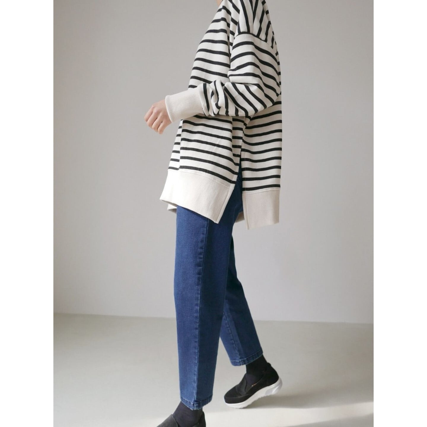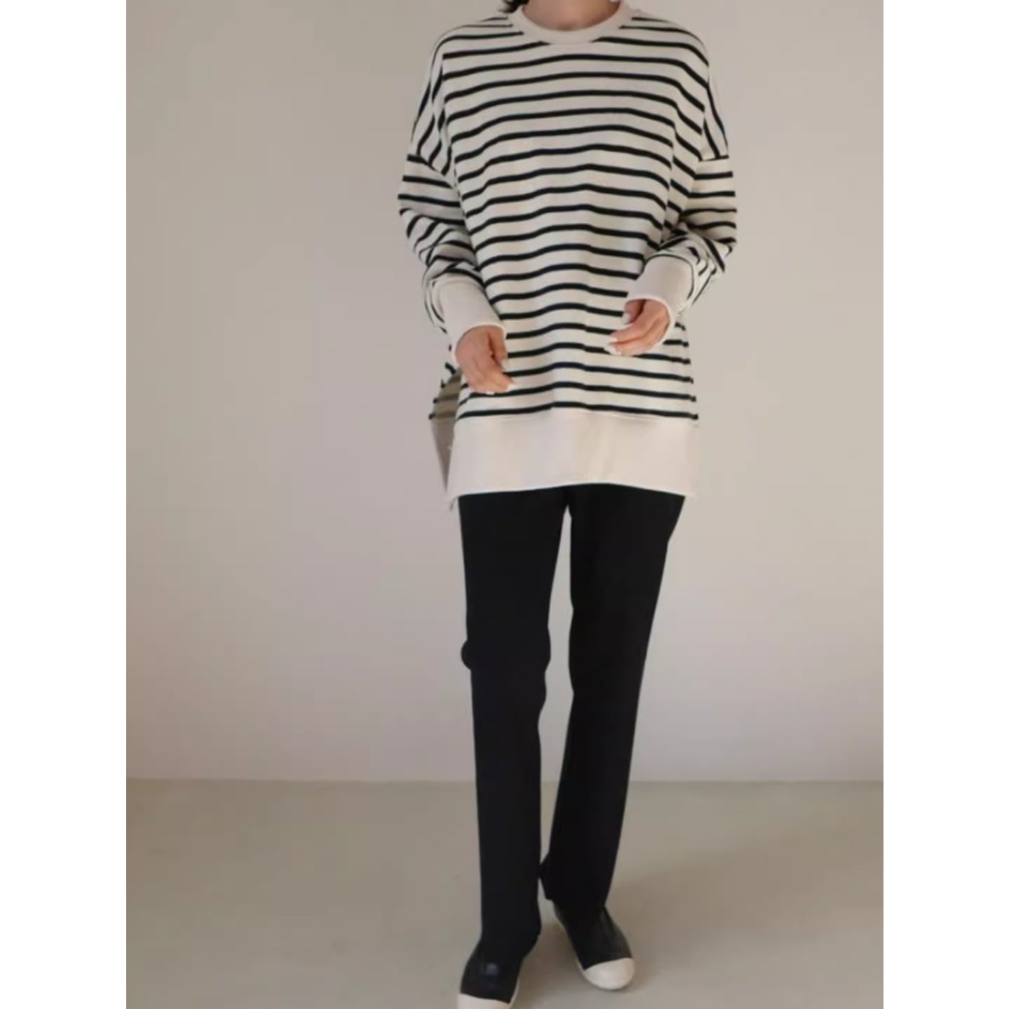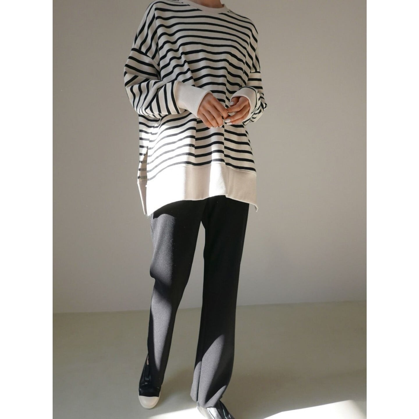 ボーダー柄にサイドスリットで抜け感をプラス。