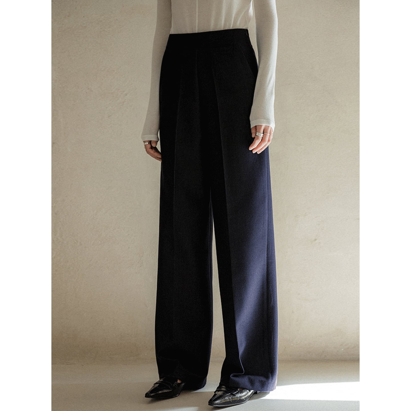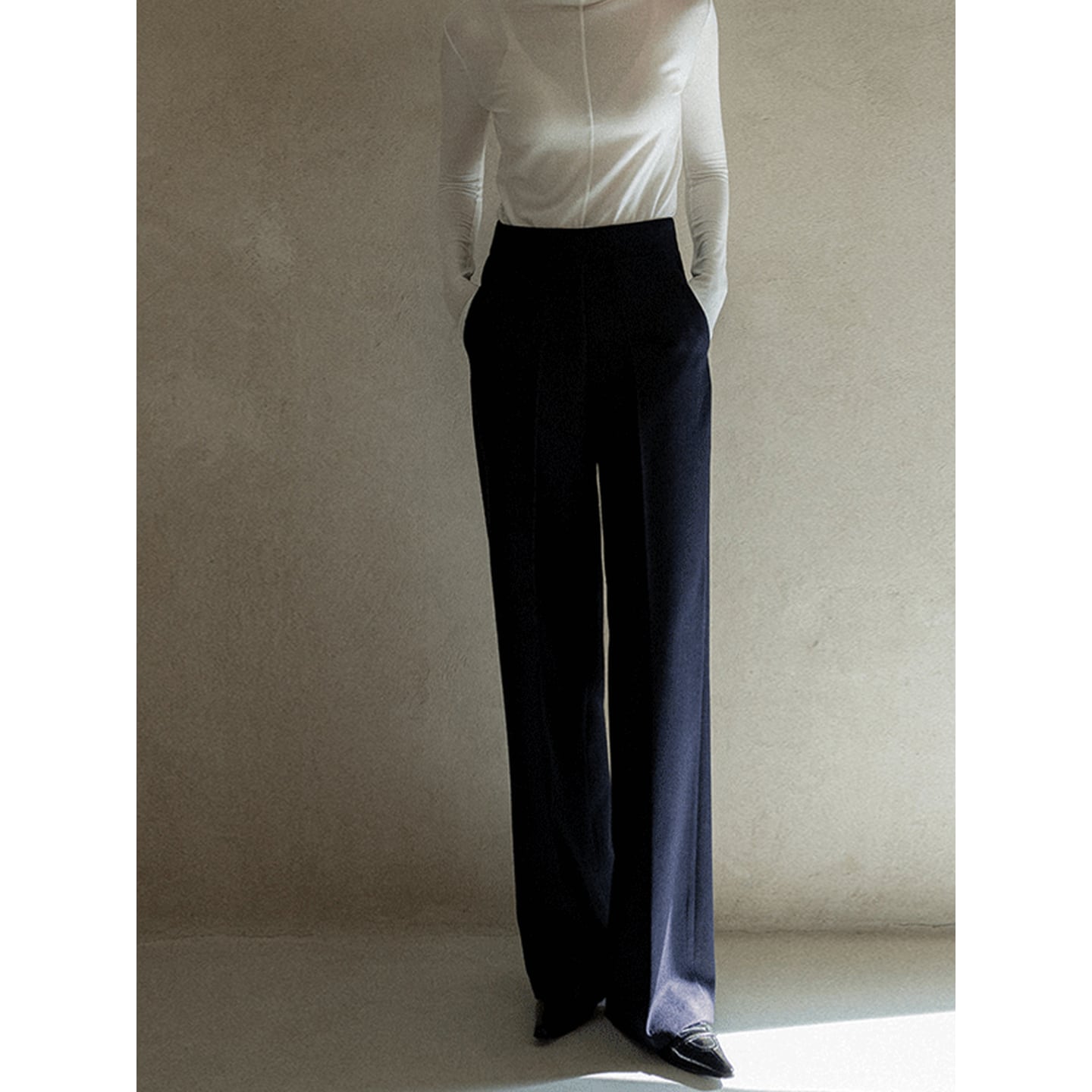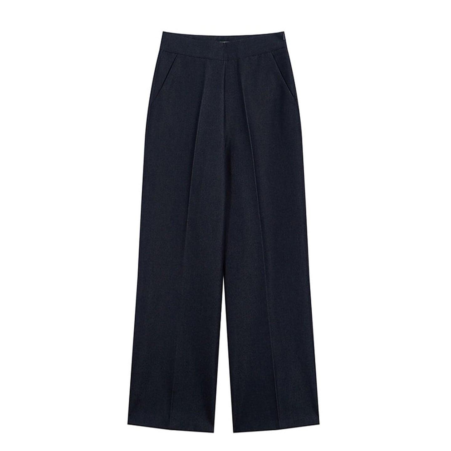 落ち感のあるシルエットで、自然に体型をカバーしてくれる一本。