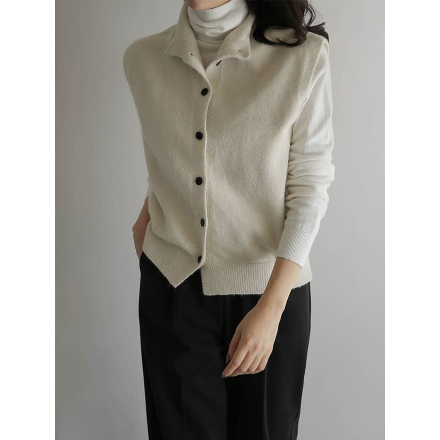 首元まであたたかいスタンドカラーが、きちんと感を演出。