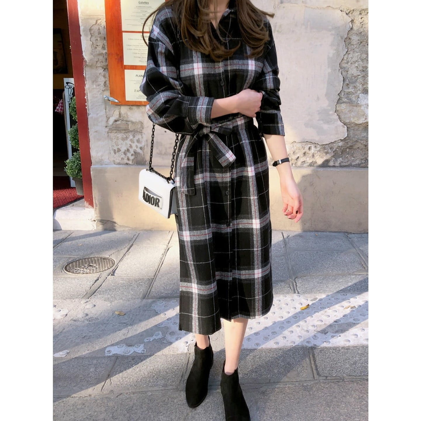 ウエストマークチェックワンピース RA3074