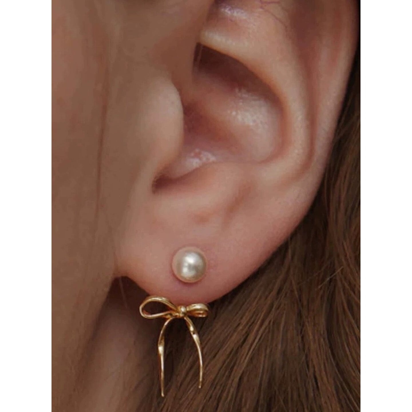 華奢なリボン×パールの組み合わせが、大人の可愛らしさを演出。