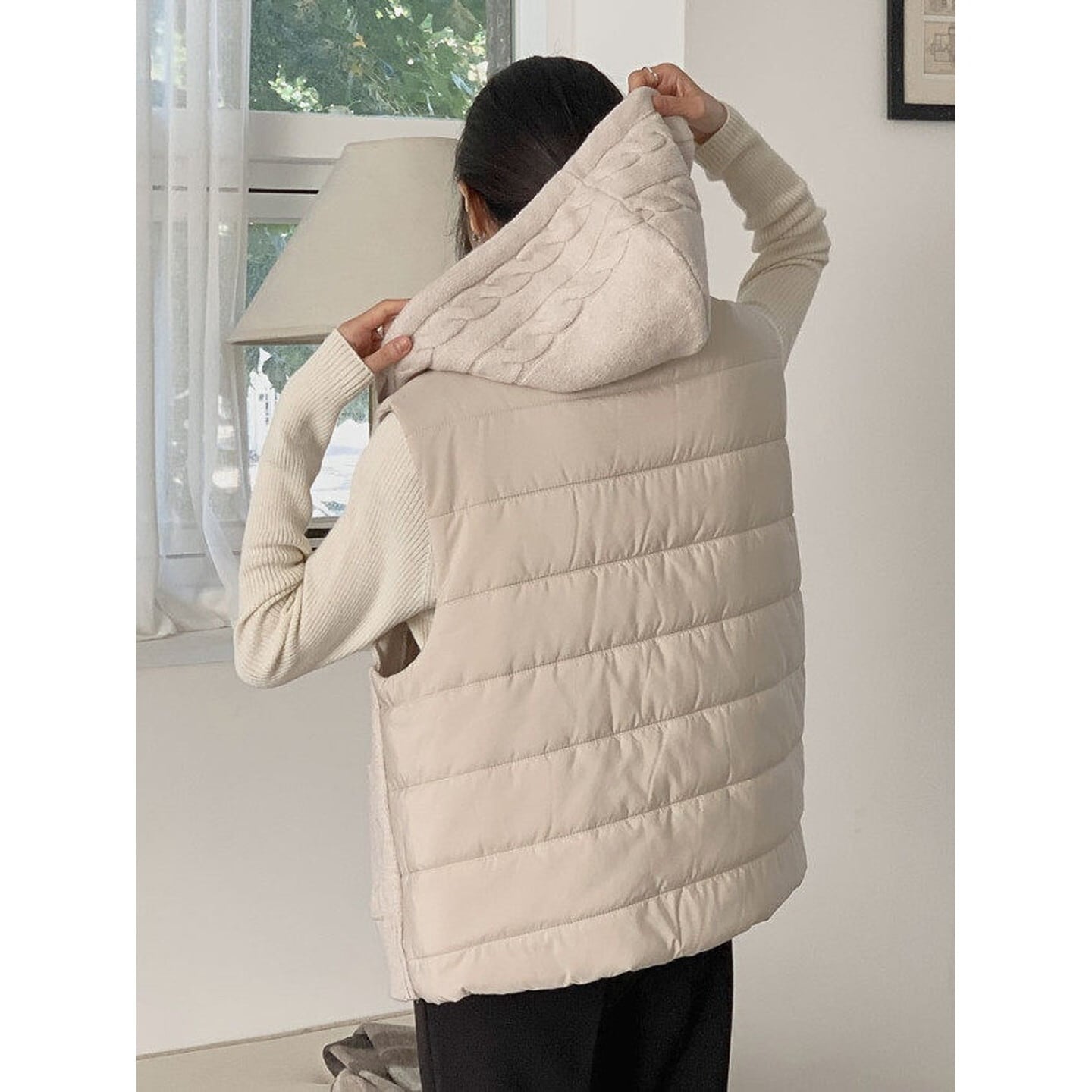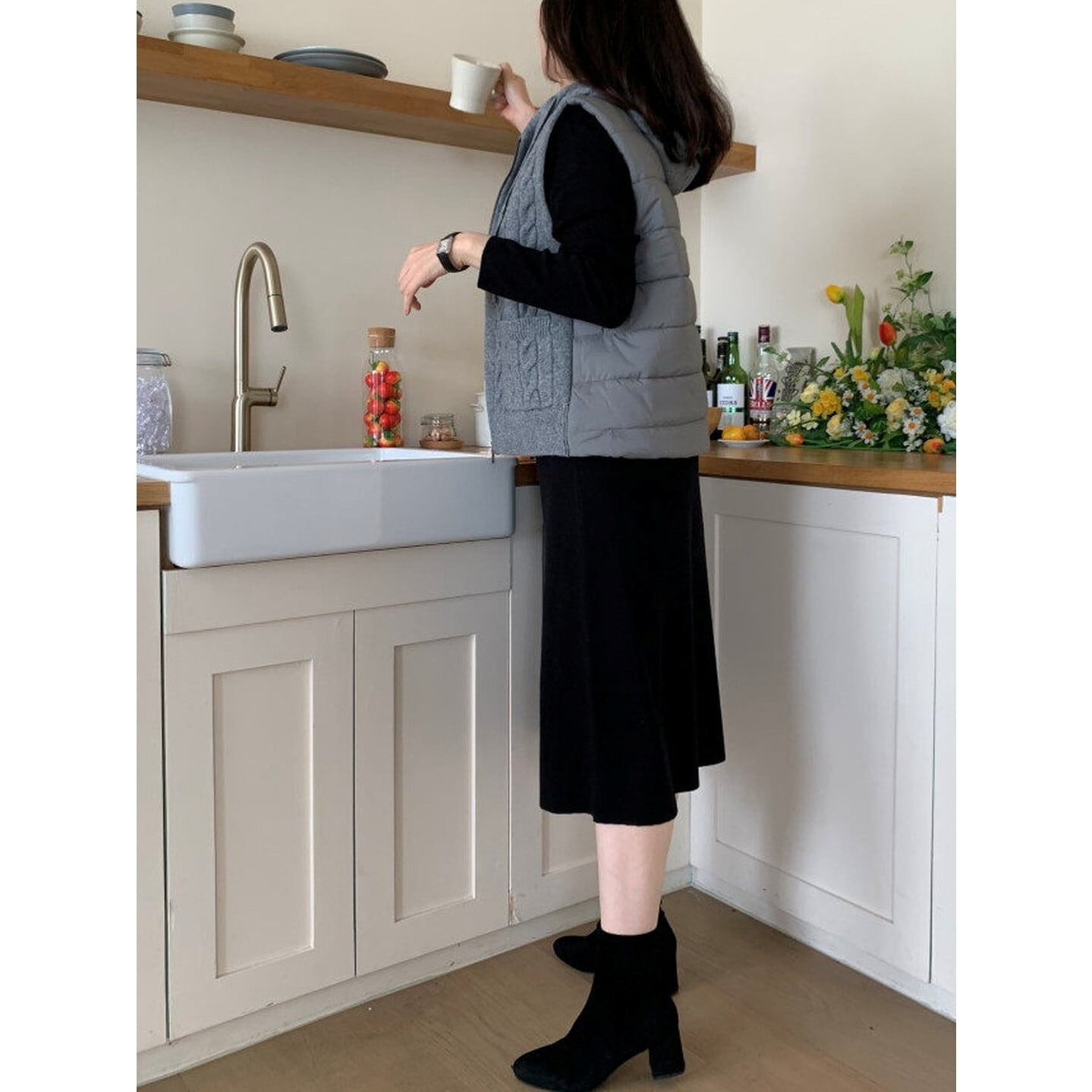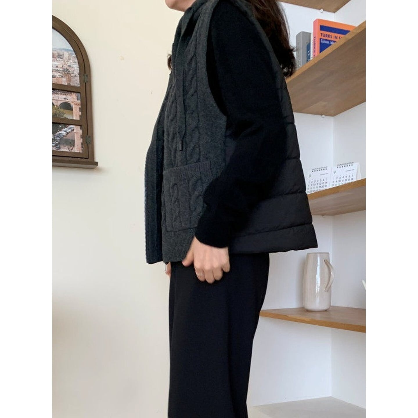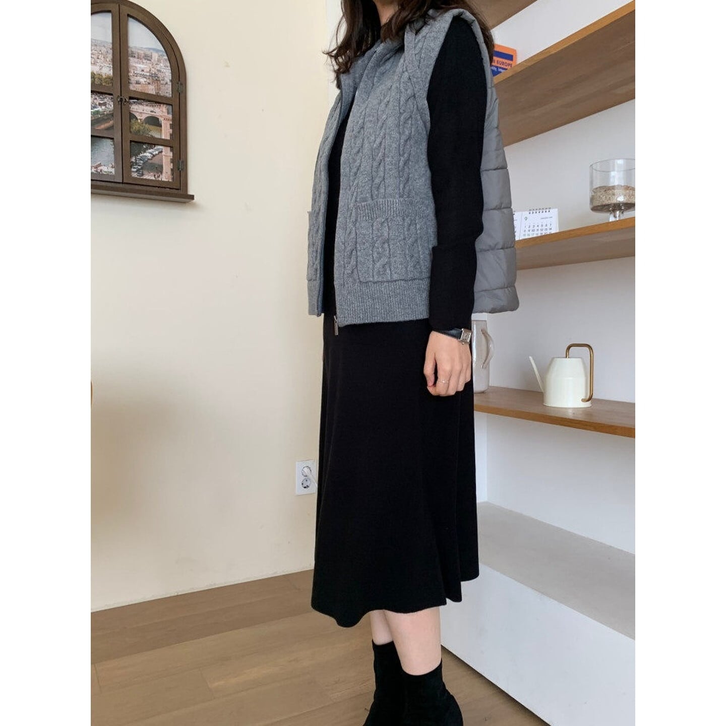 立体的なケーブル編みが、柔らかく上品な印象に。