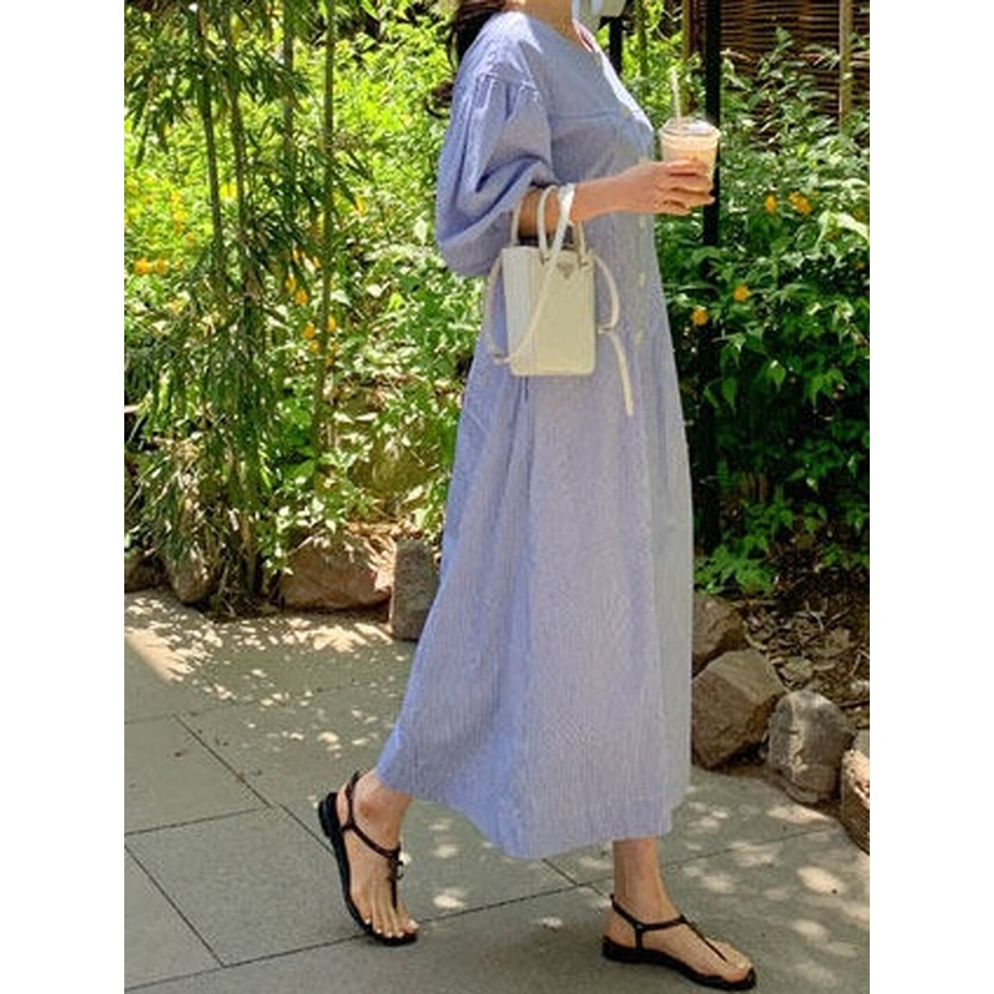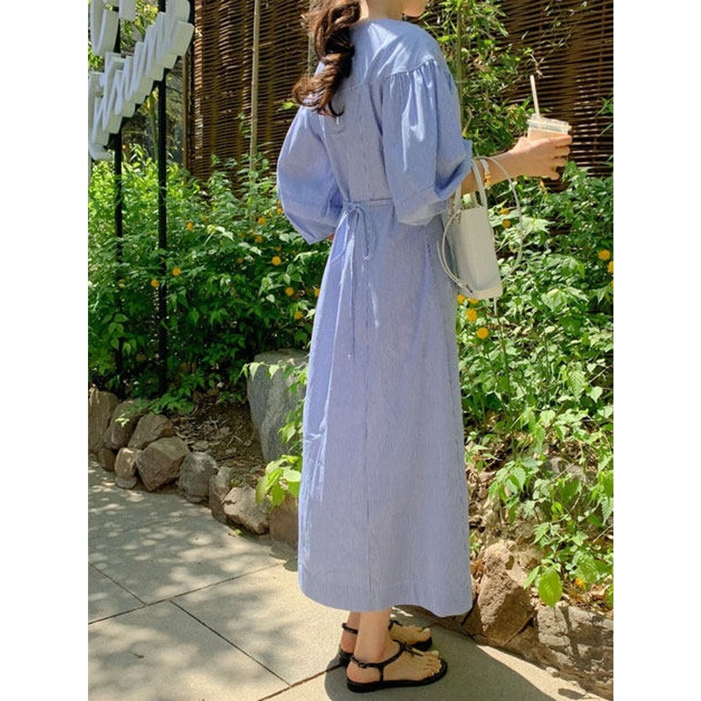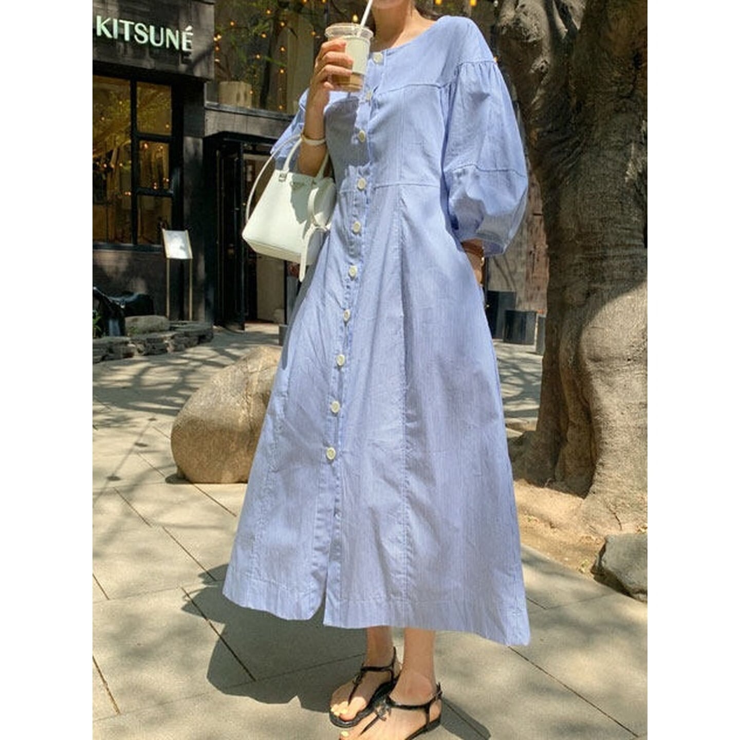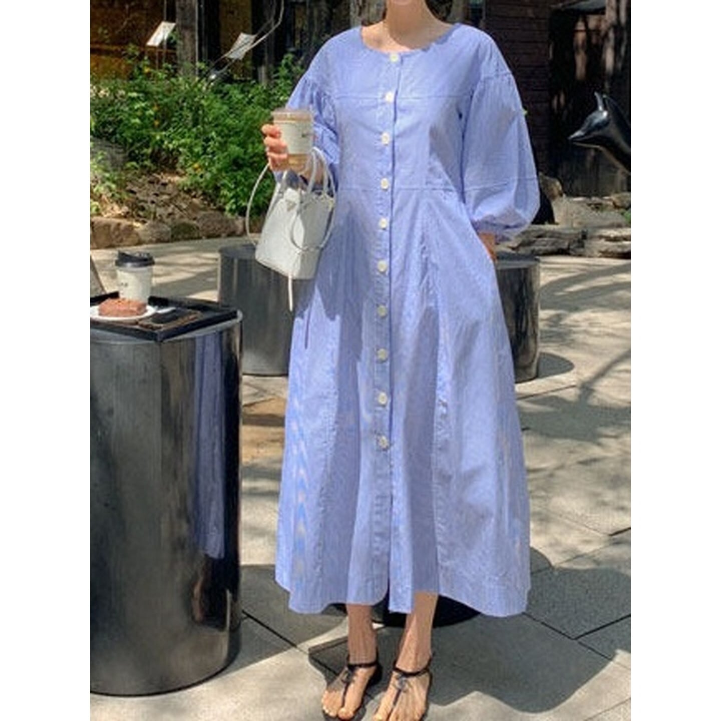 ふんわりとしたランタンスリーブが印象的なレトロデザインのロングワンピース。
