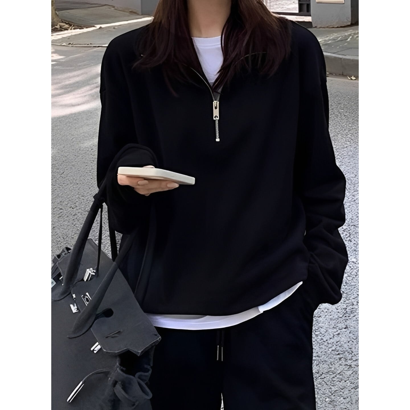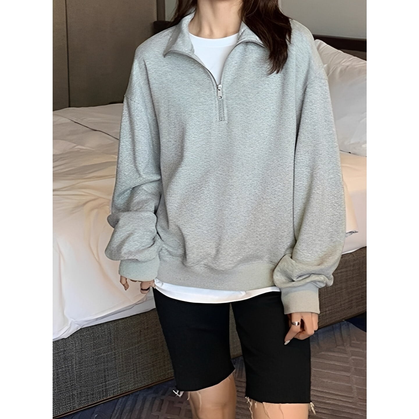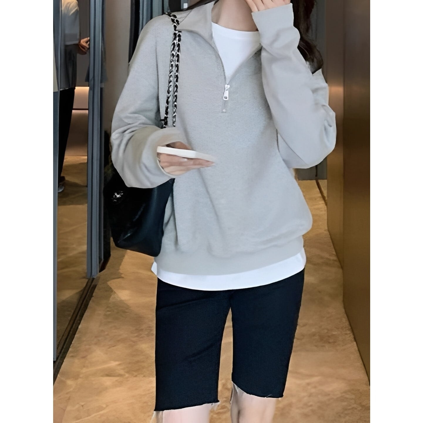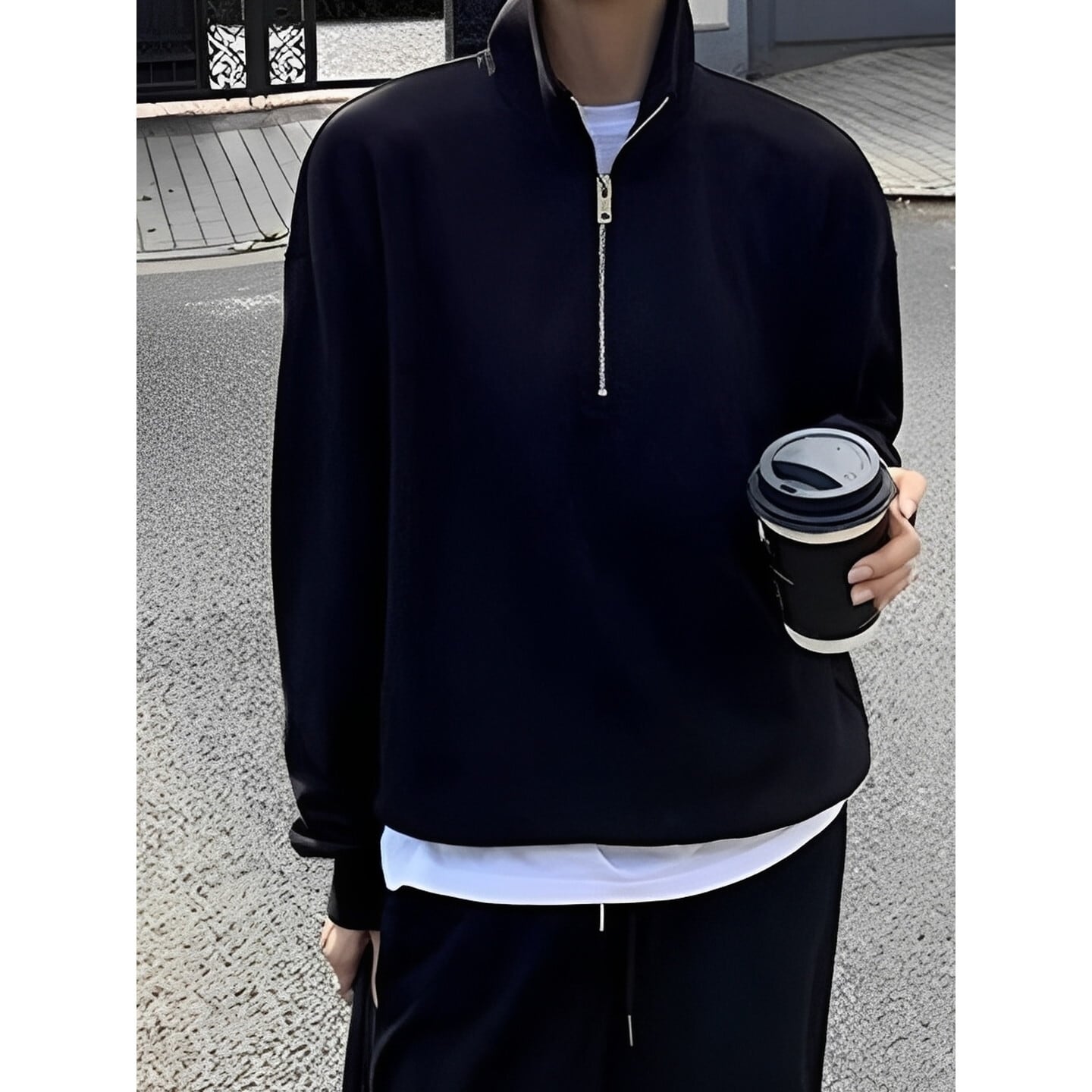 首元のハーフジップがさりげない抜け感を演出するスウェットシャツ。