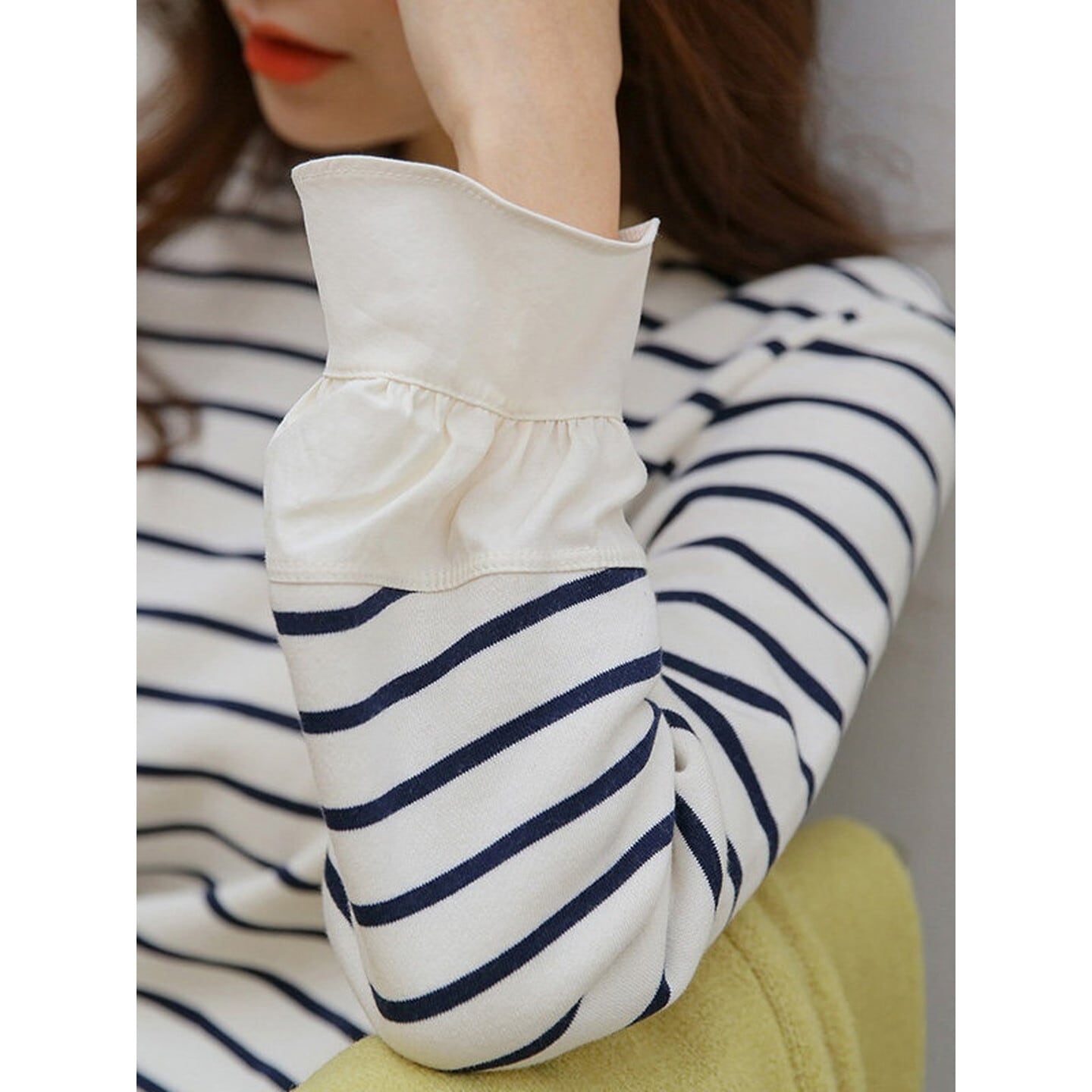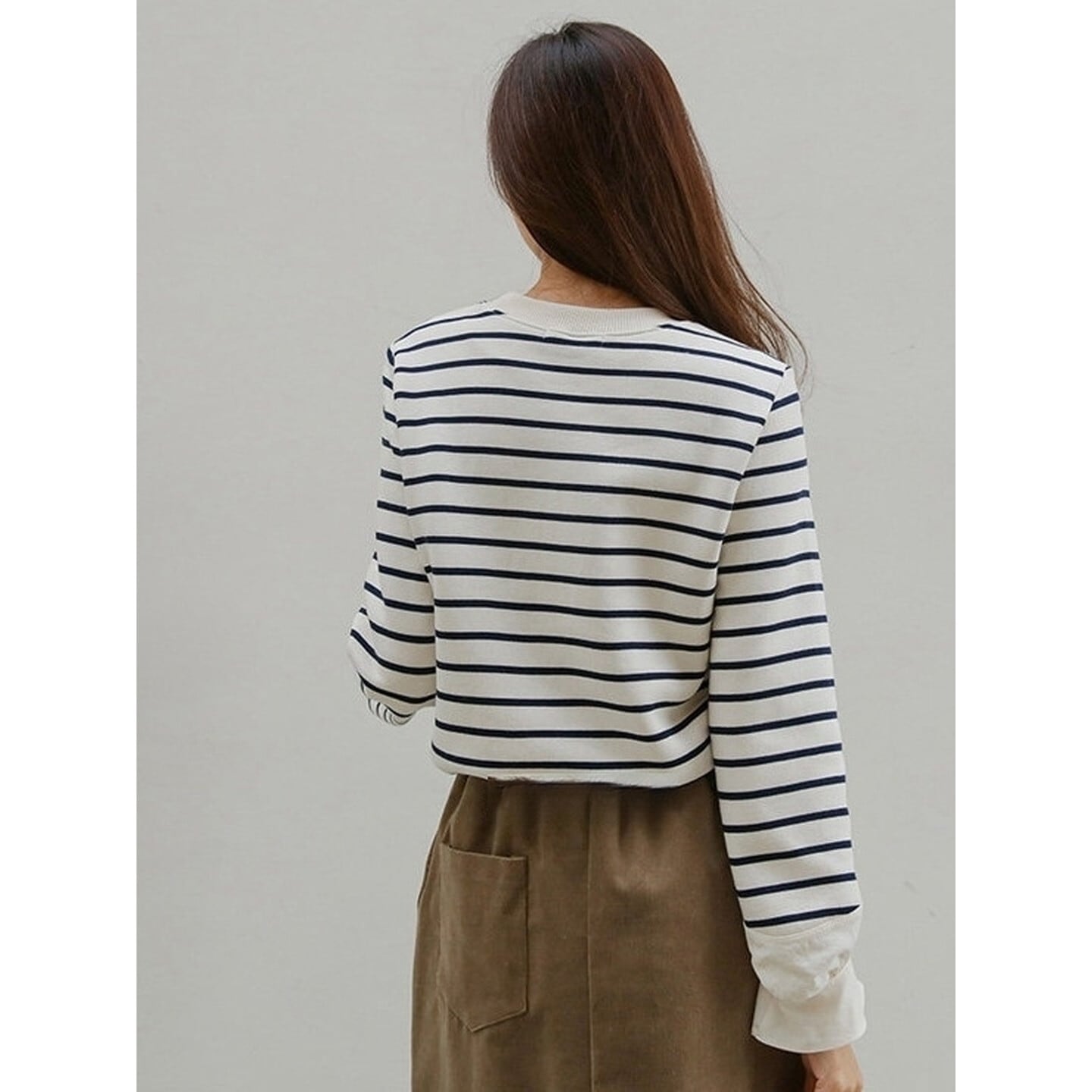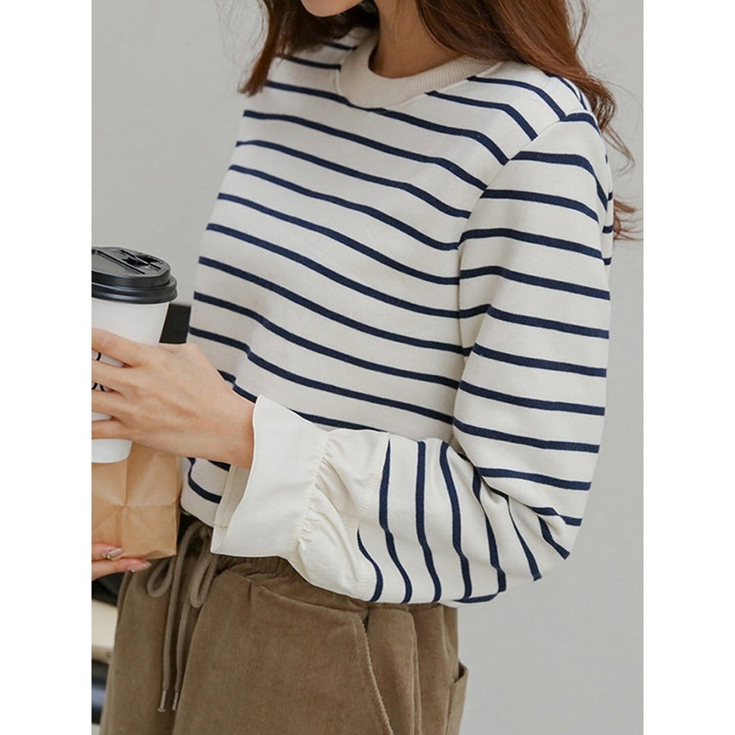 袖口のカフスデザインがさりげないアクセントになるボーダーカットソー。