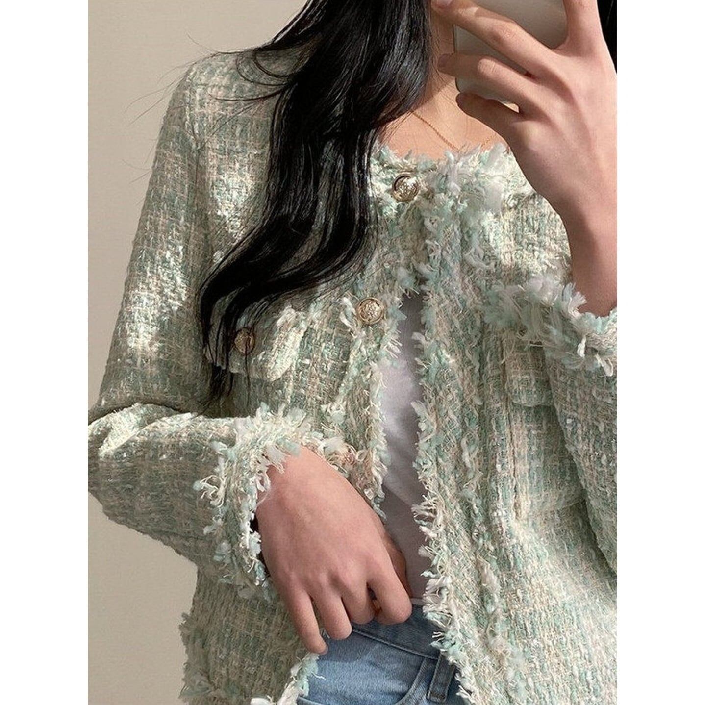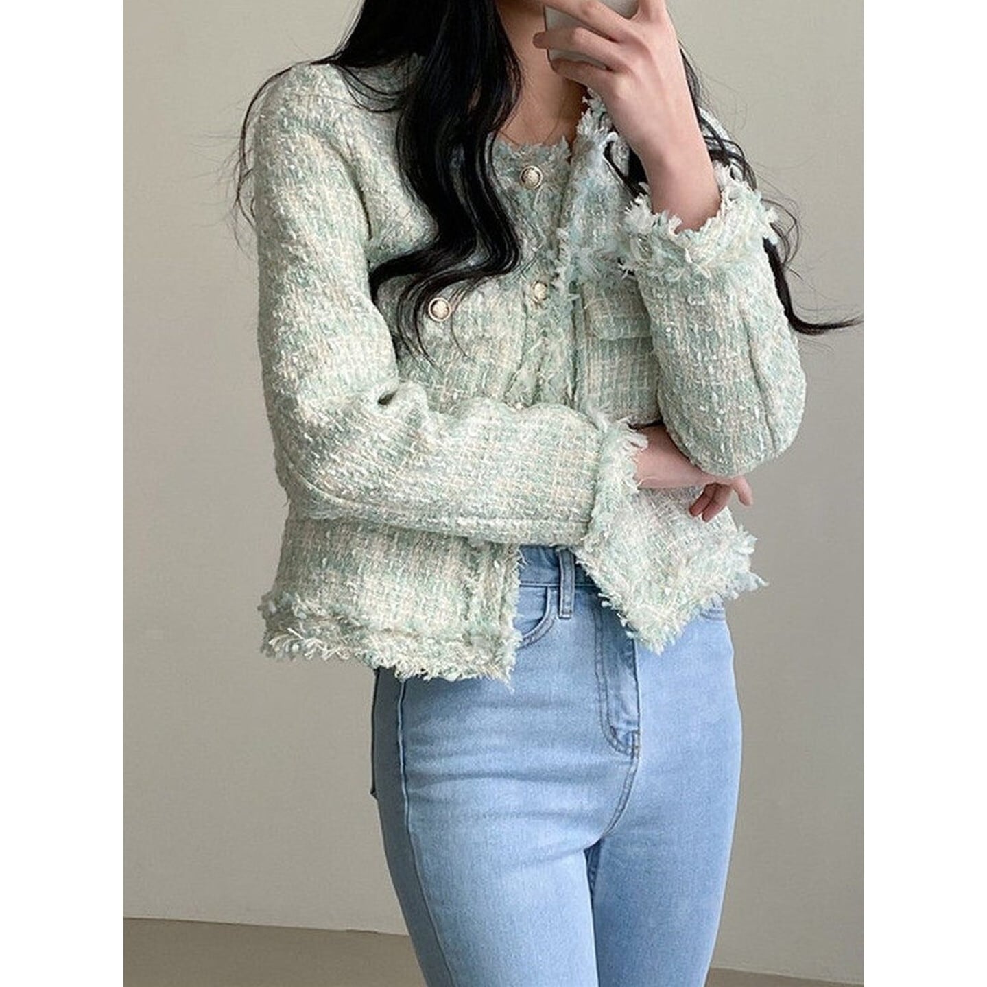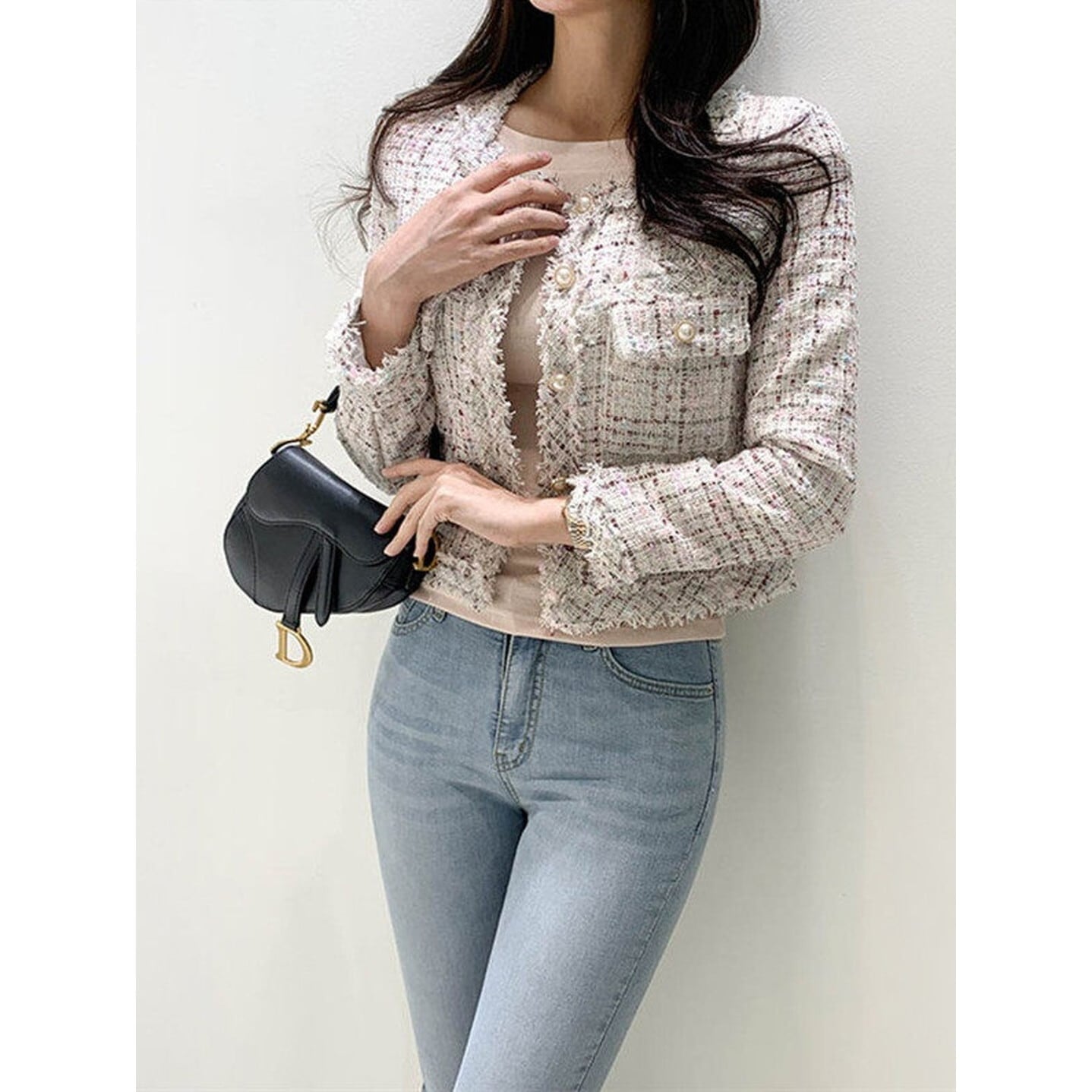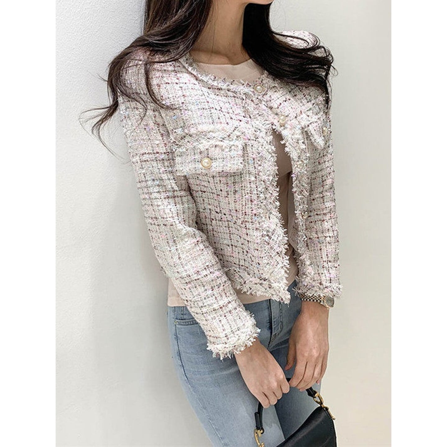 上品な風合いが魅力のショートツイードジャケット。 コンパクトな丈感がバランスよく、すっきりとした大人のシルエットに。 羽織るだけで装いに品格を添え、日常からきちんとしたシーンまで活躍します。 ■サイズ(cm) S:肩幅38/バスト92/着丈51/袖丈58 M:肩幅39/バスト96/着丈52/袖丈59 L:肩幅40/バスト100/着丈53/袖丈60 ※測定方法により1~3cm程度の誤差が生じる場合がございますので、ご了承ください。 ■カラー 画像順に▶ ピンク/ブラック/アプリコット/ライトグリーン ■RACOLORおすすめITMEはこちら https://www.racolor.shop/categories/5044599 ■SHOP TOP PAGEはこちら https://www.racolor.shop/ ■お届けについて RACOLORでは海外より直接お客様へお届けになるため、ご入金より2~3週間前後で発送致します。 到着日時の指定はできませんのでご了承下さい。 (追跡番号をご確認していただき日本国内到着後ご自身で配送業者に依頼をお願い致します。) ■注意事項 ・ご購入後のキャンセルは受付しておりません。 ・商品在庫切れにより注文キャンセルとさせていただく場合もございますので、予めご了承くださいませ。 ・仕入れ工場を変えることがあるため、記載サイズと若干異なる場合がございます。 ・商品の色味は、お手持ちのデバイスの画面によって実物と若干異なる場合がございます。 ・イメージ違いやサイズ交換等、お客さまご都合による交換、返品は対応出来かねます。 ─────────────────────── ※ご購入前に【SHOP ABOUT】を必ずお読みください。 https://www.racolor.shop/about