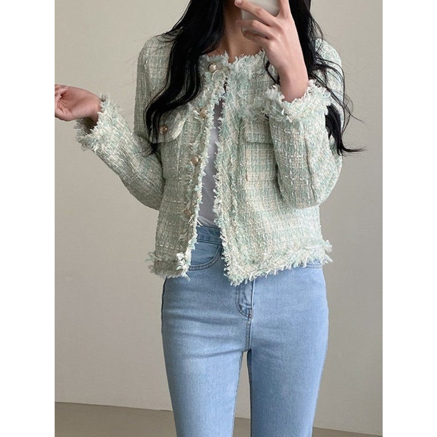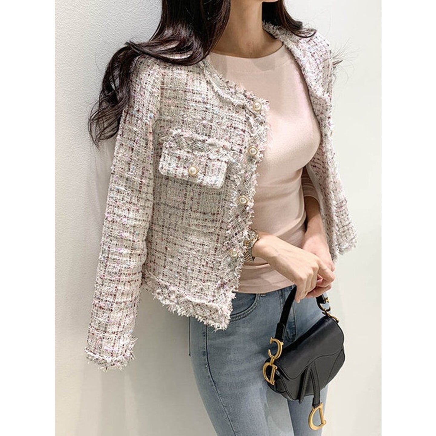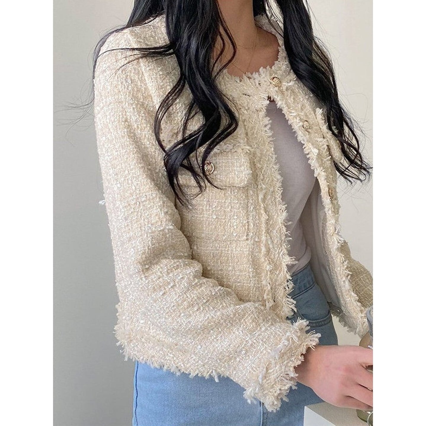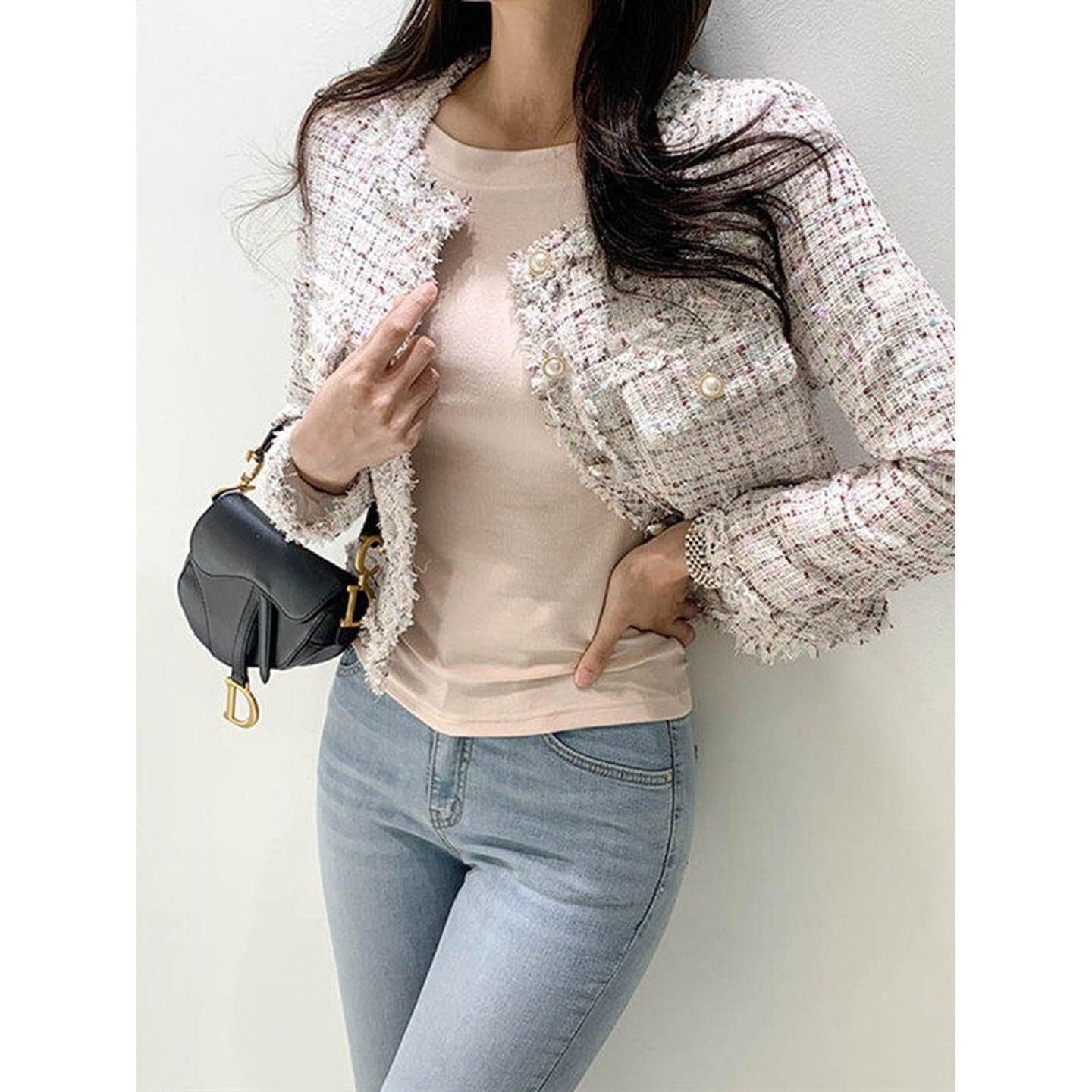 上品な風合いが魅力のショートツイードジャケット。 コンパクトな丈感がバランスよく、すっきりとした大人のシルエットに。 羽織るだけで装いに品格を添え、日常からきちんとしたシーンまで活躍します。 ■サイズ(cm) S:肩幅38/バスト92/着丈51/袖丈58 M:肩幅39/バスト96/着丈52/袖丈59 L:肩幅40/バスト100/着丈53/袖丈60 ※測定方法により1~3cm程度の誤差が生じる場合がございますので、ご了承ください。 ■カラー 画像順に▶ ピンク/ブラック/アプリコット/ライトグリーン ■RACOLORおすすめITMEはこちら https://www.racolor.shop/categories/5044599 ■SHOP TOP PAGEはこちら https://www.racolor.shop/ ■お届けについて RACOLORでは海外より直接お客様へお届けになるため、ご入金より2~3週間前後で発送致します。 到着日時の指定はできませんのでご了承下さい。 (追跡番号をご確認していただき日本国内到着後ご自身で配送業者に依頼をお願い致します。) ■注意事項 ・ご購入後のキャンセルは受付しておりません。 ・商品在庫切れにより注文キャンセルとさせていただく場合もございますので、予めご了承くださいませ。 ・仕入れ工場を変えることがあるため、記載サイズと若干異なる場合がございます。 ・商品の色味は、お手持ちのデバイスの画面によって実物と若干異なる場合がございます。 ・イメージ違いやサイズ交換等、お客さまご都合による交換、返品は対応出来かねます。 ─────────────────────── ※ご購入前に【SHOP ABOUT】を必ずお読みください。 https://www.racolor.shop/about
