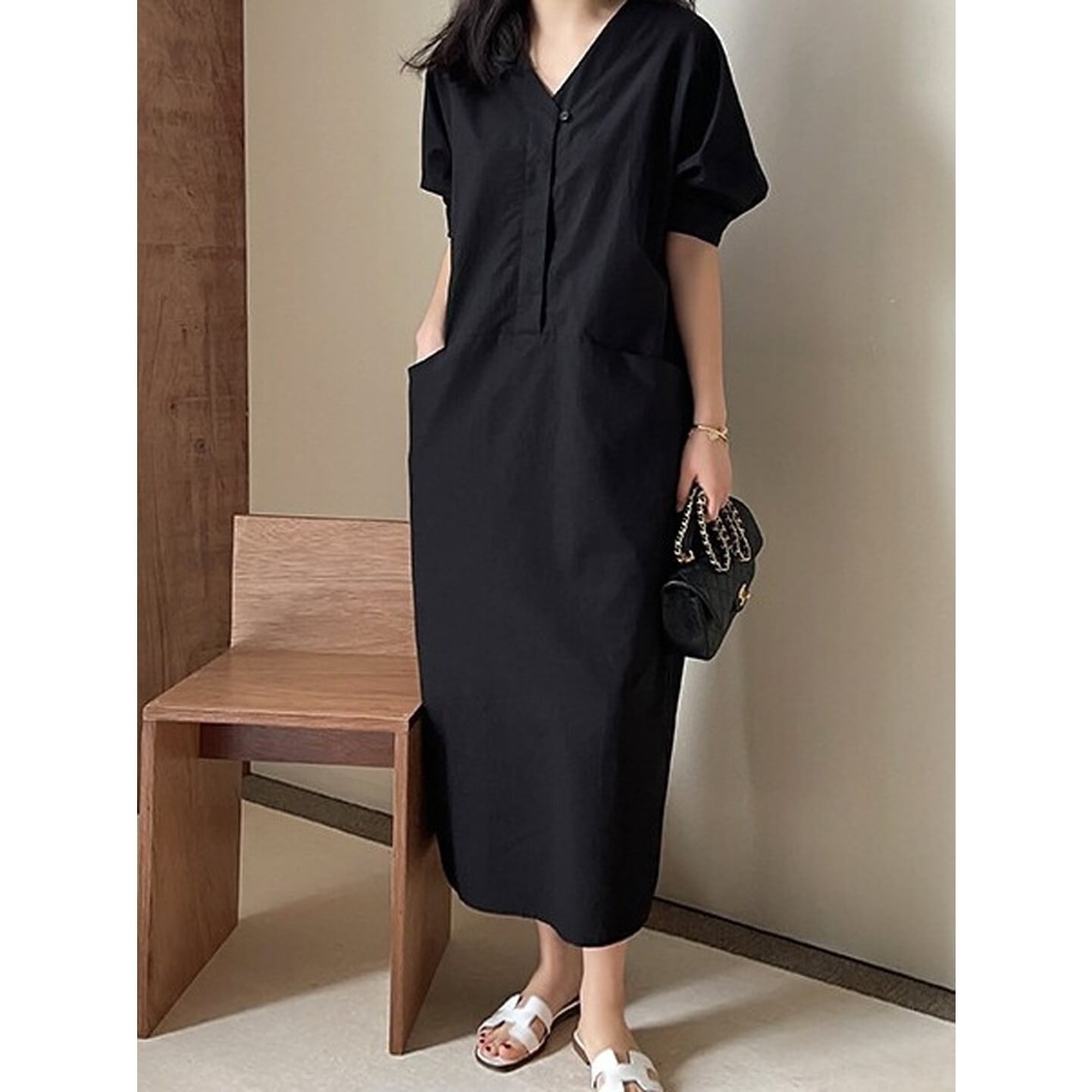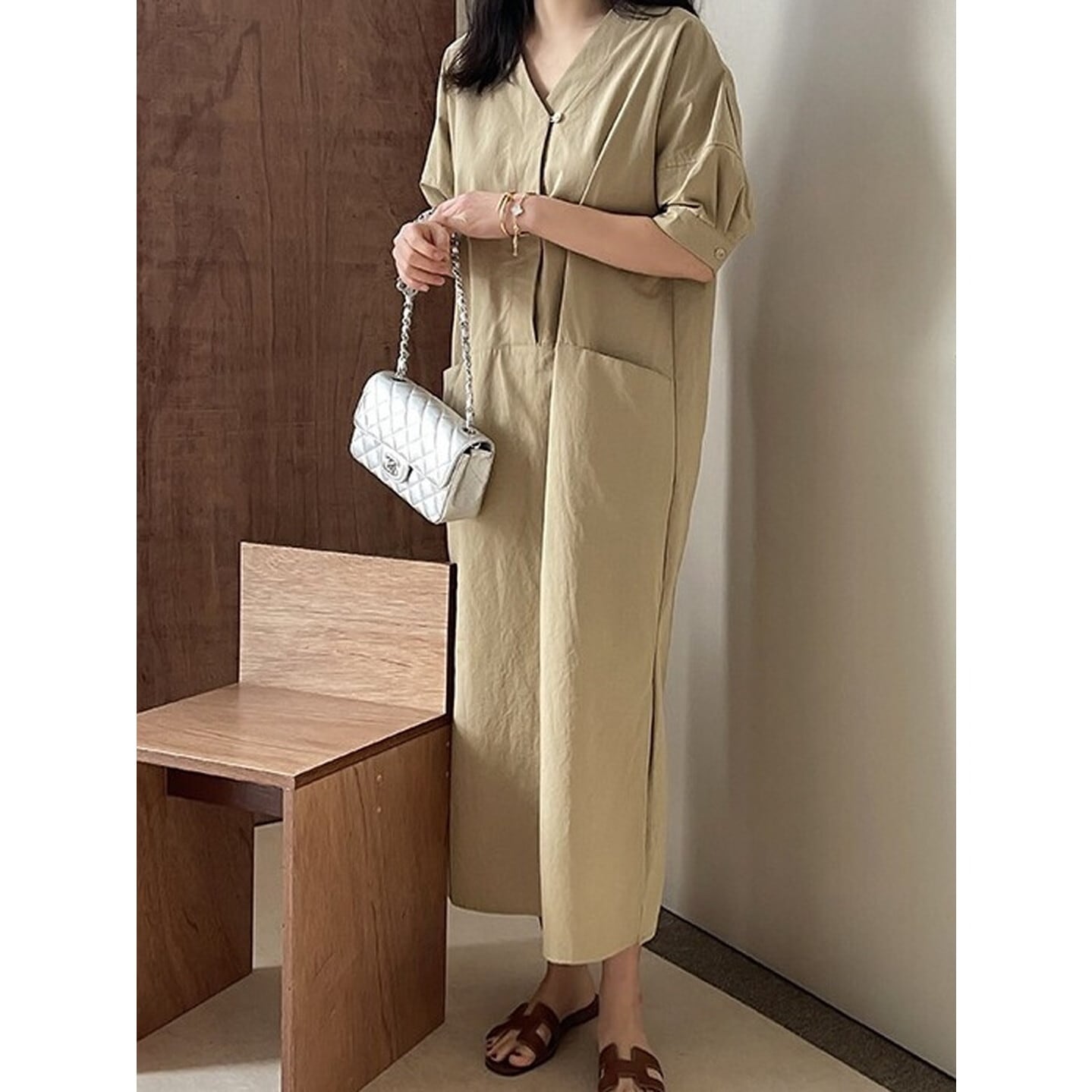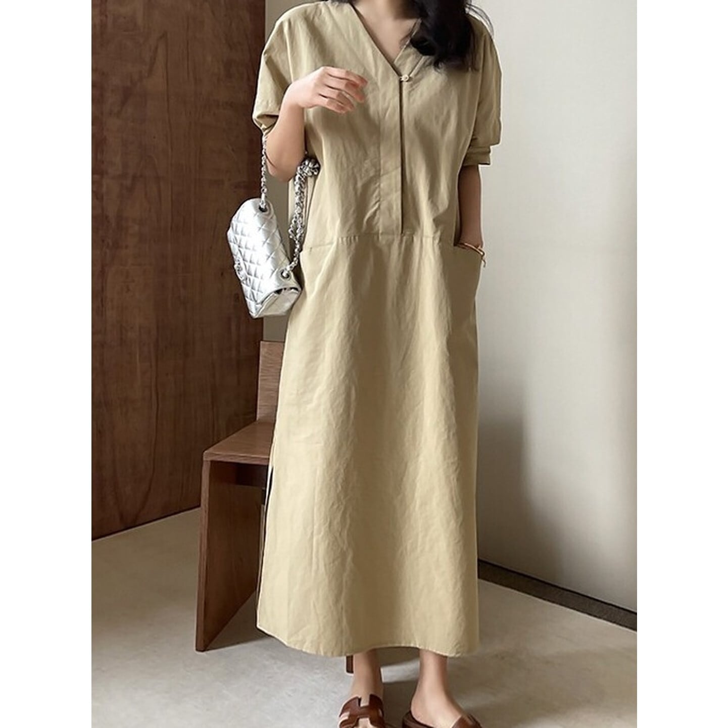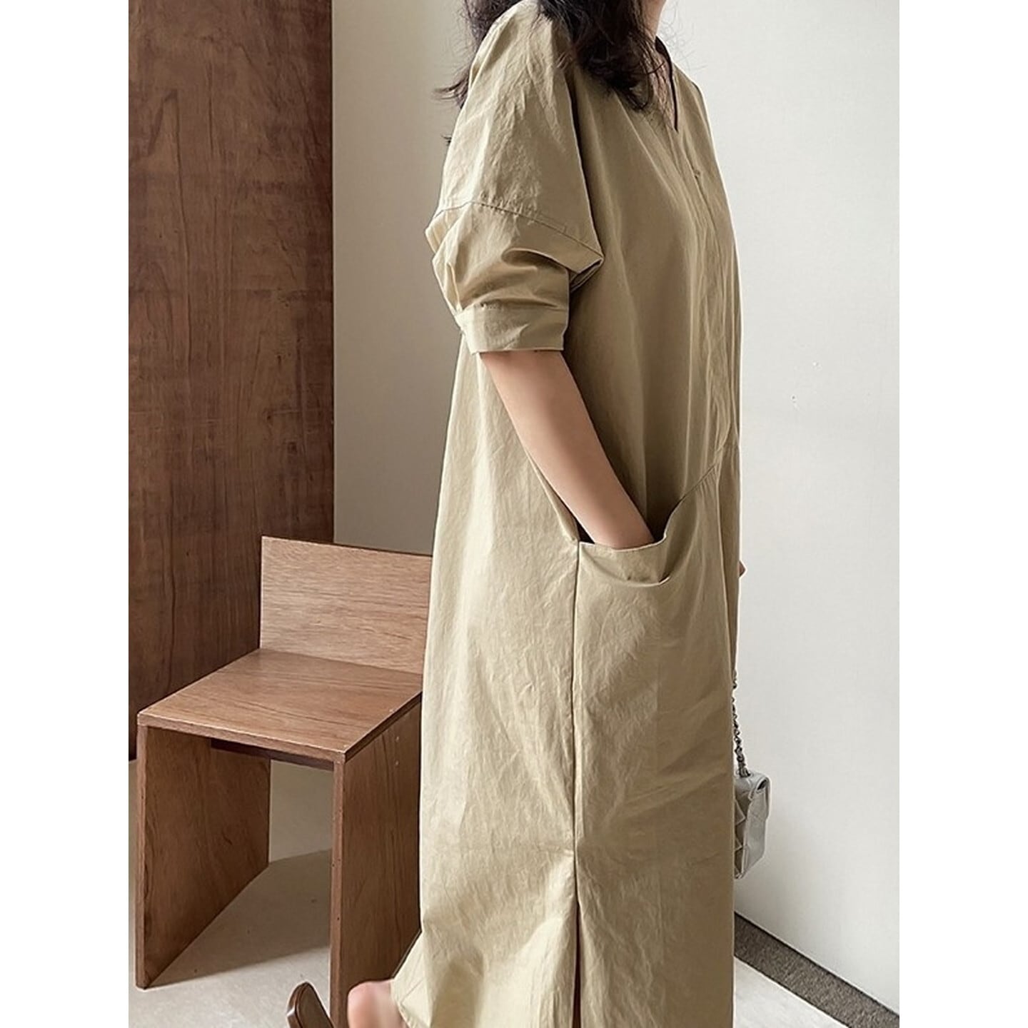 Vネック ダブルポケットワンピース 2color RA3205