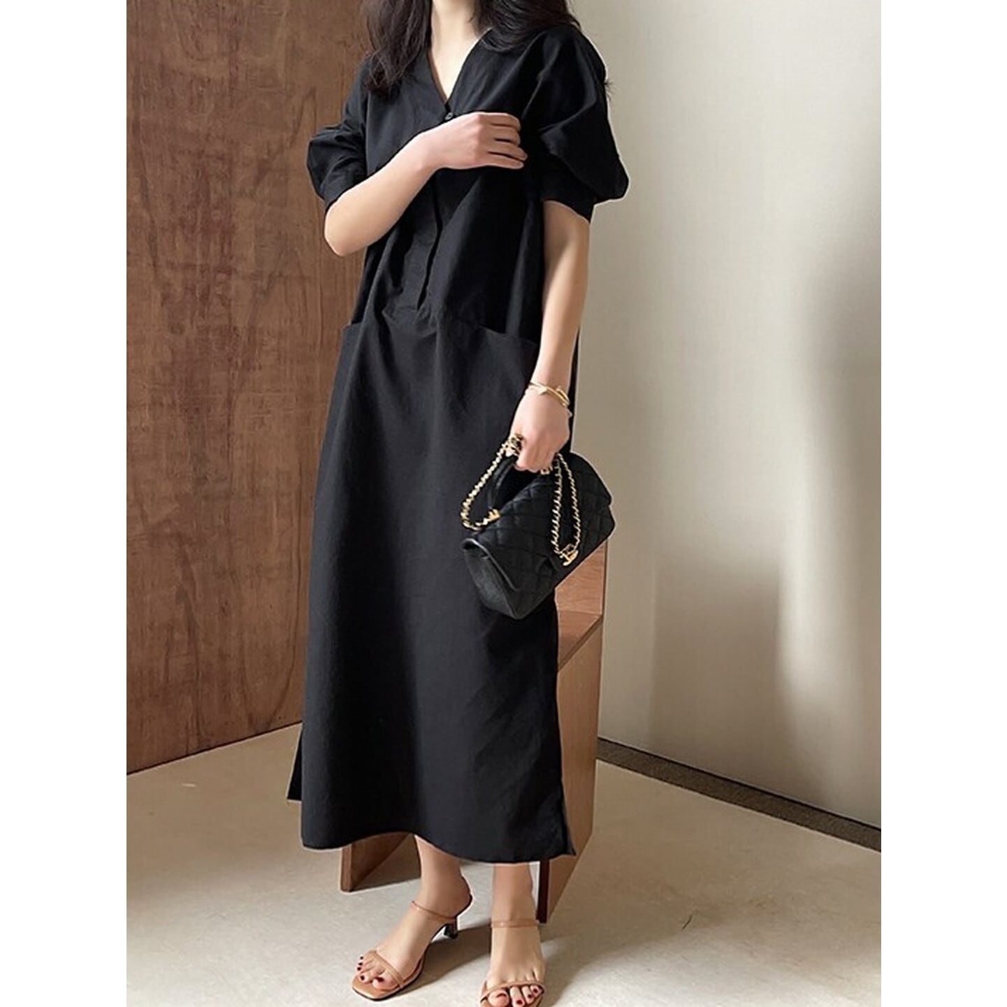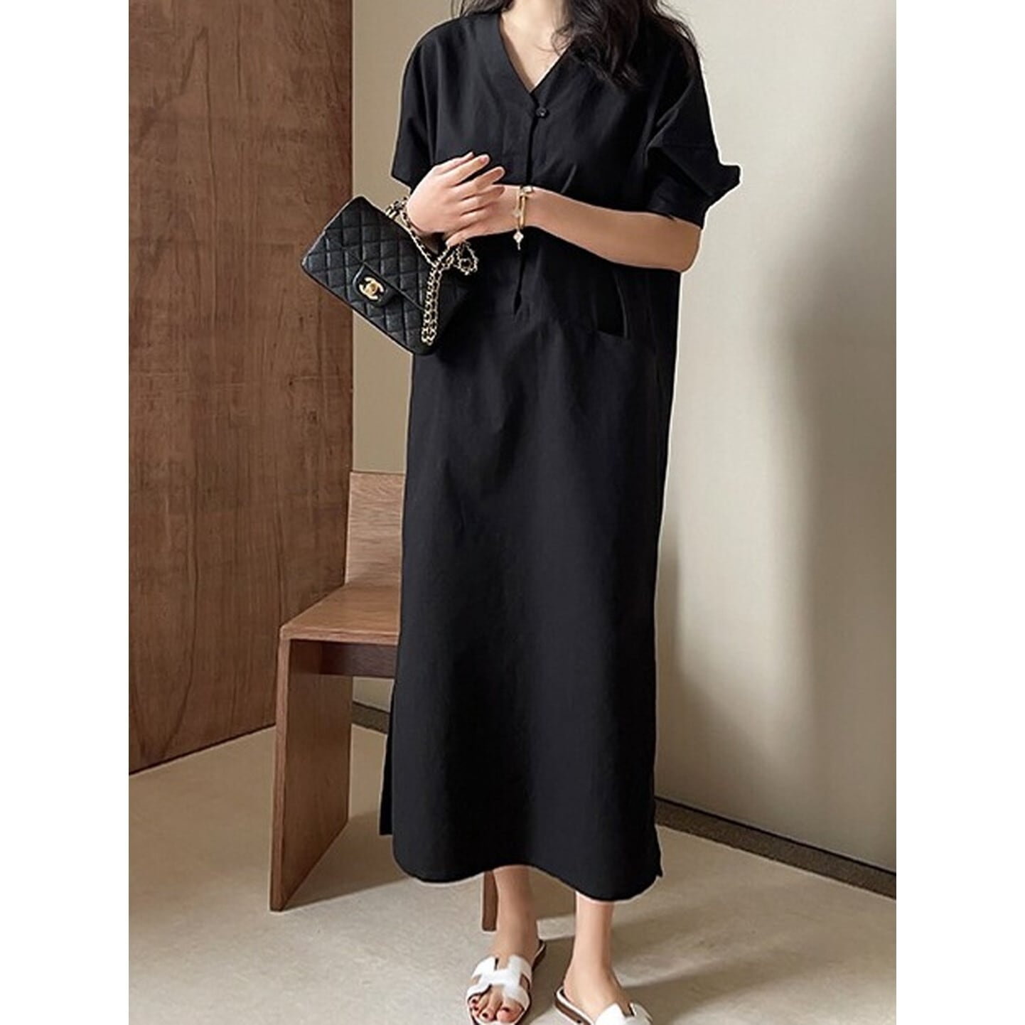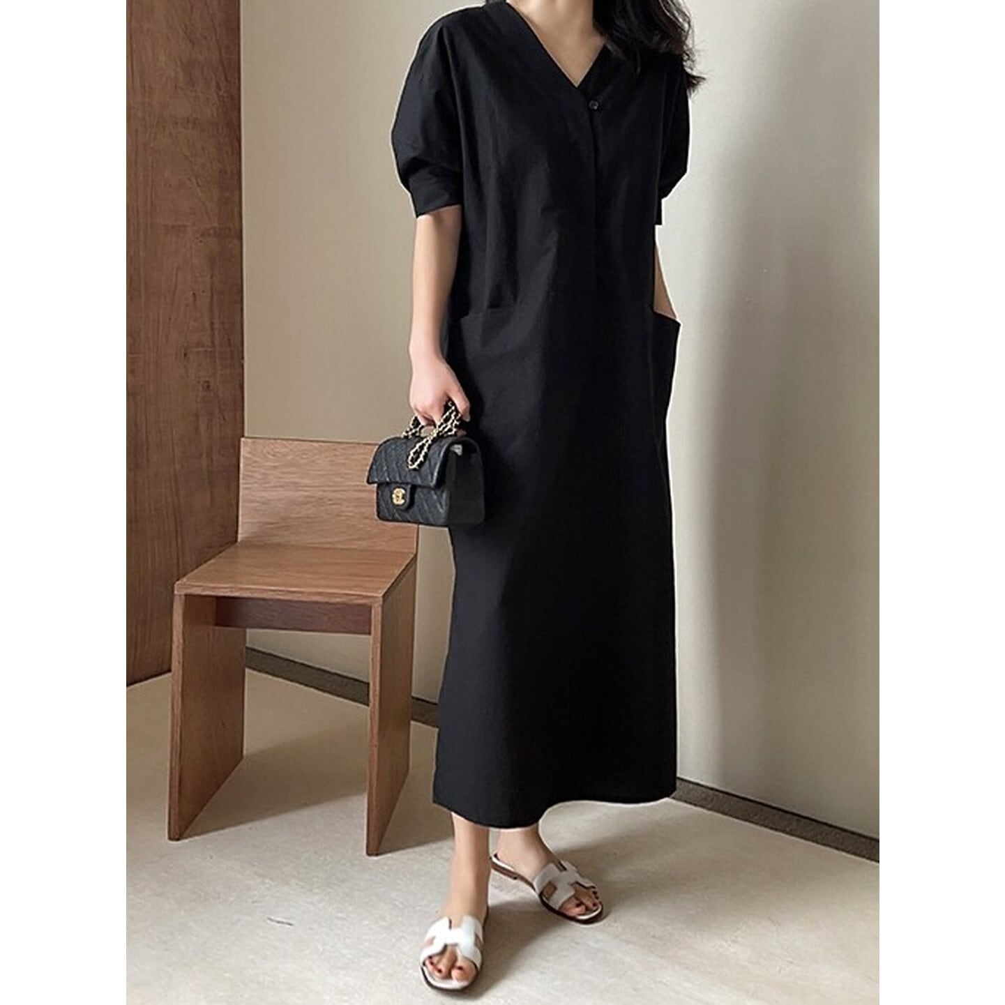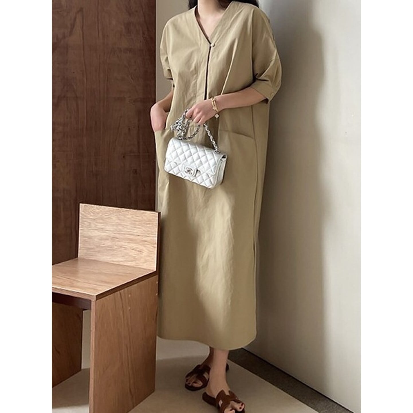 Vネック ダブルポケットワンピース 2color RA3205