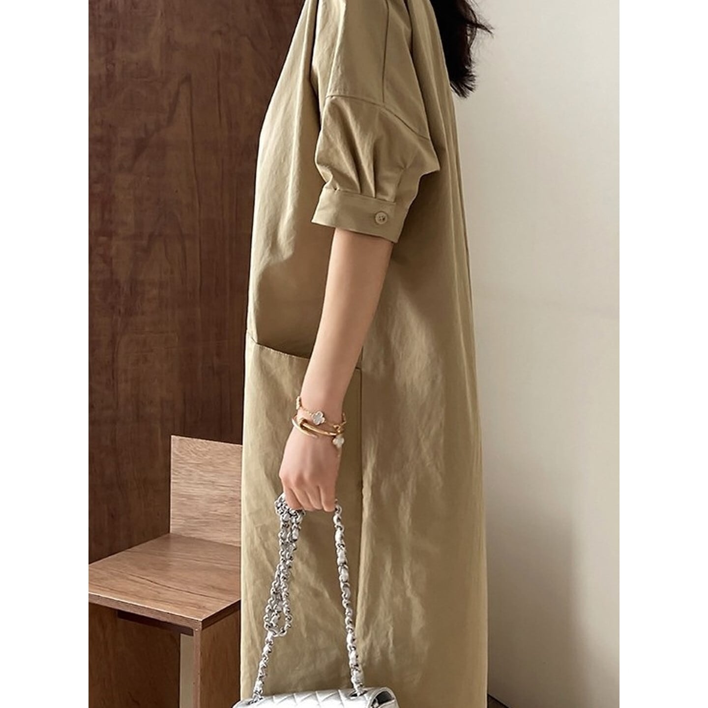 ゆったりシルエットとダブルポケットで、体型をさりげなくカバー。
