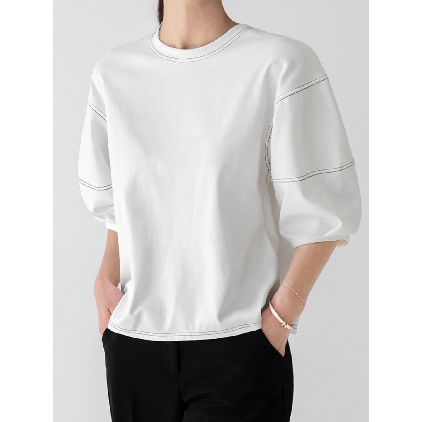 さりげないステッチがアクセントとなり、シンプルに表情を添える一枚。