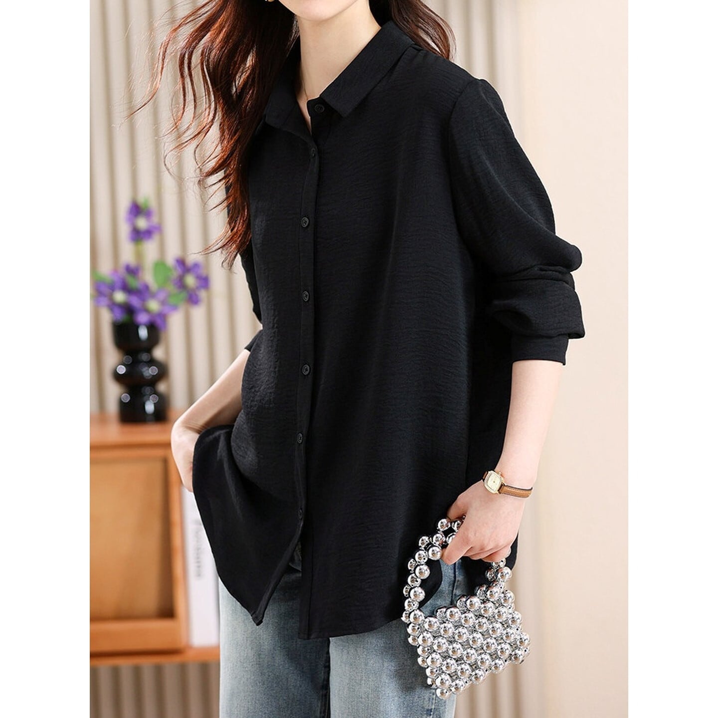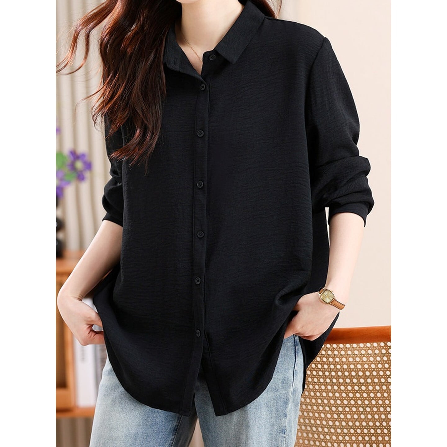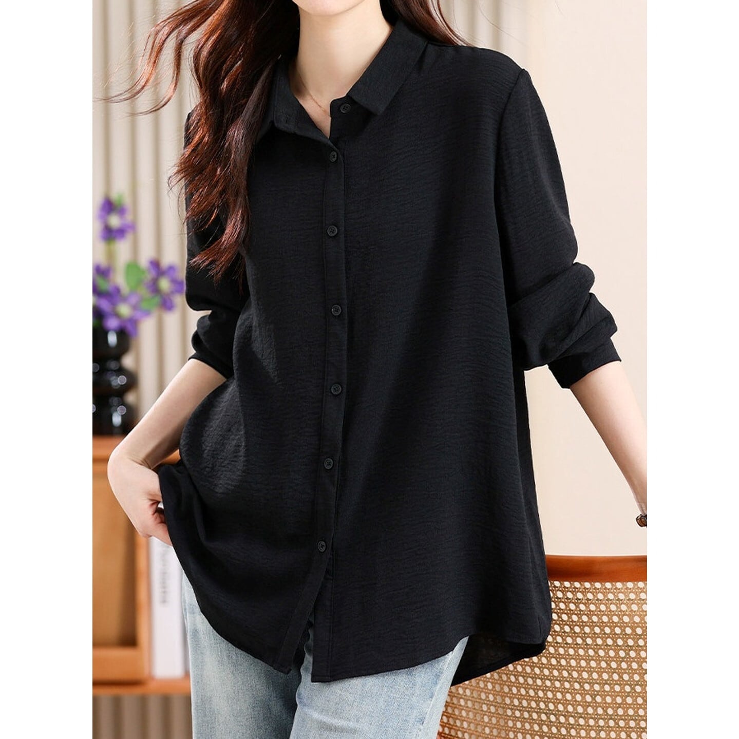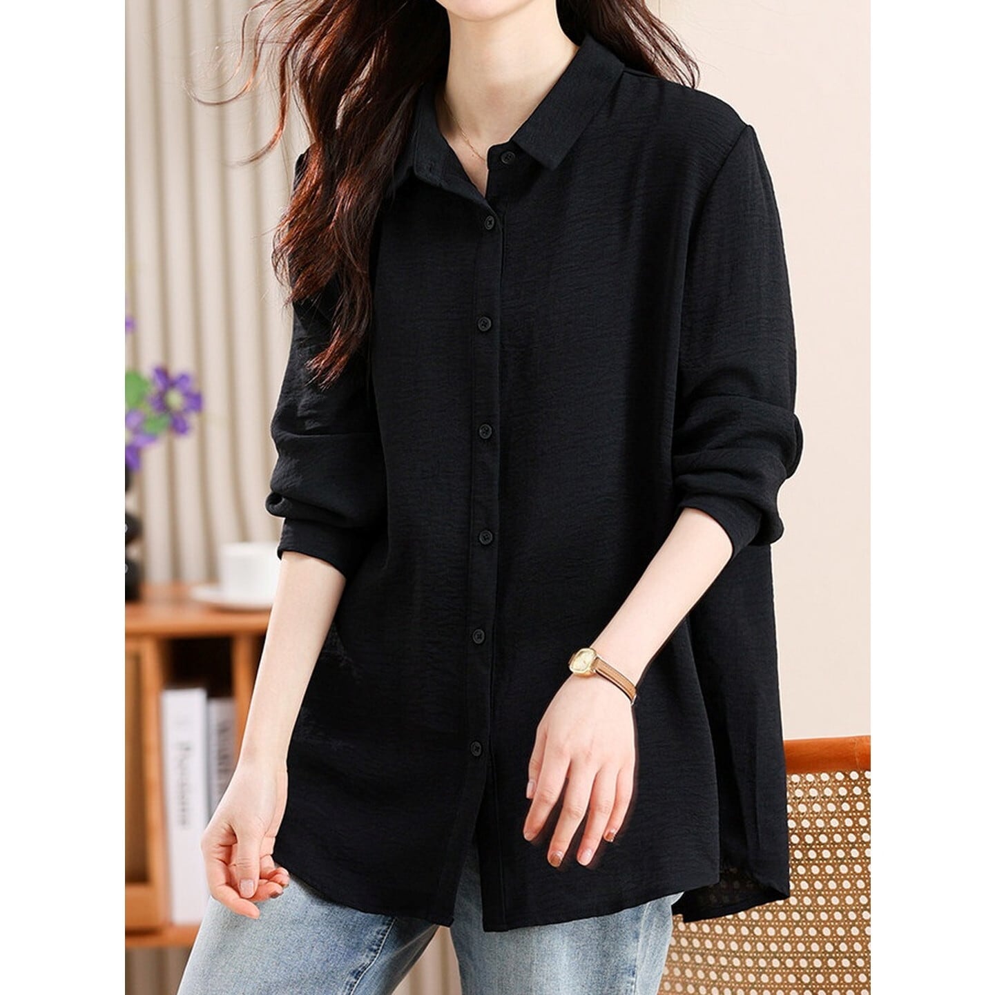 程よいゆとりとミドル丈が魅力の、ゆったりシルエットシャツ。