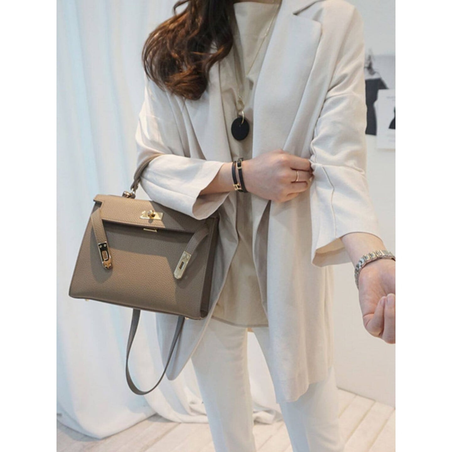 細身パンツと合わせて、日常を少し上品に整えるスタイルに。