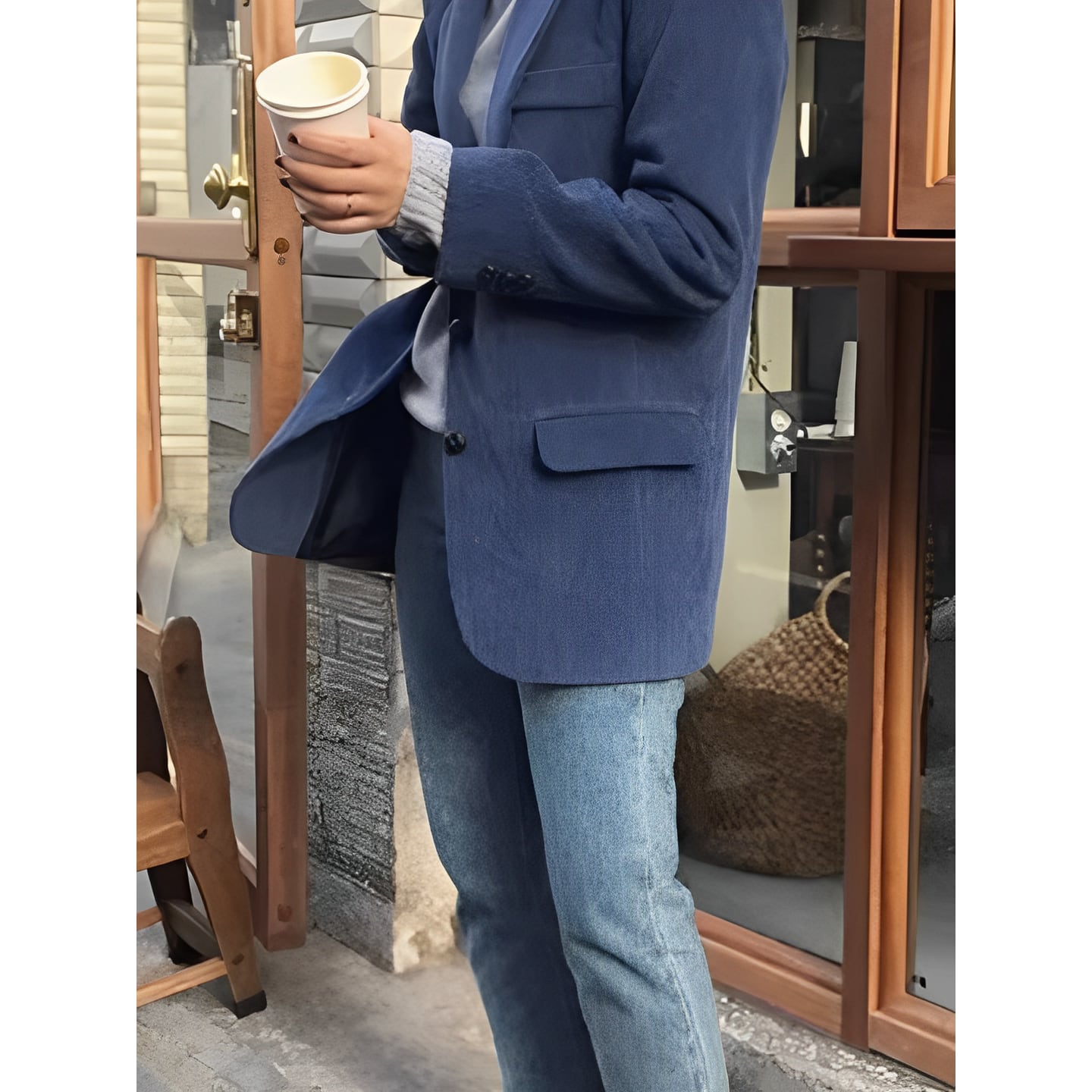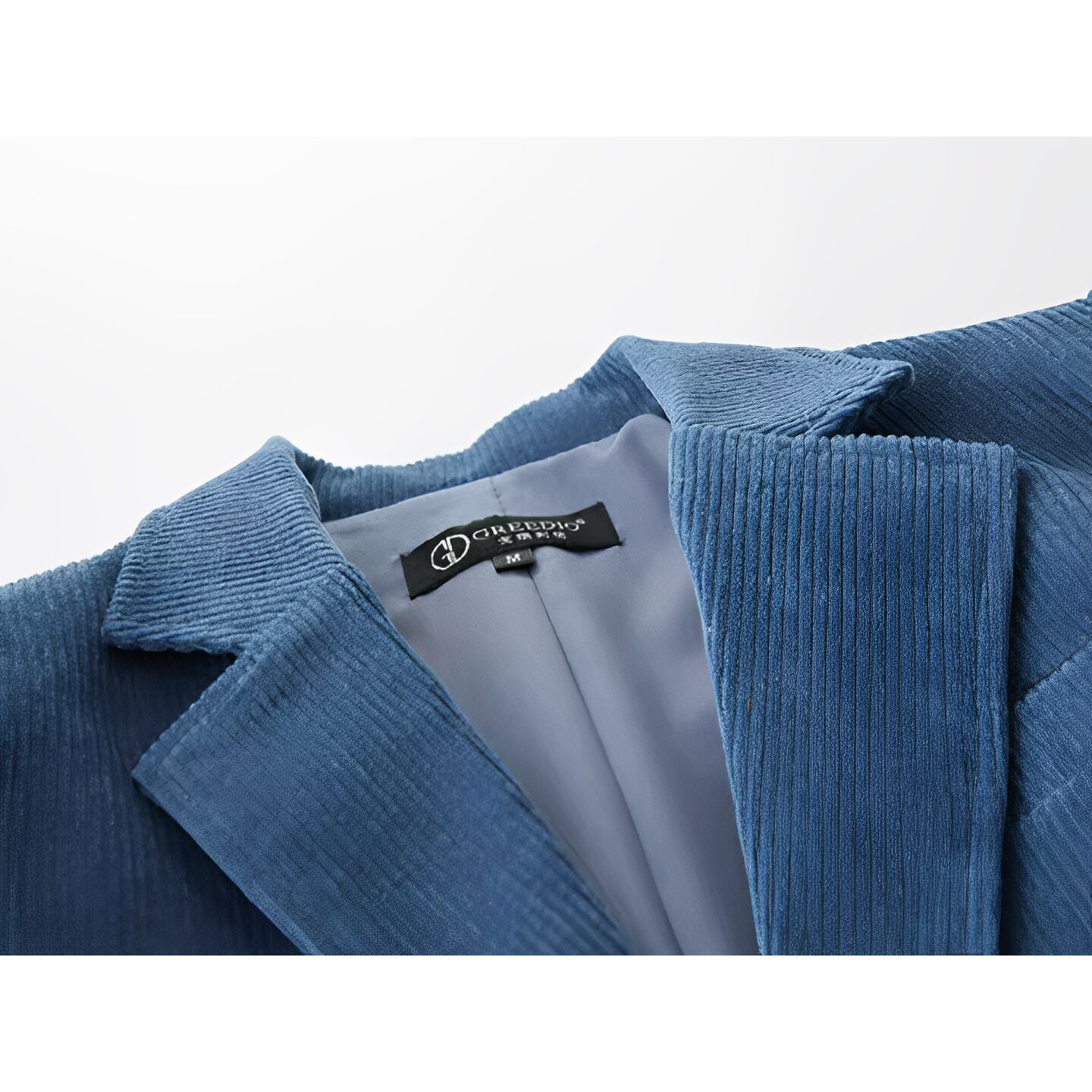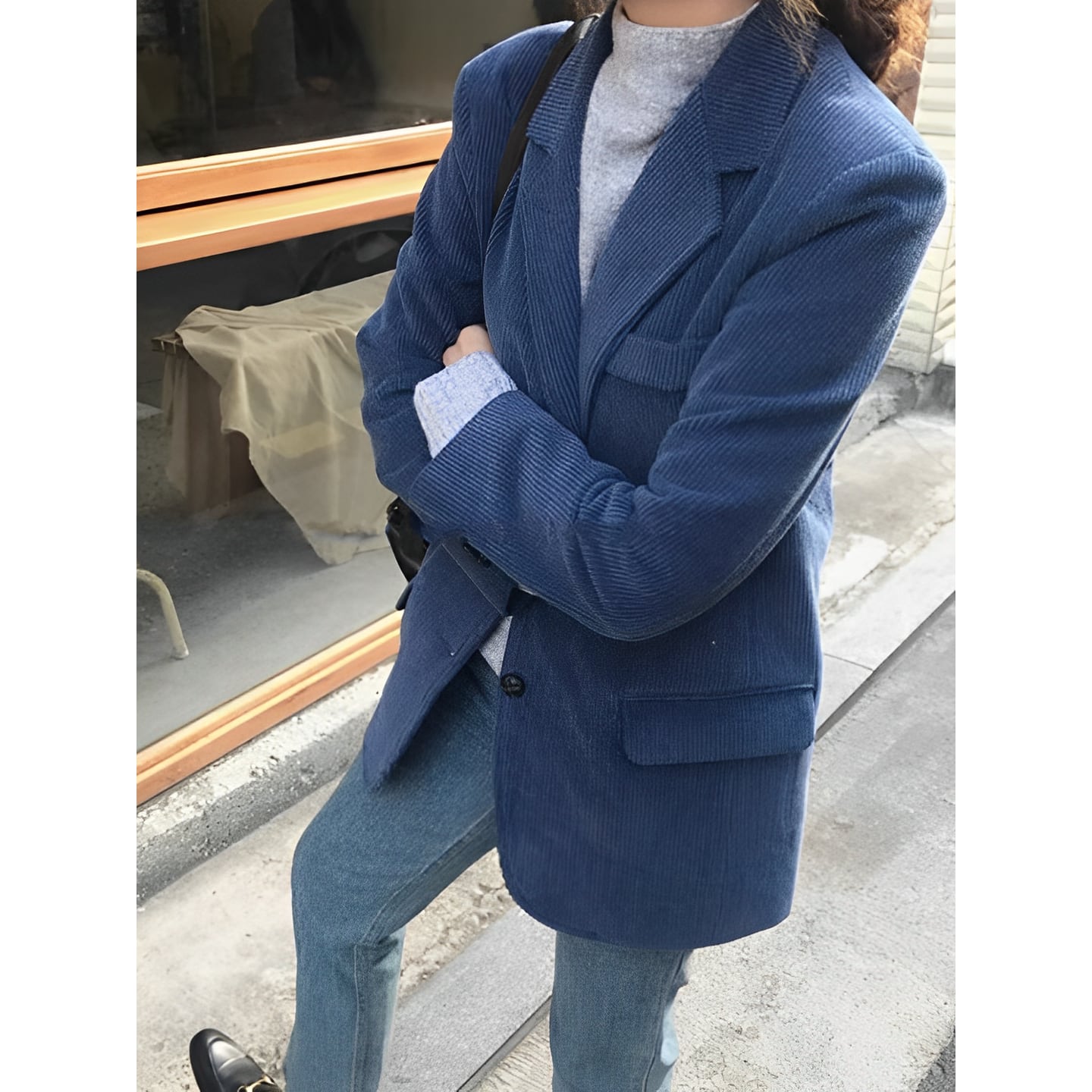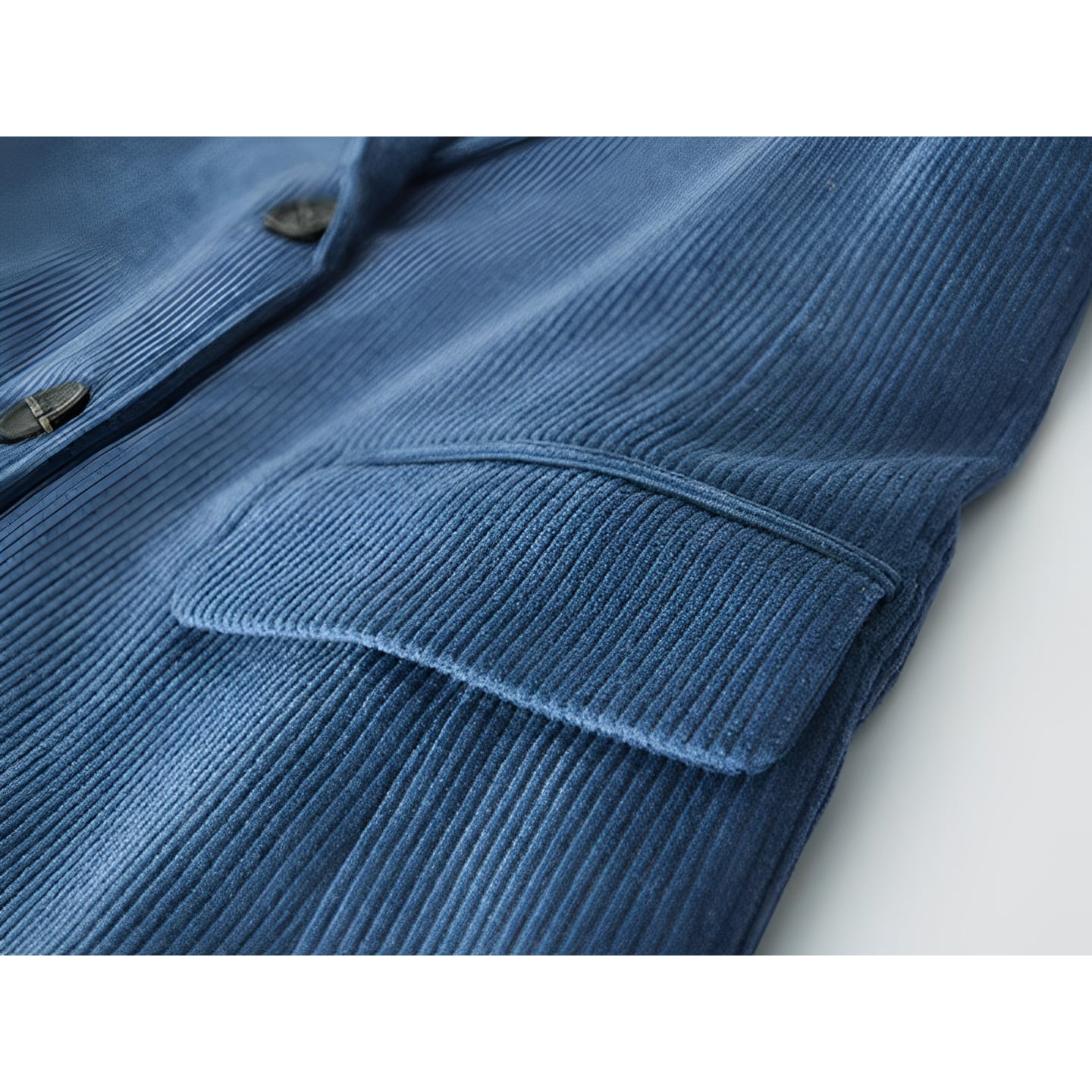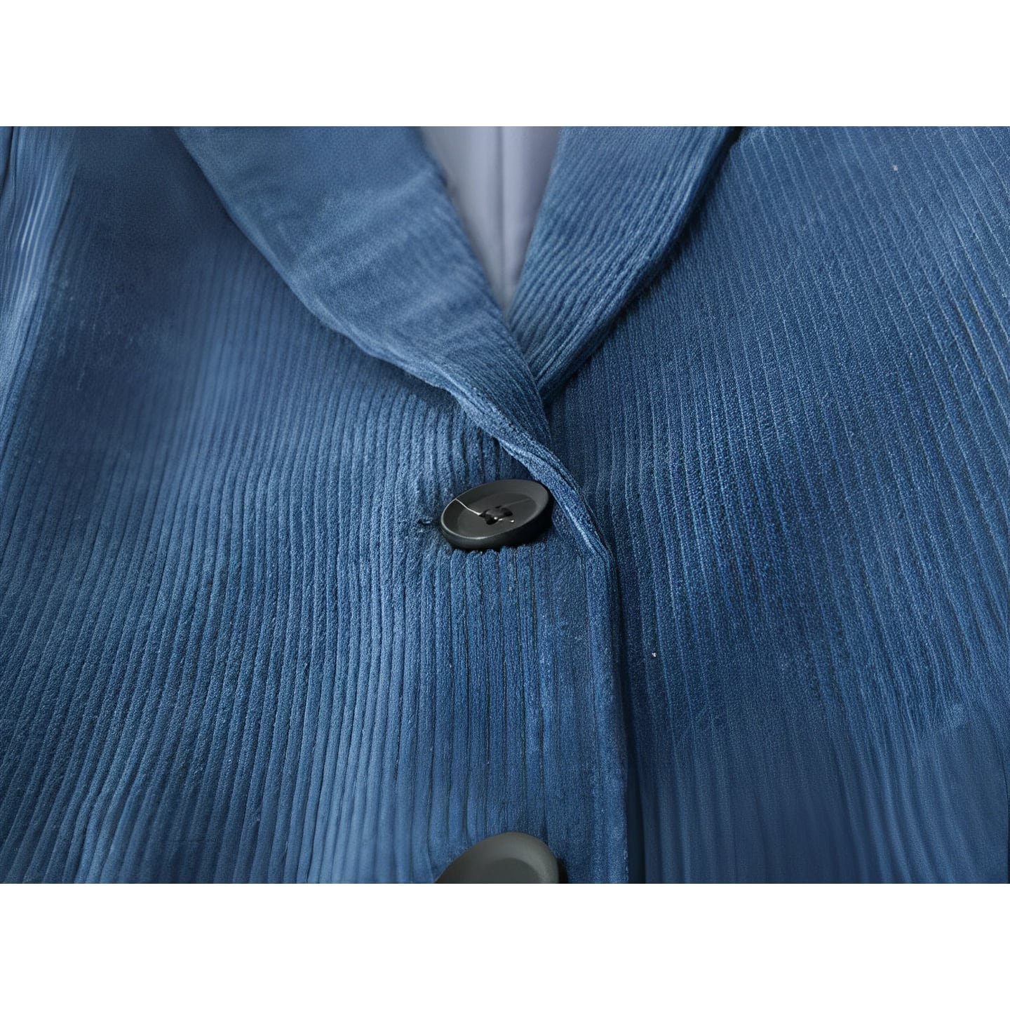 ヴィンテージ感あふれるブルーカラーとコーデュロイ素材が特徴的で、秋冬シーズンにぴったりな一着です。