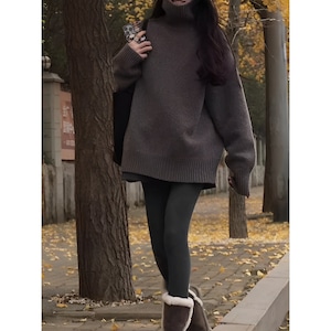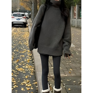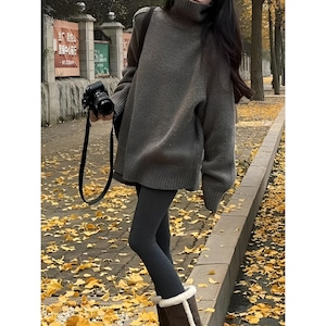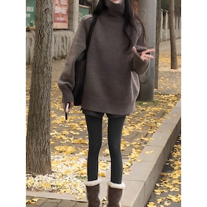 リラックス感と上品さを兼ね備えたタートルネックオーバーニットトップス。